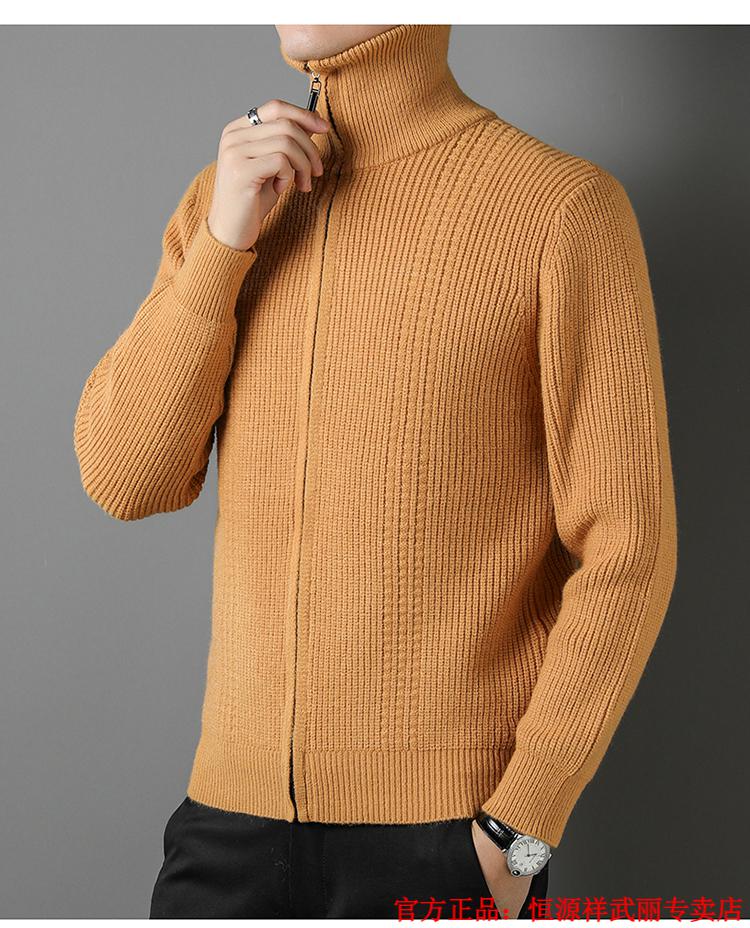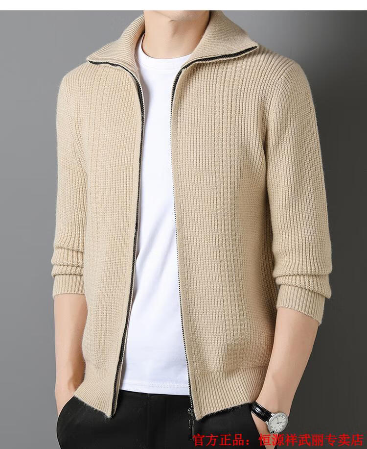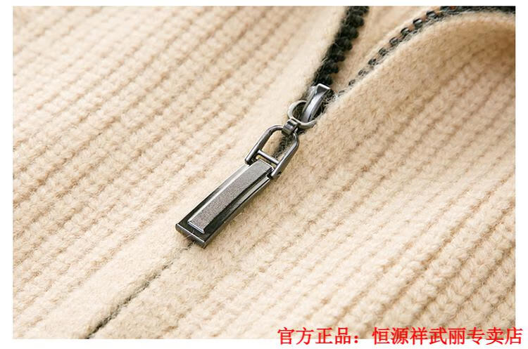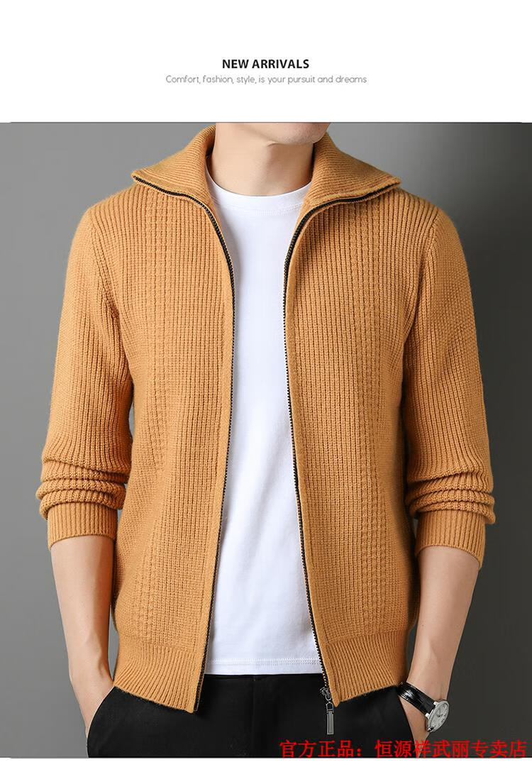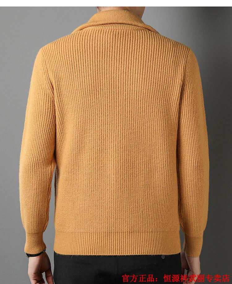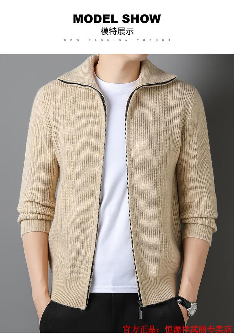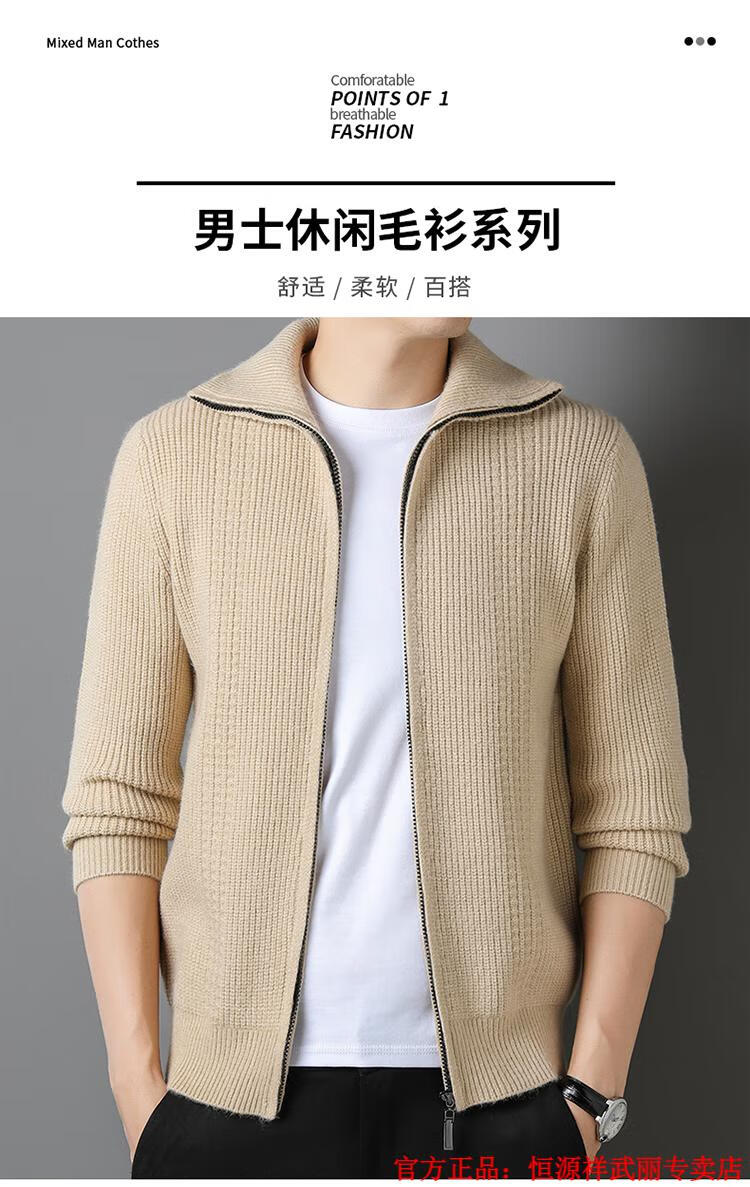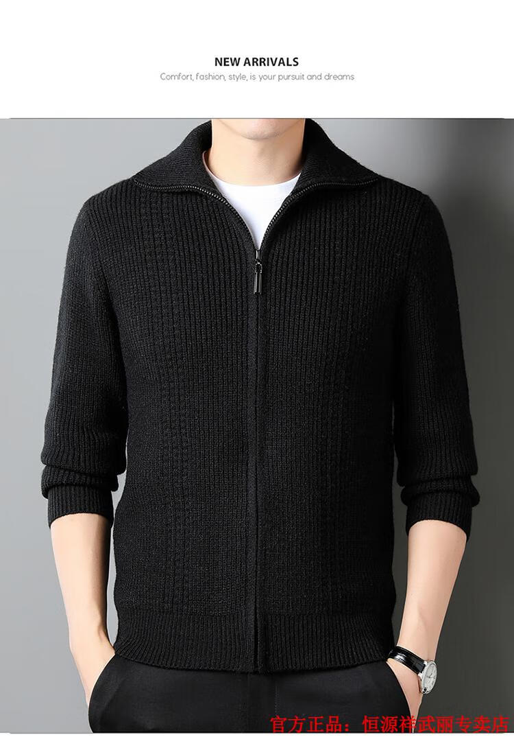 Hengyuanxiang autumn and winter thickened wool sweater men's knitted cardigan zipper lapel sweater middle-aged sheep tamarin sweater men's trendy jacket gray 175/XL/115/recommended 135-155Jin Jin equals 0.5 kg