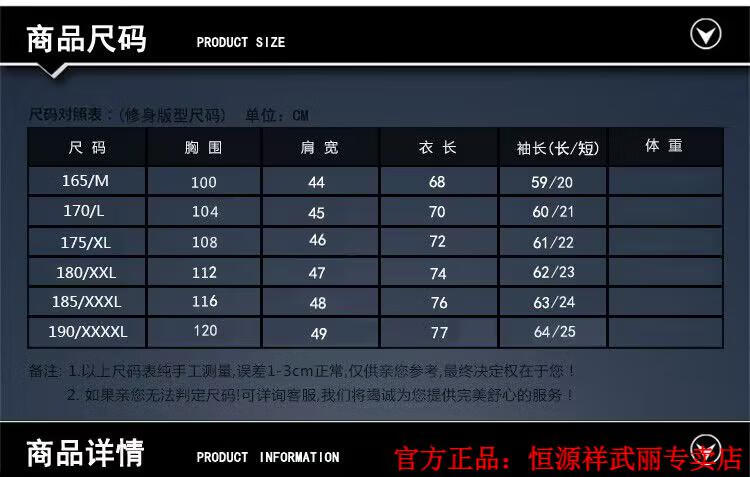 China (cm) 165 / 88-90 170 / 96-98 175 / 108-110 180 / 118-122 185 / 126-130