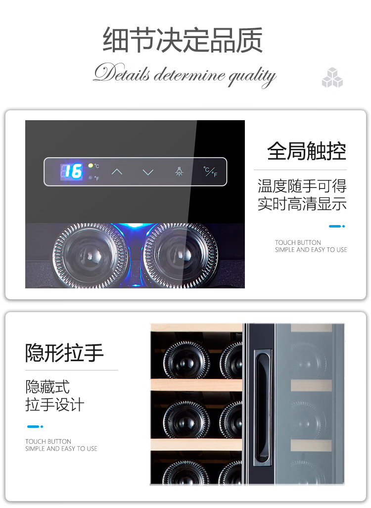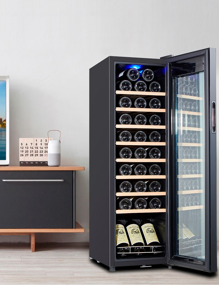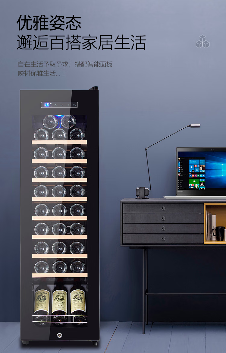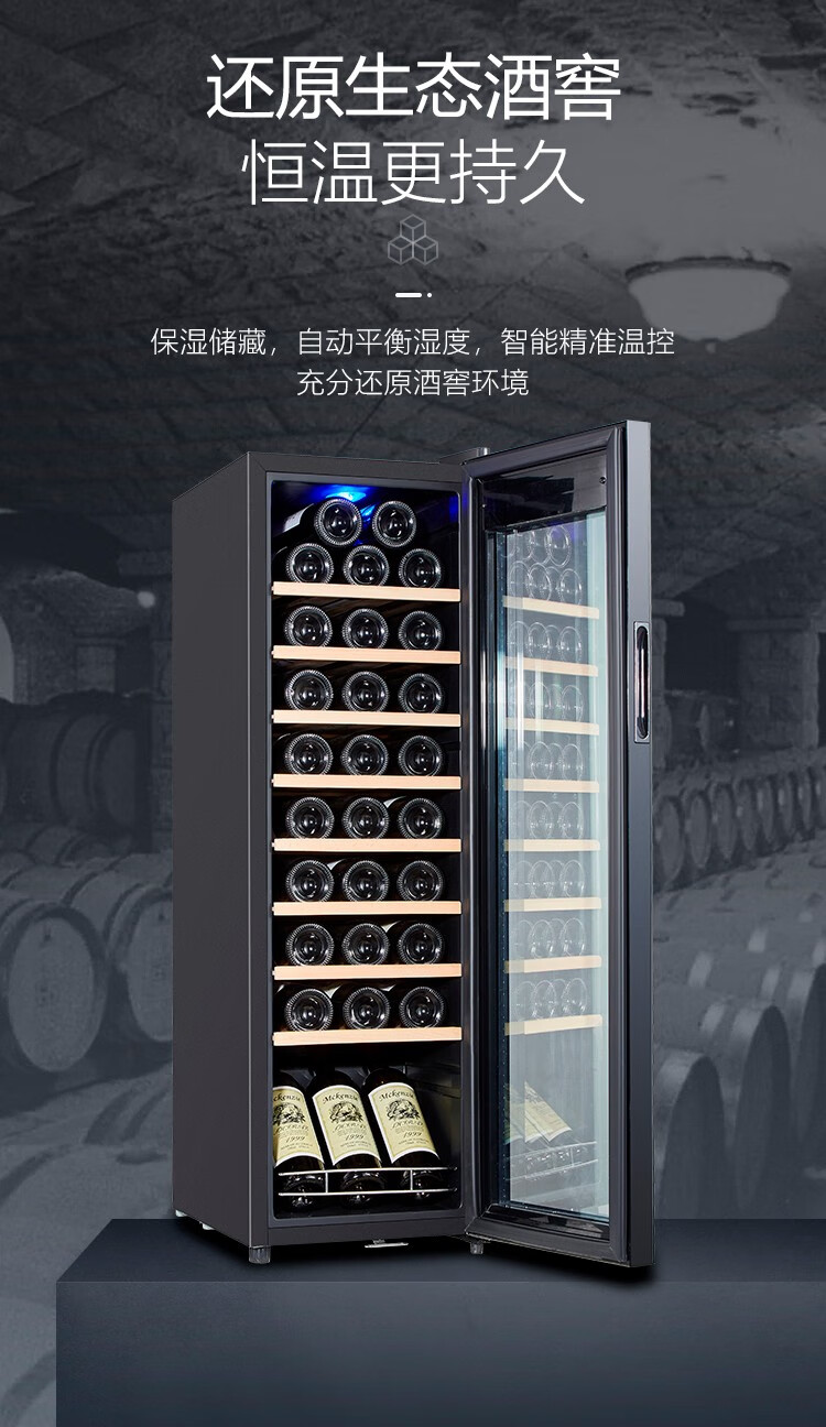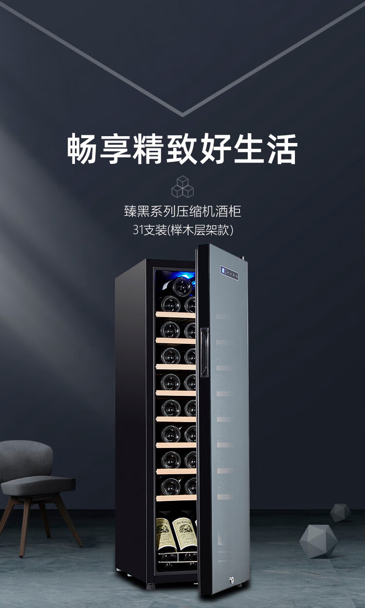 Double small red wine cabinet constant temperature wine cabinet household compressor living room tea red wine thermostatic cabinet air-cooled 31 pieces Zhenhei series C model 31 pieces metal shelf