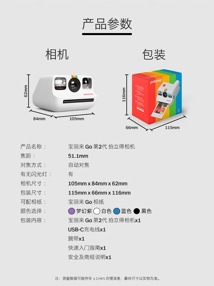 Polaroid GoGen2 instant outdoor camera mini mini portable travel selfie entry-level photography student boys and girls girlfriends wedding birthday Christmas gift white ready stock official standard (no photo paper)