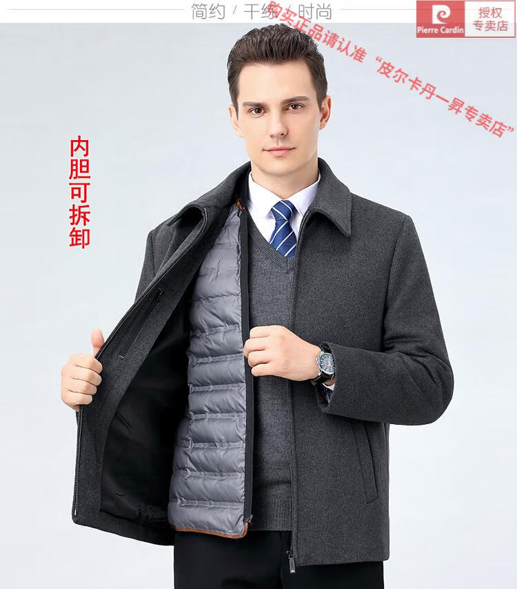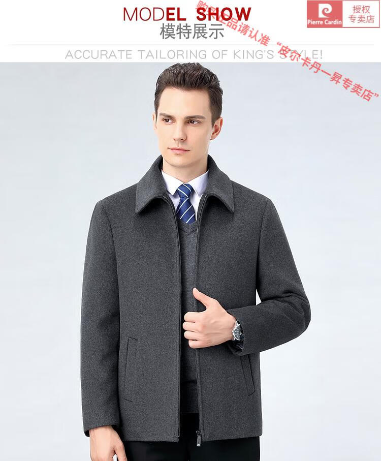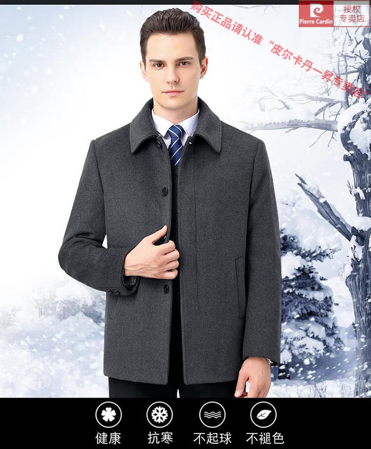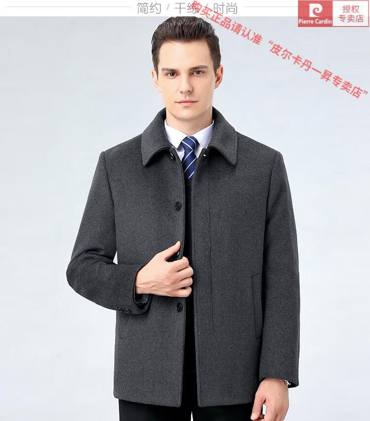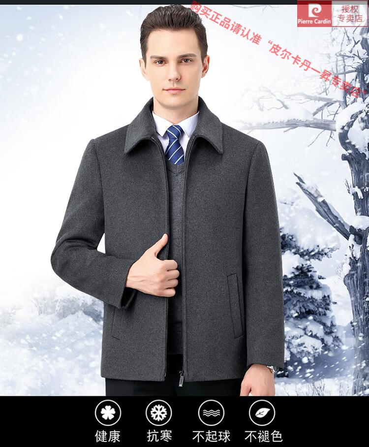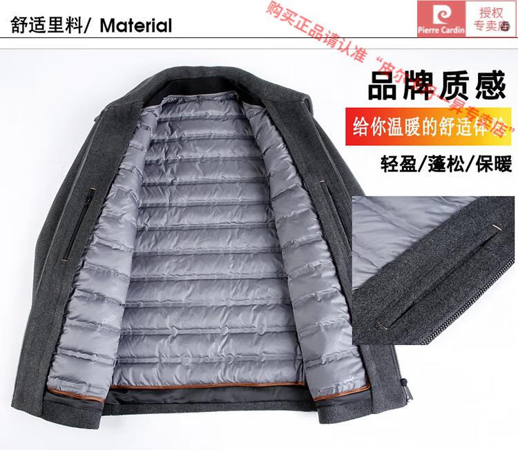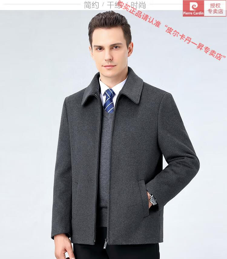 Pierre Cardin cold-proof and warm wool jacket men's winter thickened short coat middle-aged and elderly woolen woolen jacket men's dad's clothing dark gray L 175