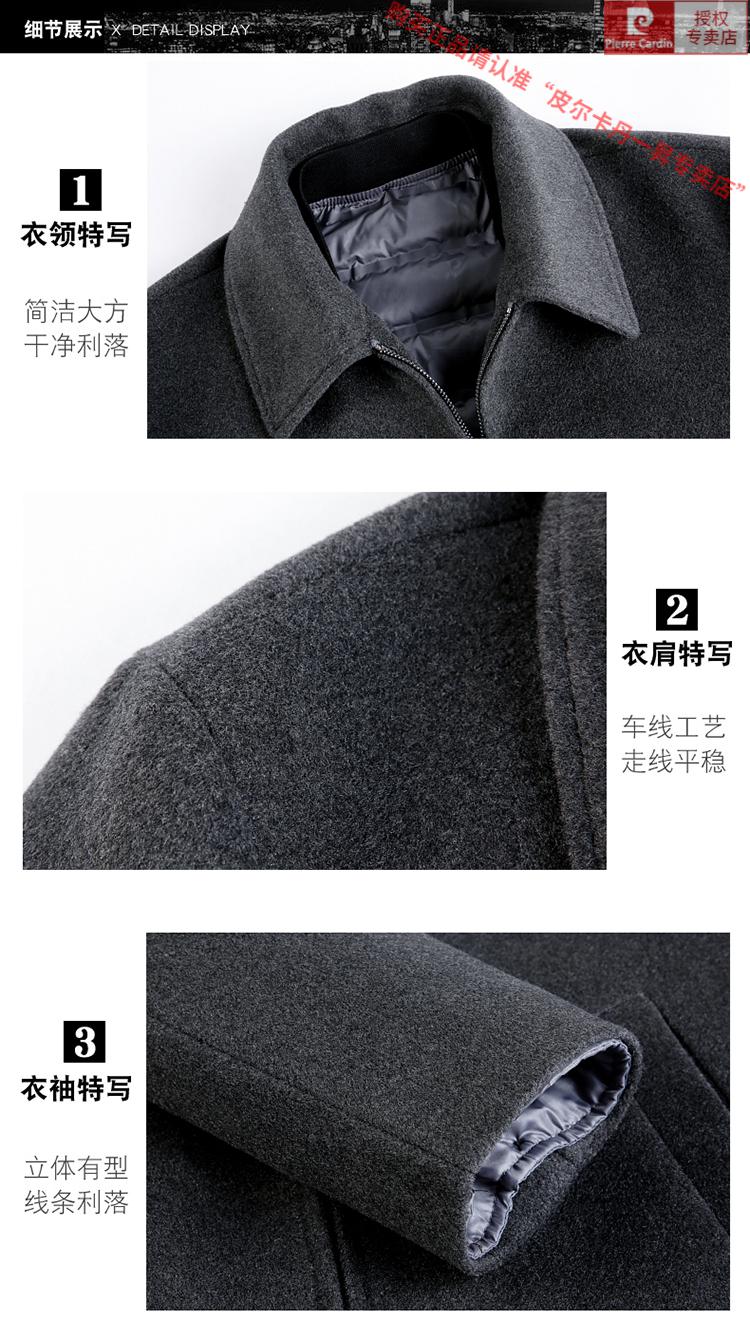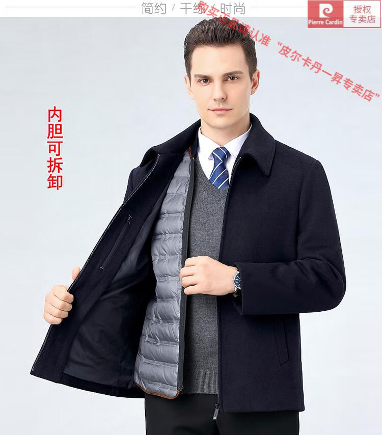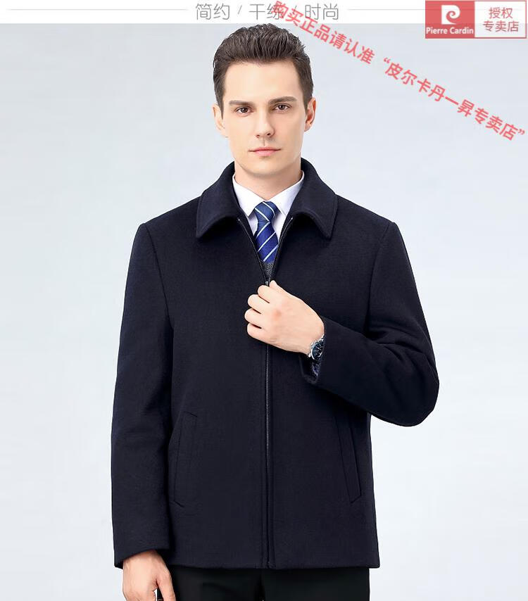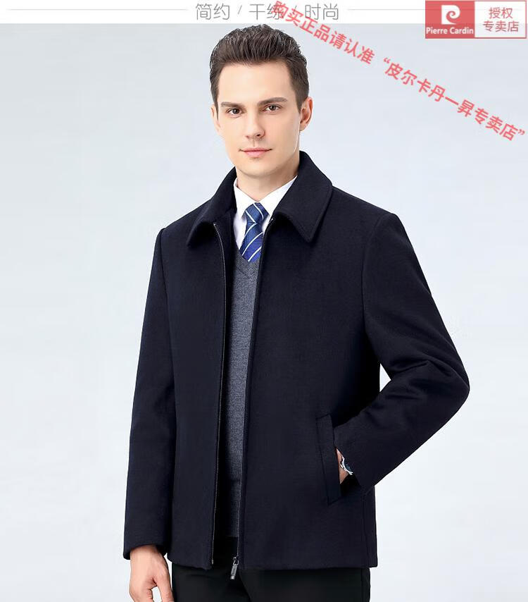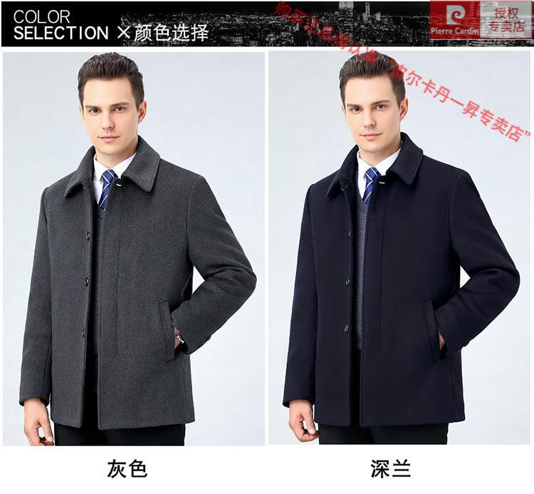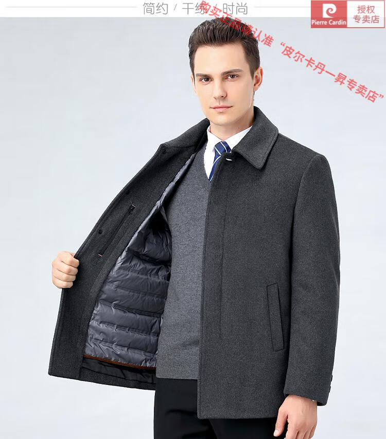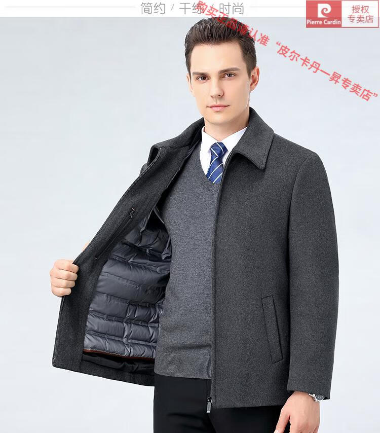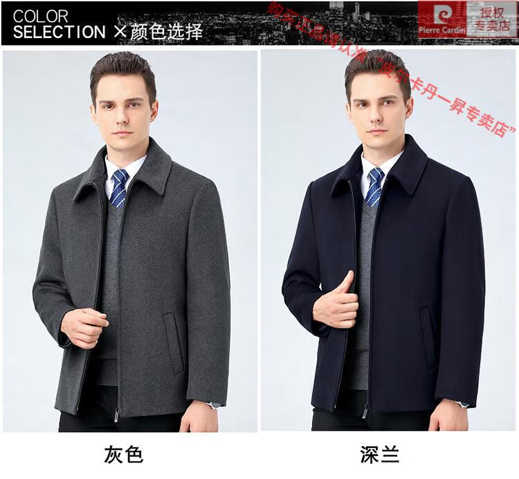 Pierre Cardin cold-proof and warm wool jacket men's winter thickened short coat middle-aged and elderly woolen woolen jacket men's dad's clothing dark gray L 175