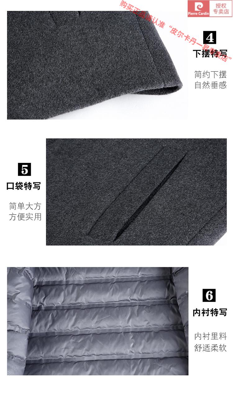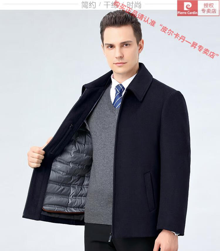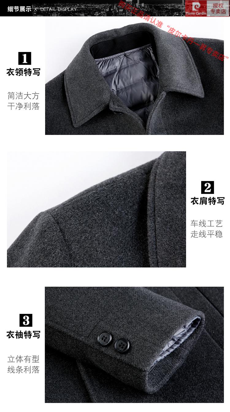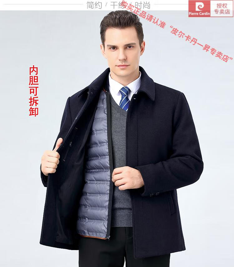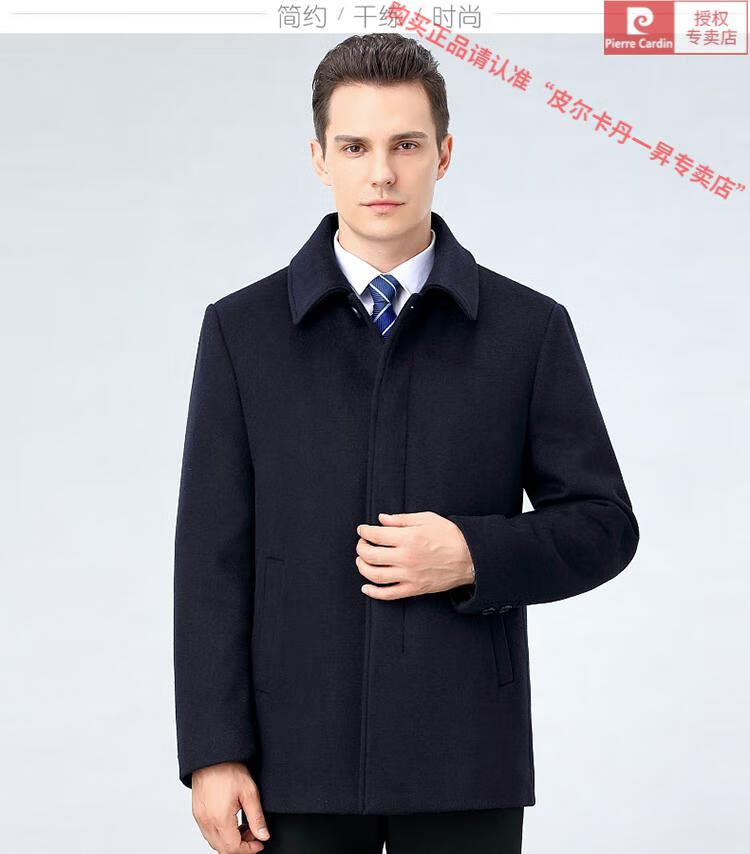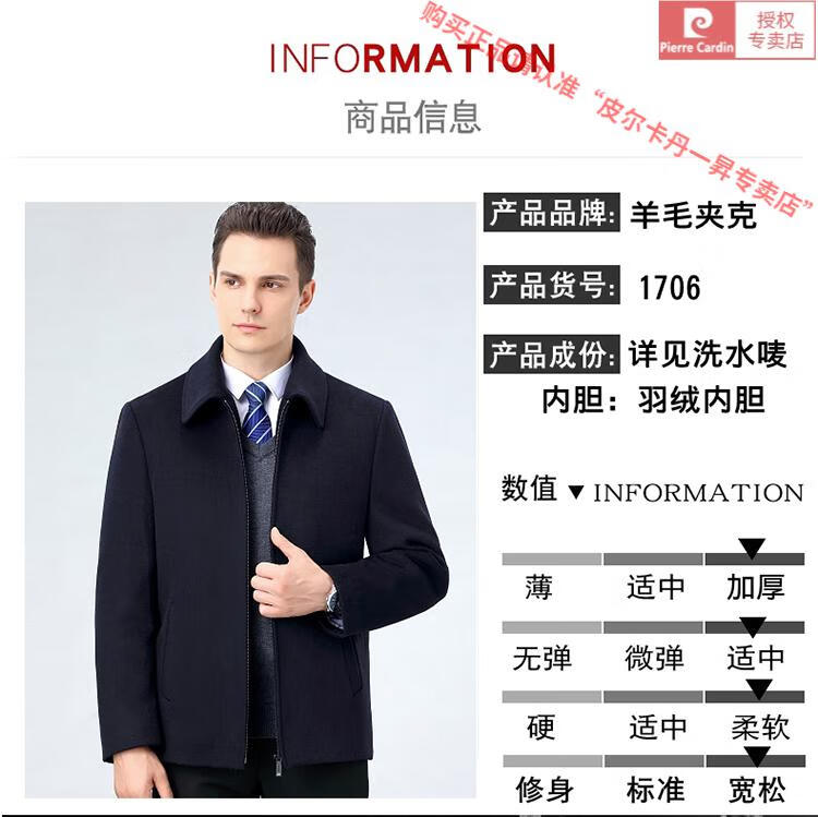 Pierre Cardin cold-proof and warm wool jacket men's winter thickened short coat middle-aged and elderly woolen woolen jacket men's dad's clothing dark gray L 175