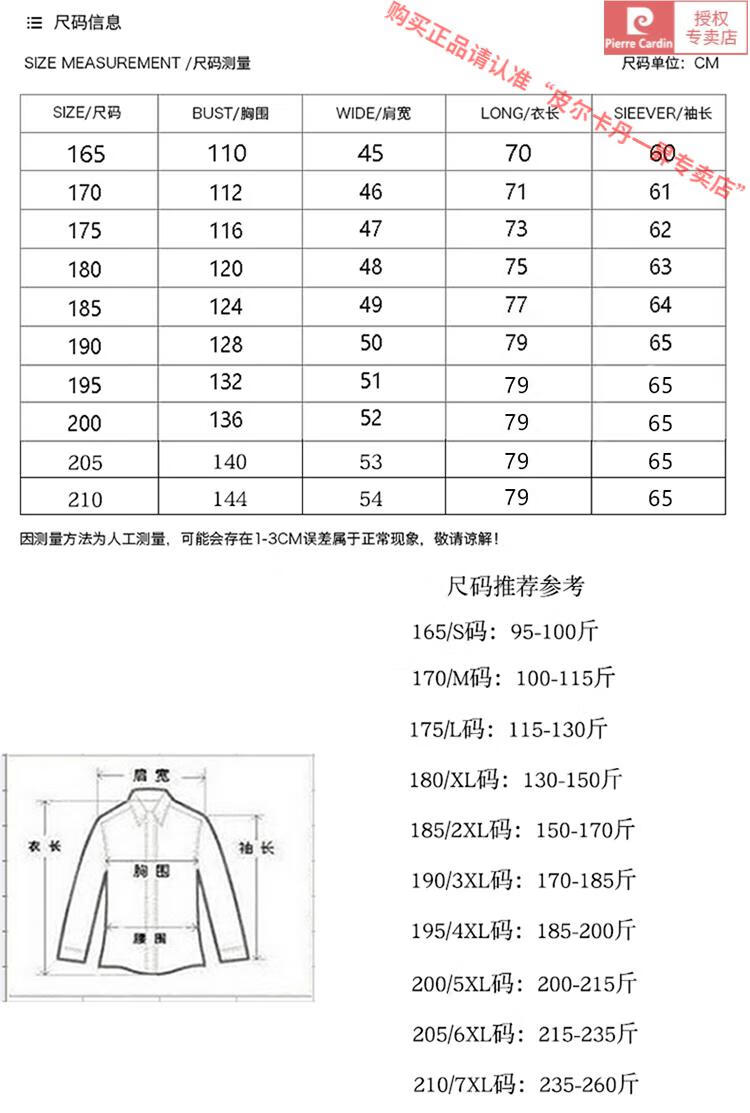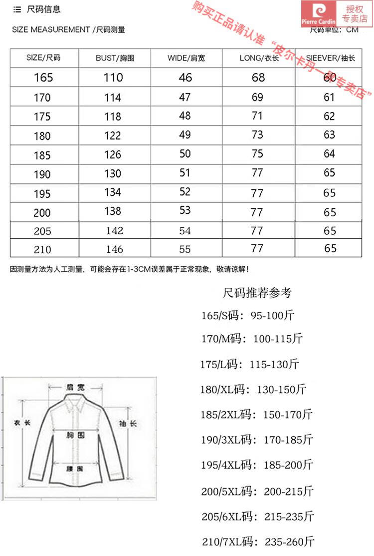 China (cm) 165 / 88-90 170 / 96-98 175 / 108-110 180 / 118-122 185 / 126-130
