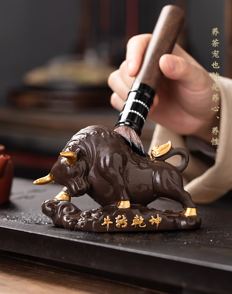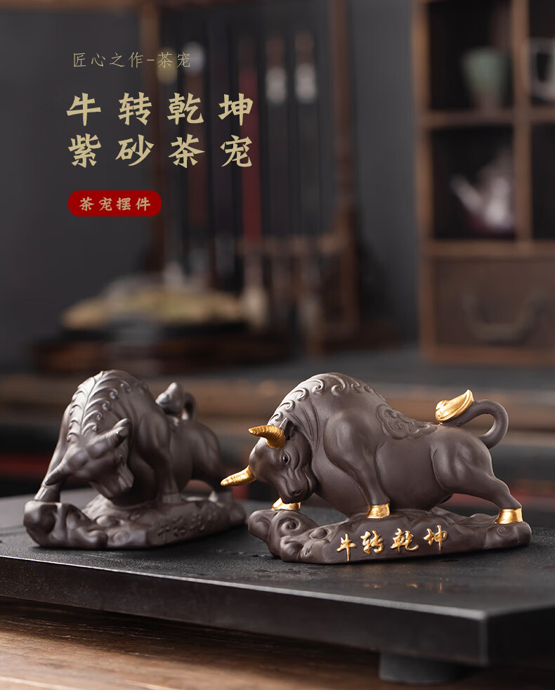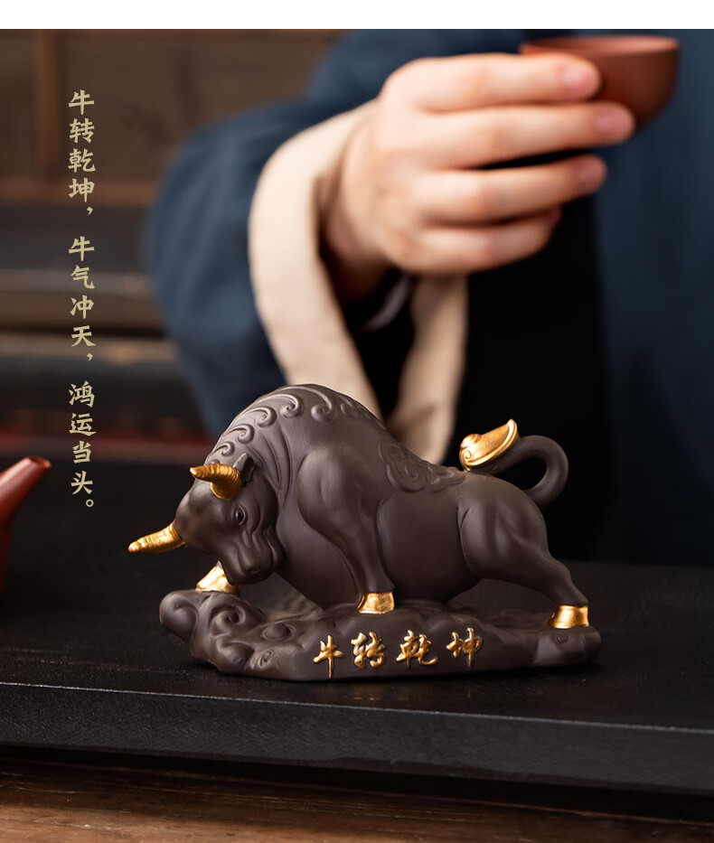 Dialect Tea Pet Decoration Purple Clay Ox Lucky Accessories Bullish Zen Tea Ceremony Coffee Table Boutique Tea Play Decoration Purple Clay Ox Turns the Universe Safety Equipment