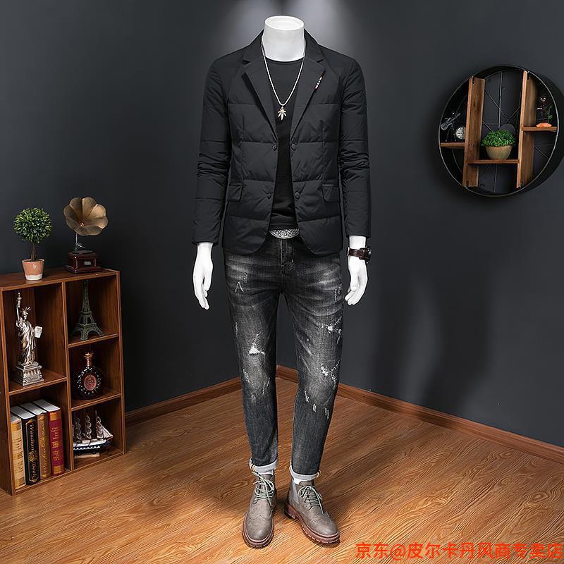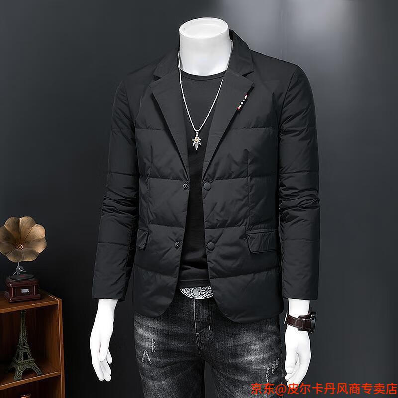 Pierre Cardin autumn and winter new suit collar cotton jacket men's trendy slim youth suit casual warm cotton jacket black M recommended 80-110Jin Jin equals 0.5 kg