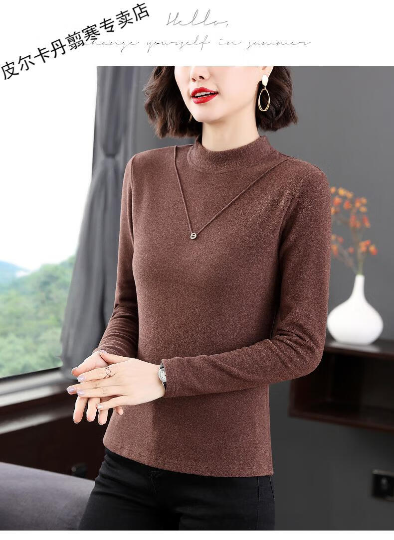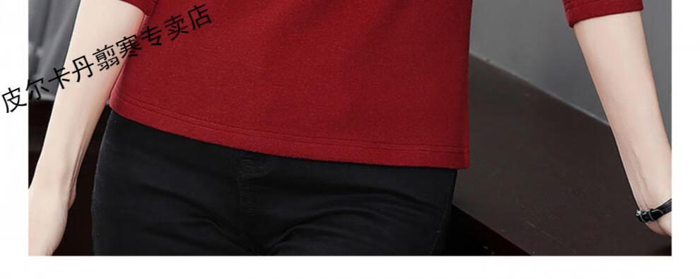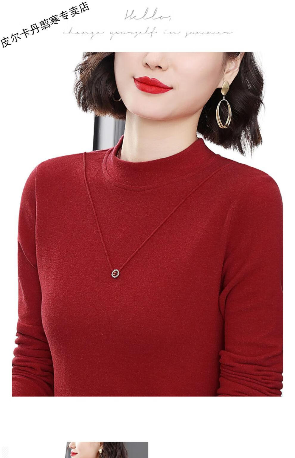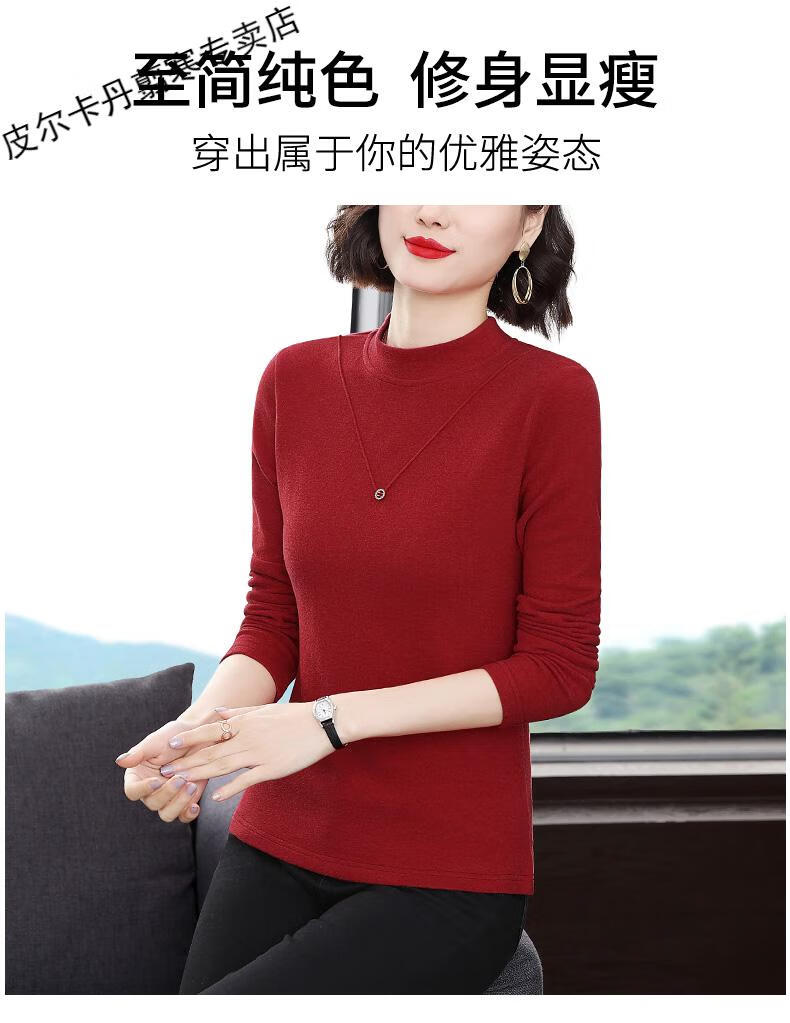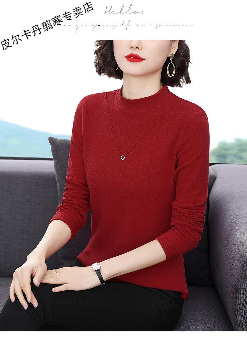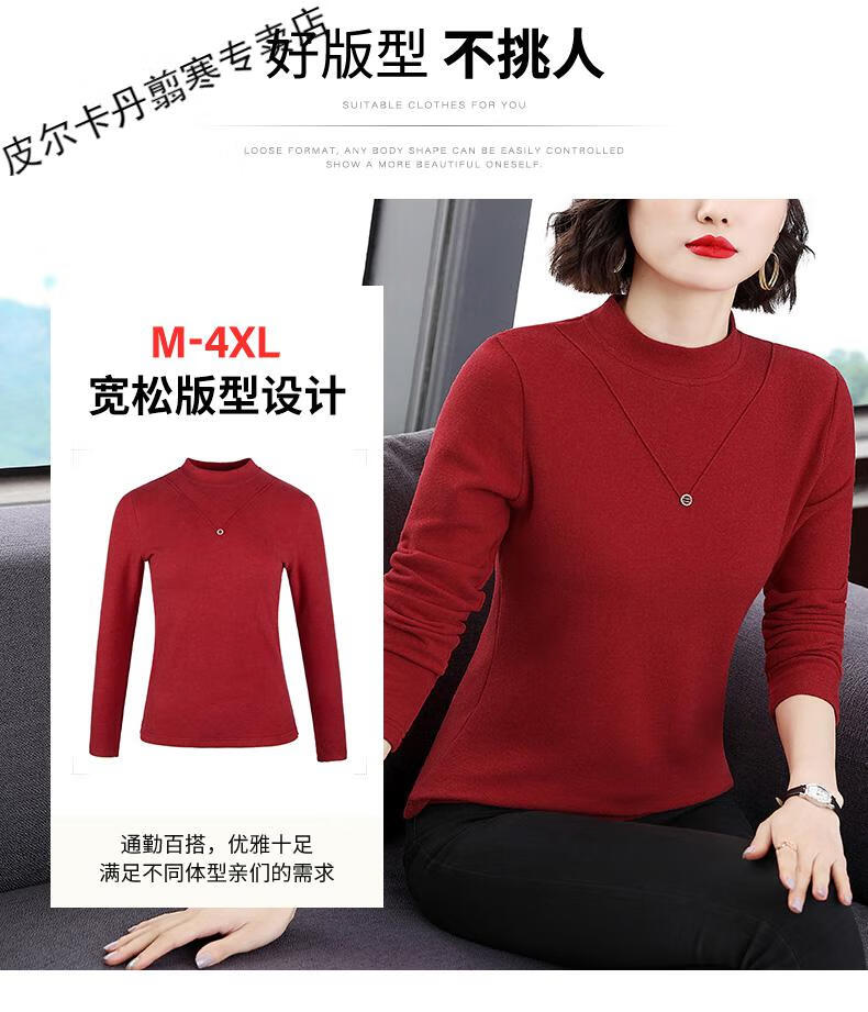 Pierre Cardin double-sided German velvet long-sleeved bottoming shirt for women spring and autumn half turtleneck inner T-shirt 2025 new warm shirt 21375 (cherry red) 2XL