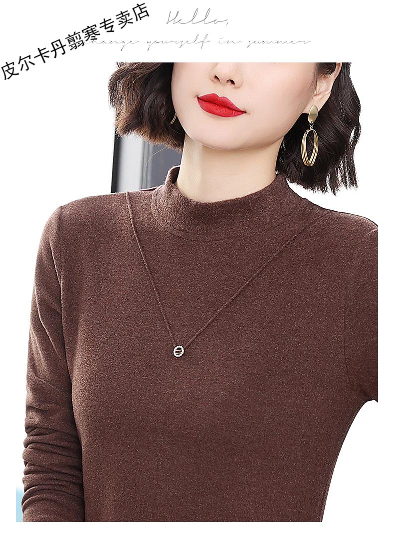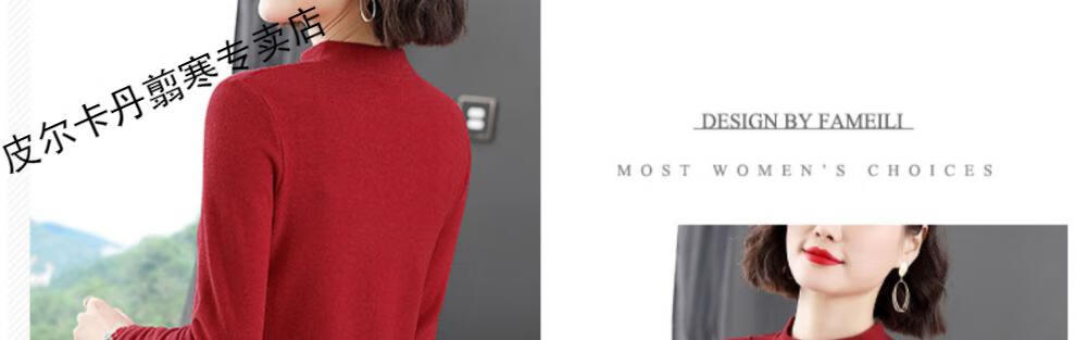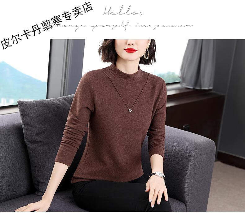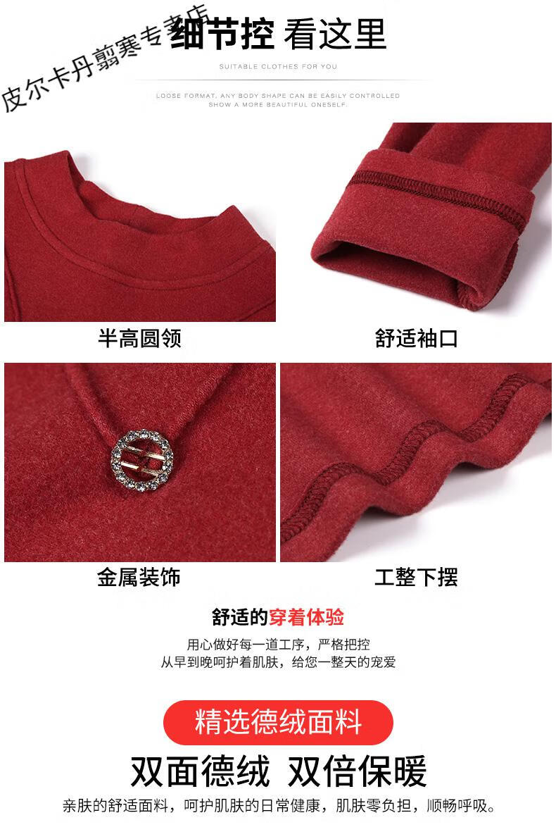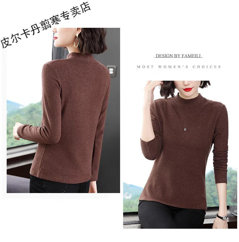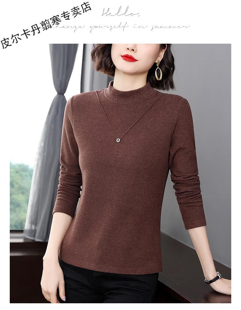 Pierre Cardin double-sided German velvet long-sleeved bottoming shirt for women spring and autumn half turtleneck inner T-shirt 2025 new warm shirt 21375 (cherry red) 2XL