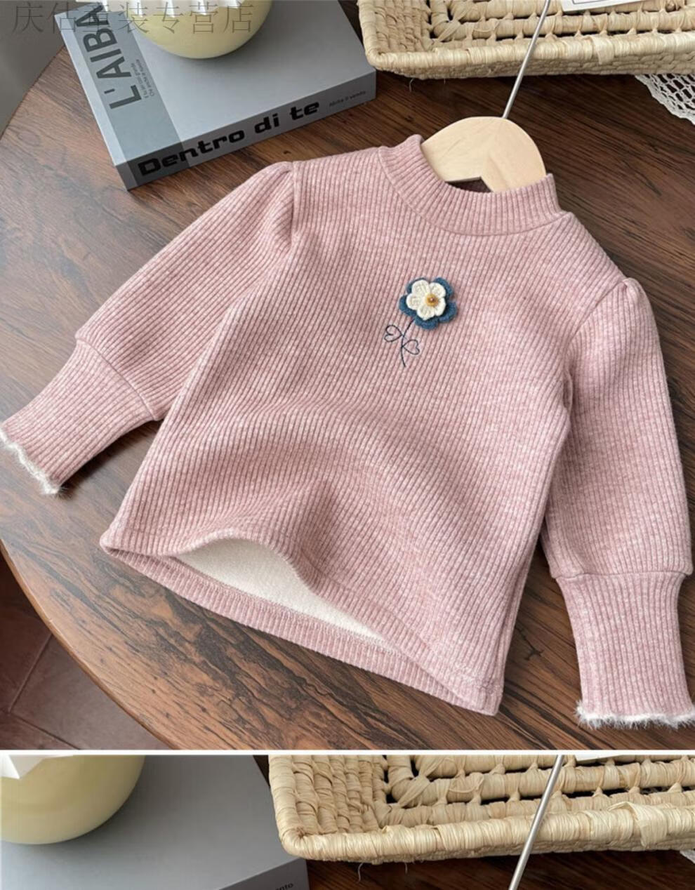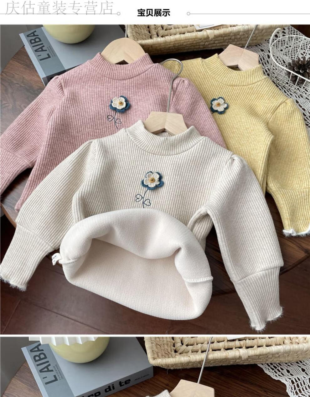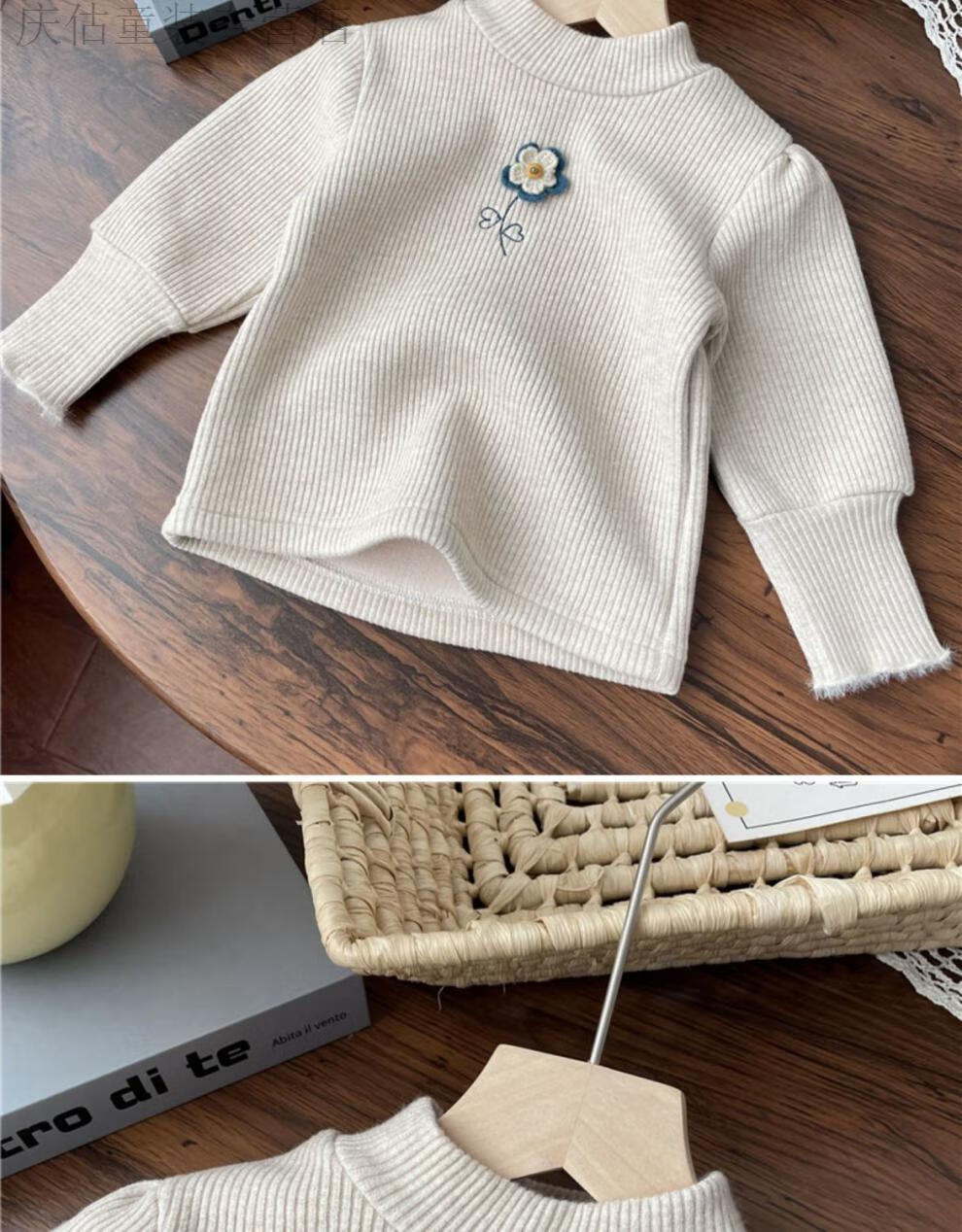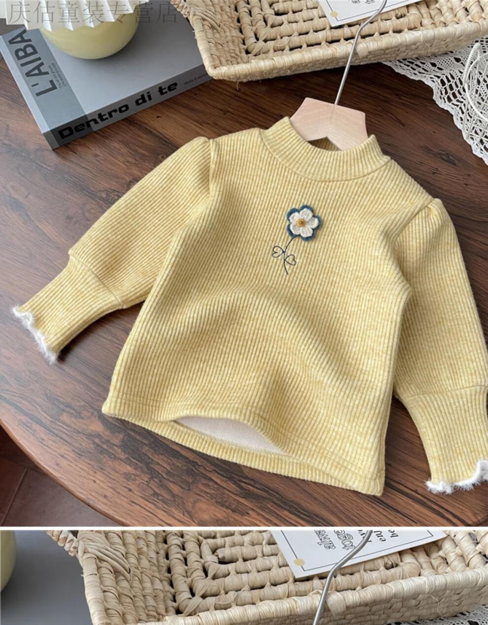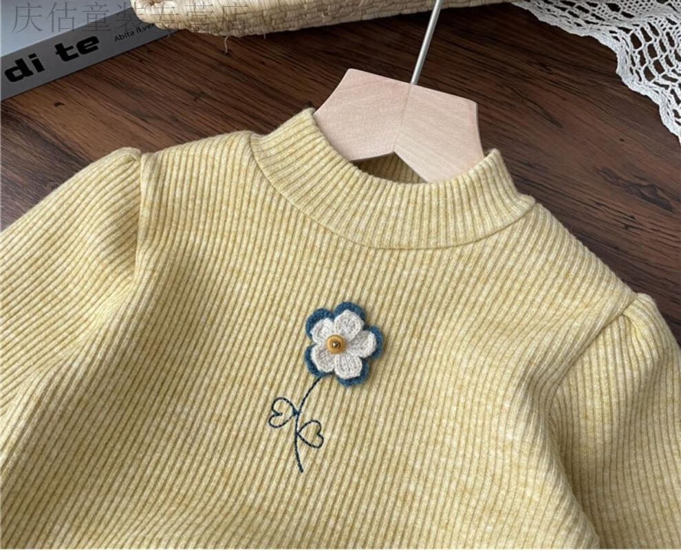HAL.DUCK Girls' Velvet Bottoming Shirt Western Style 2023 Autumn and Winter New Style Baby Girl Small Flower One-Fleece Long-Sleeved Thickened Top Yellow One-Fleece 80 Suitable for Height 70-80cm Age 1-2 Years Old