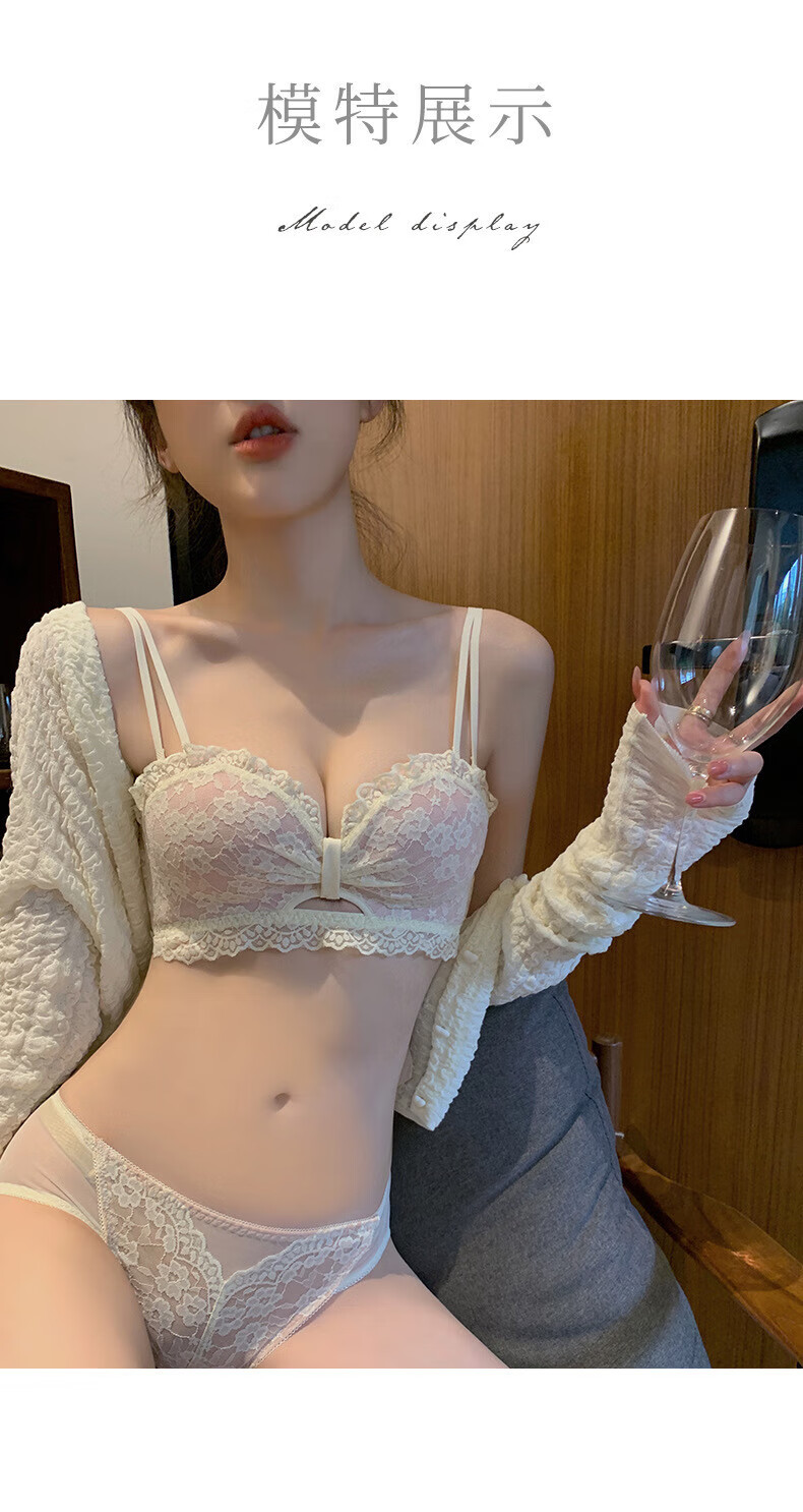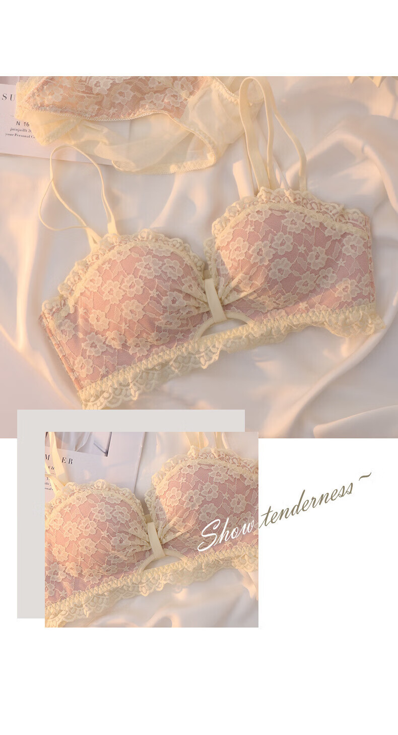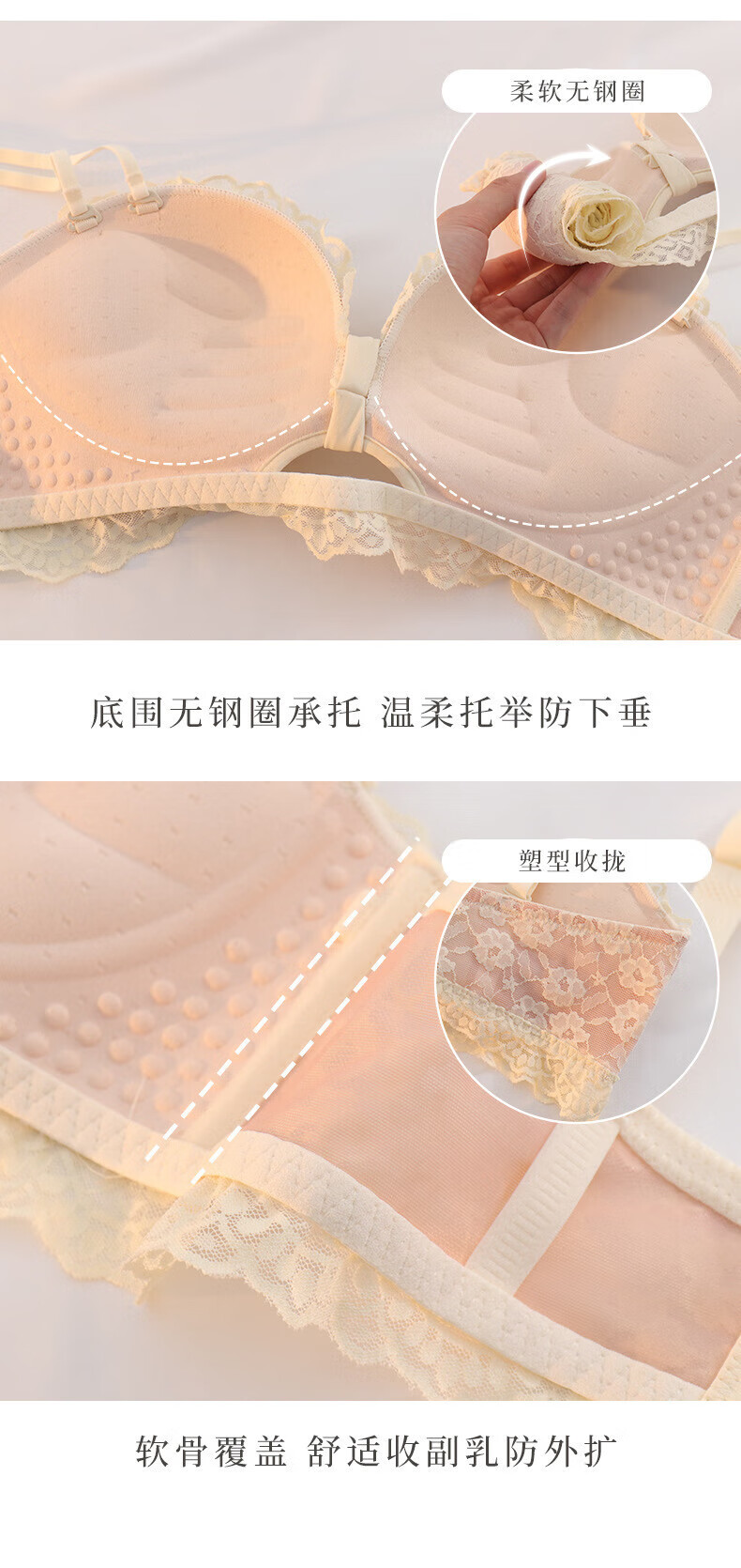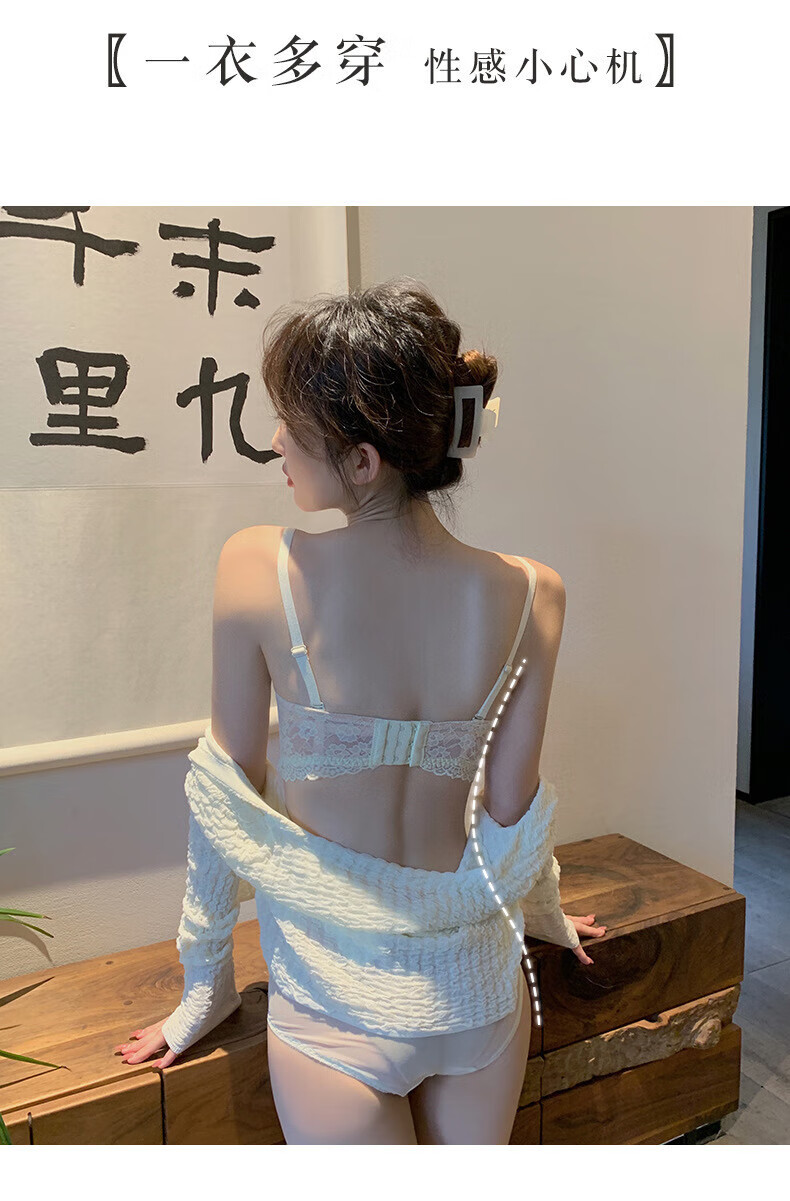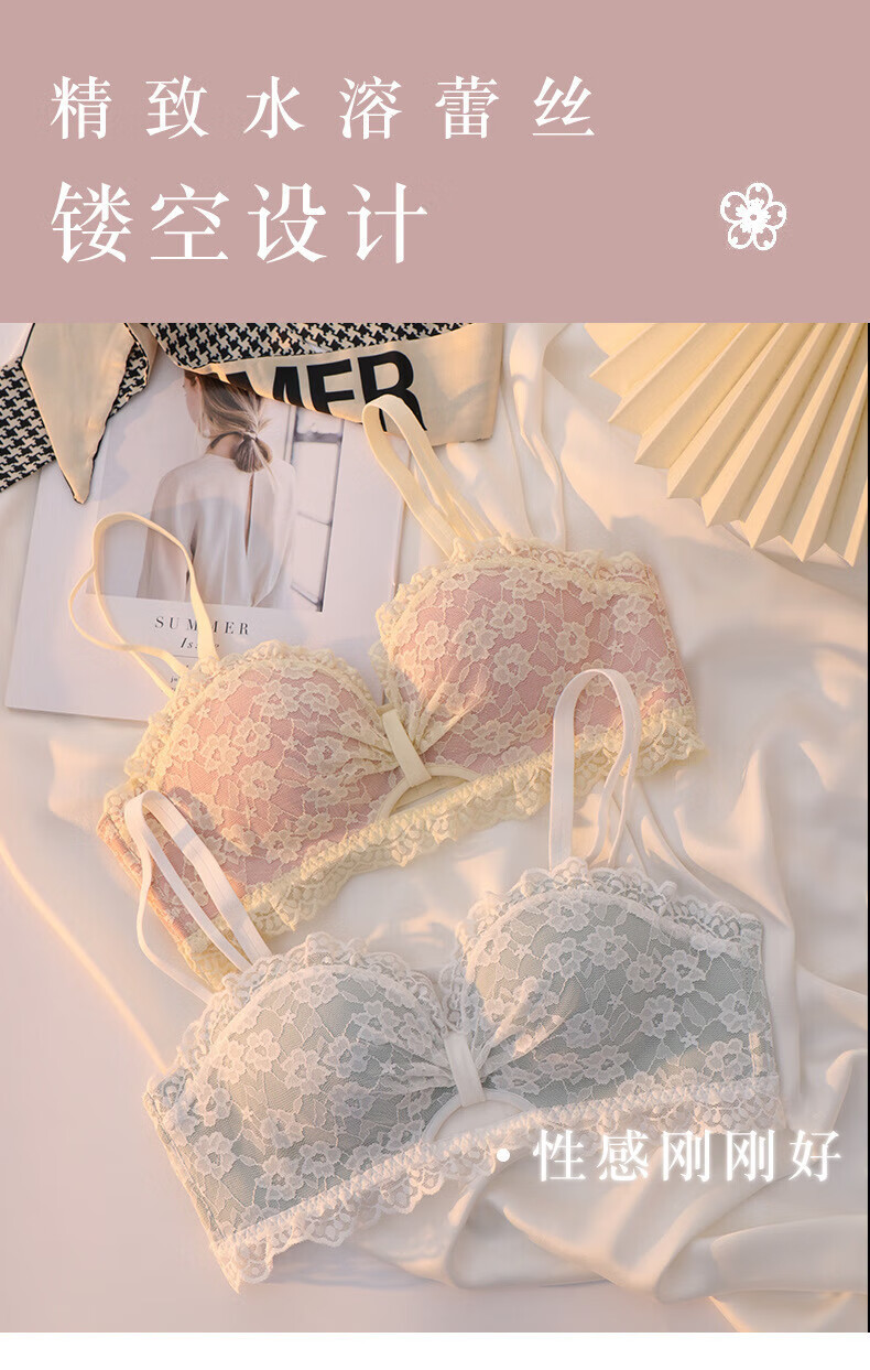 Wen Fanxin underwear women's small breast push-up no wire bra girl pure desire sexy lace auxiliary breast support adjustable bra pink (set) 34A/75A
