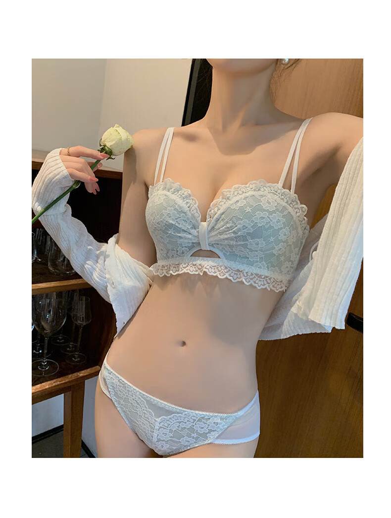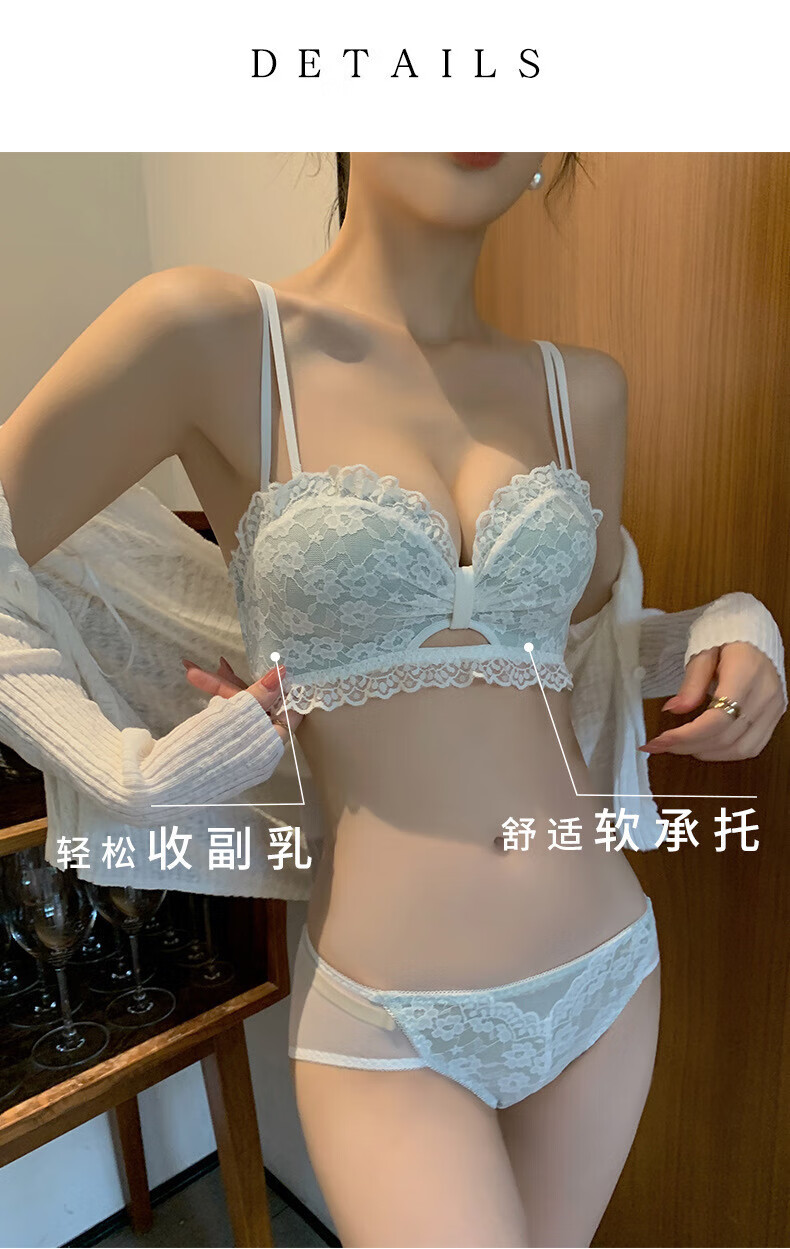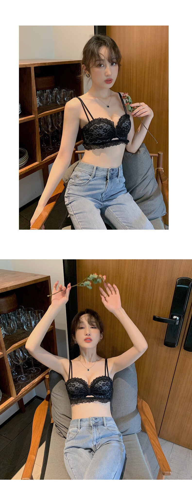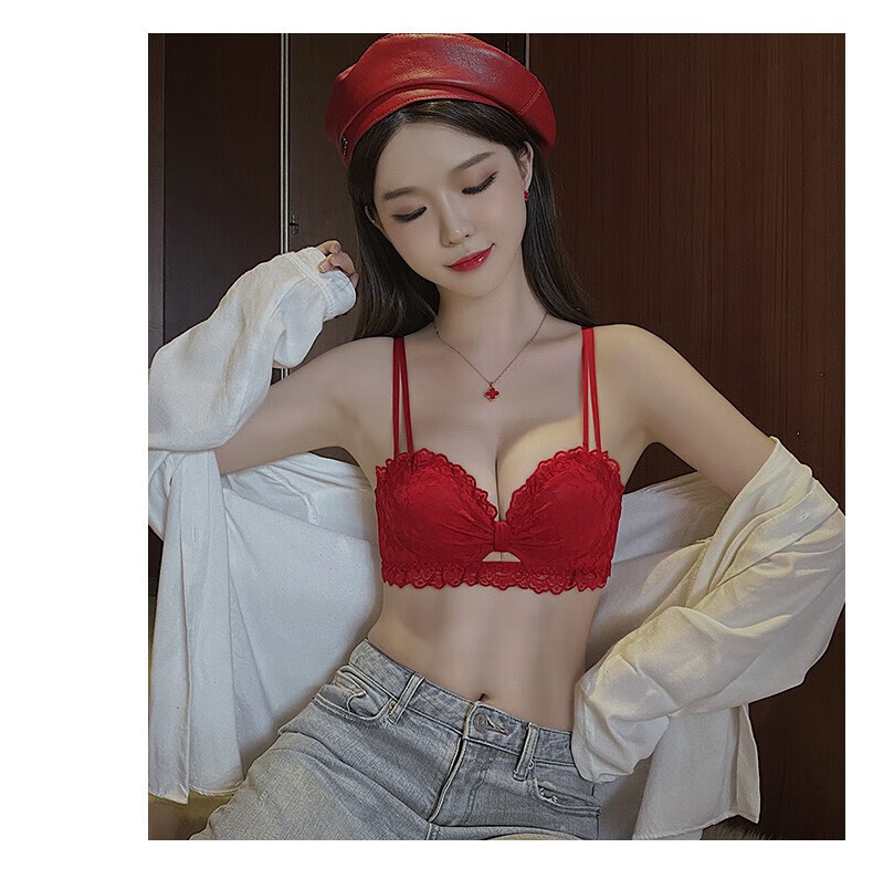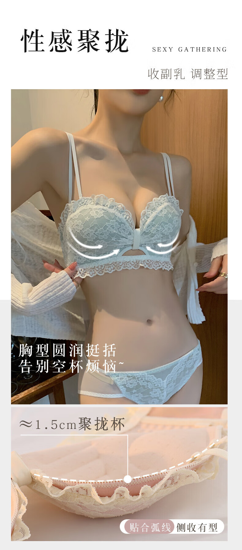 Wen Fanxin underwear women's small breast push-up no wire bra girl pure desire sexy lace auxiliary breast support adjustable bra pink (set) 34A/75A