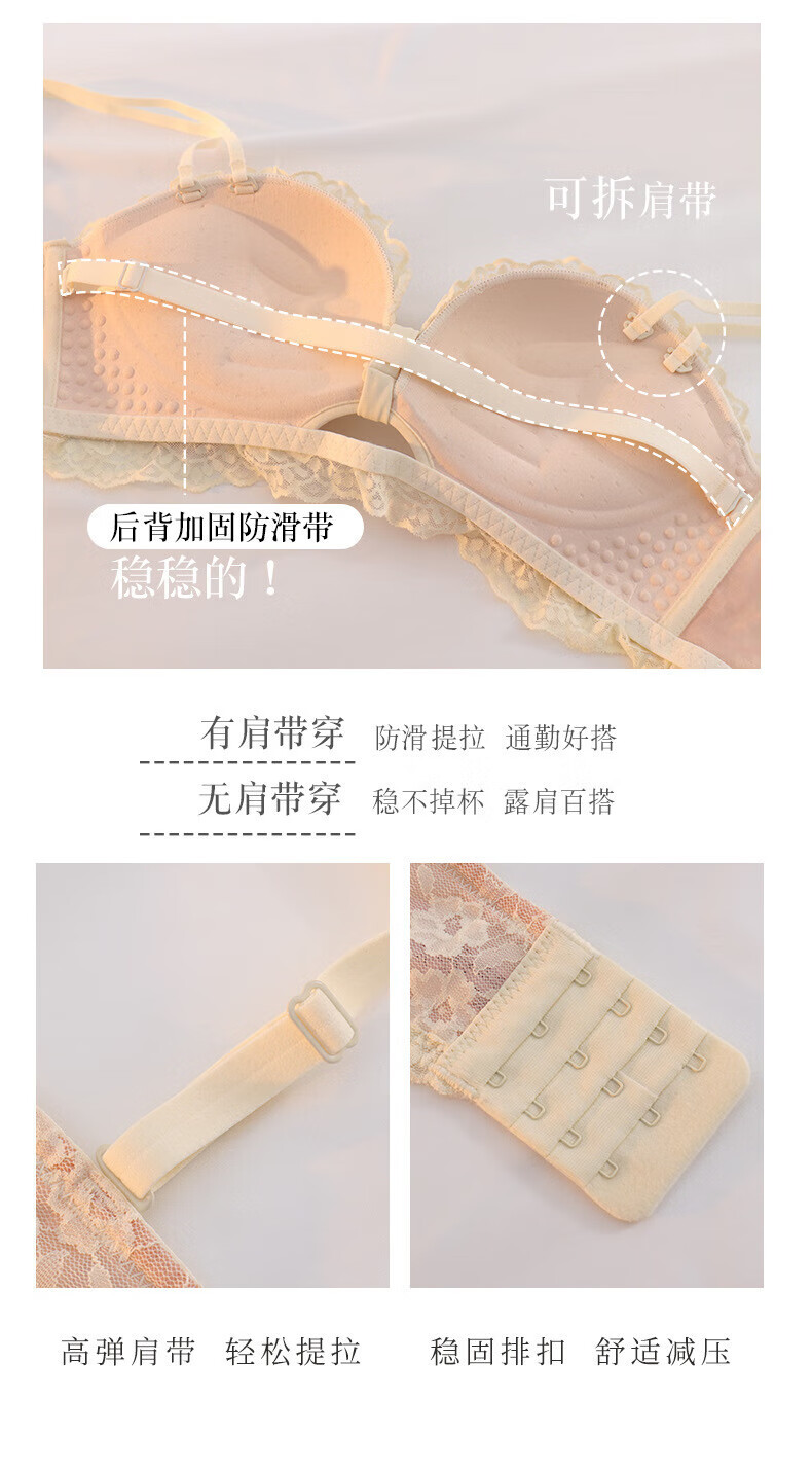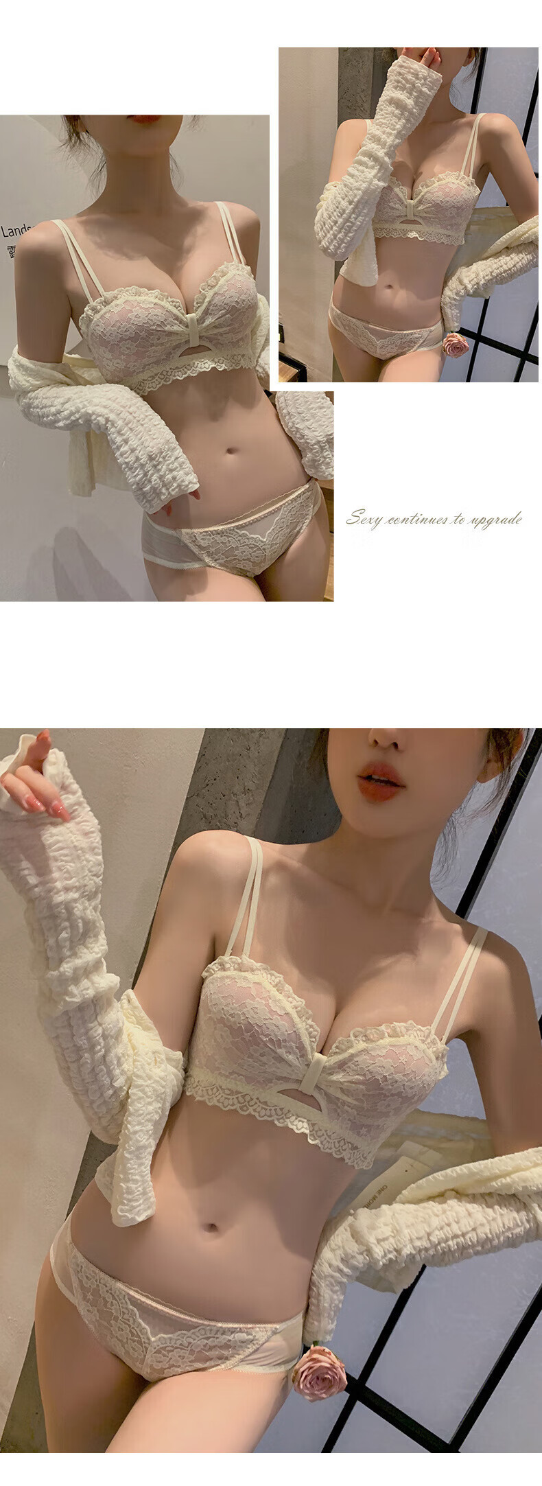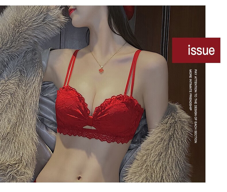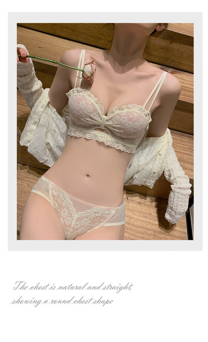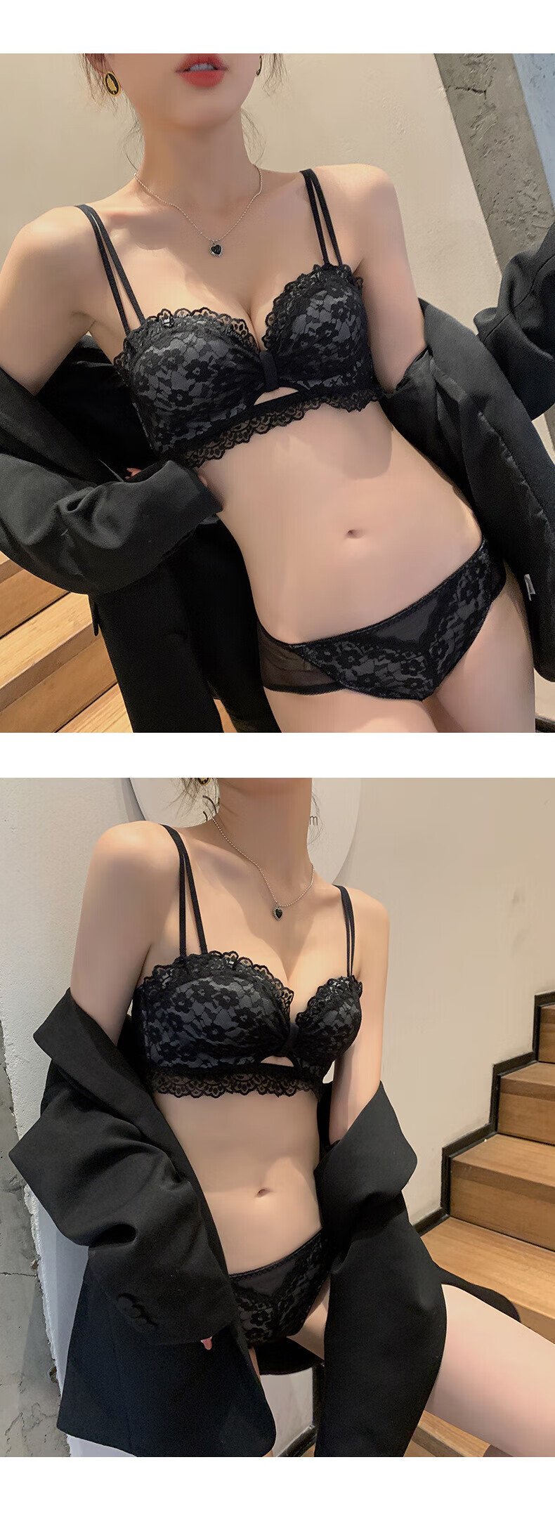Wen Fanxin underwear women's small breast push-up no wire bra girl pure desire sexy lace auxiliary breast support adjustable bra pink (set) 34A/75A