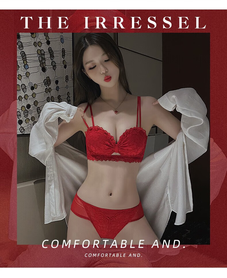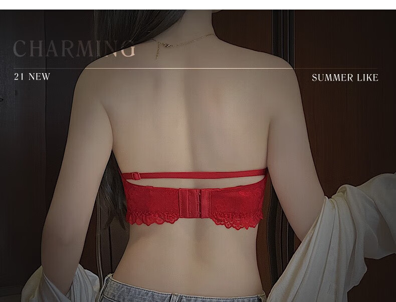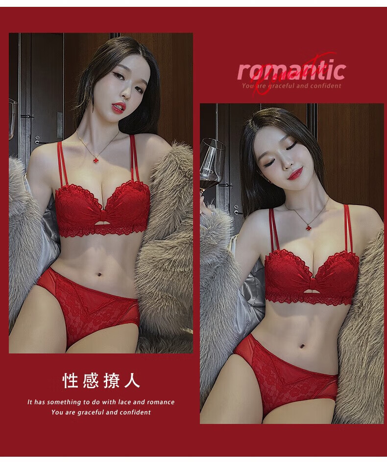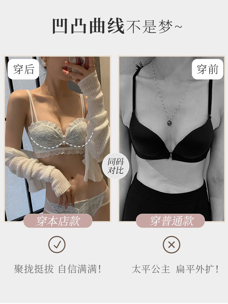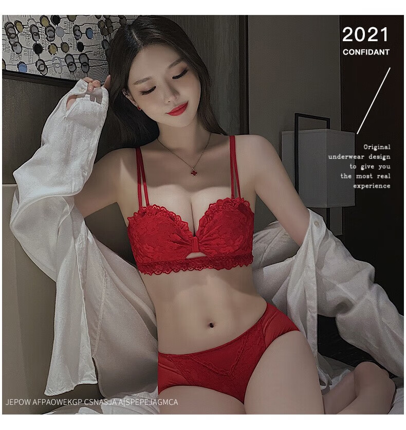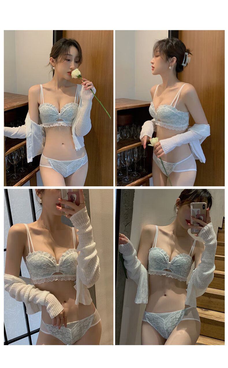 Wen Fanxin underwear women's small breast push-up no wire bra girl pure desire sexy lace auxiliary breast support adjustable bra pink (set) 34A/75A