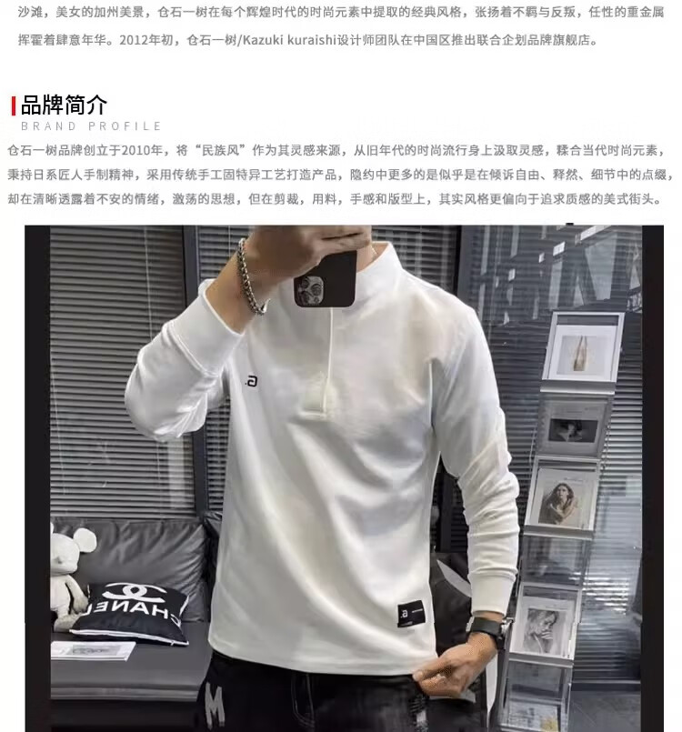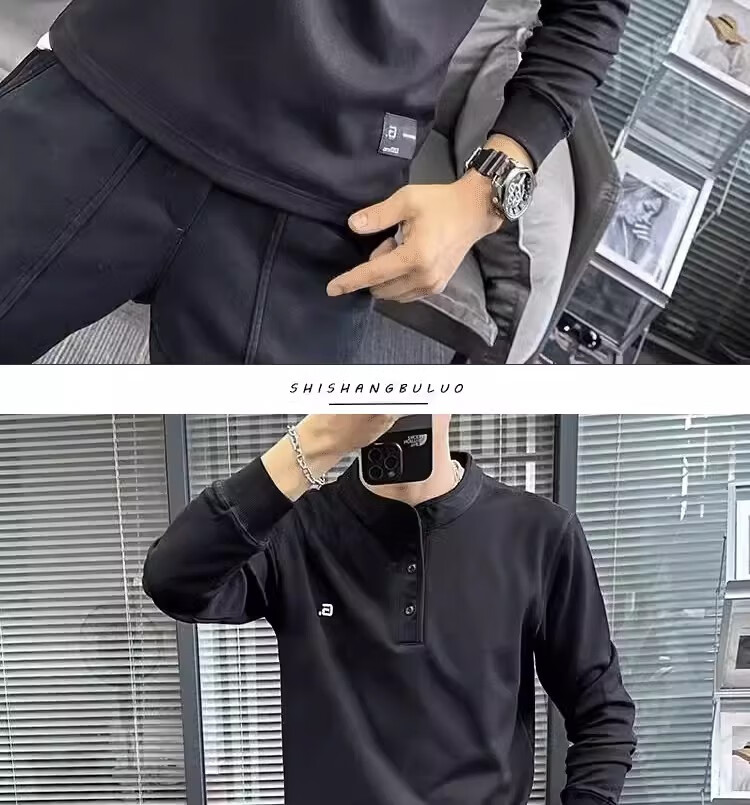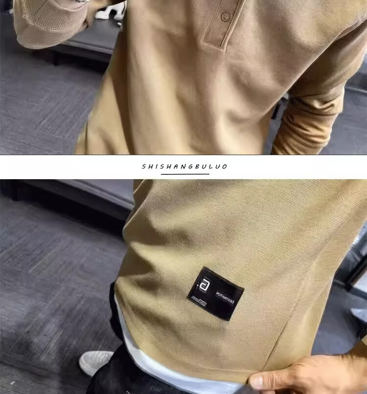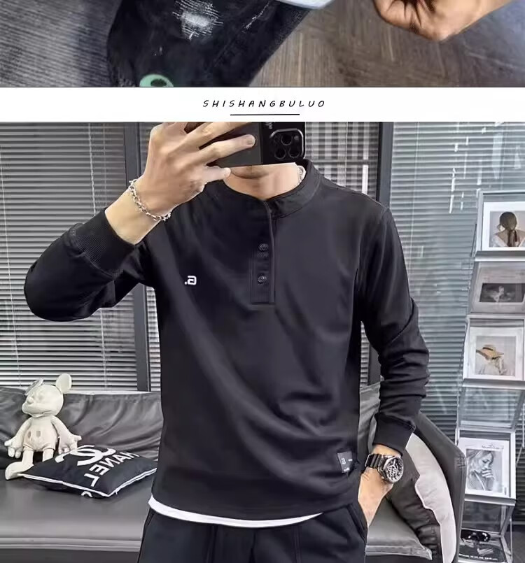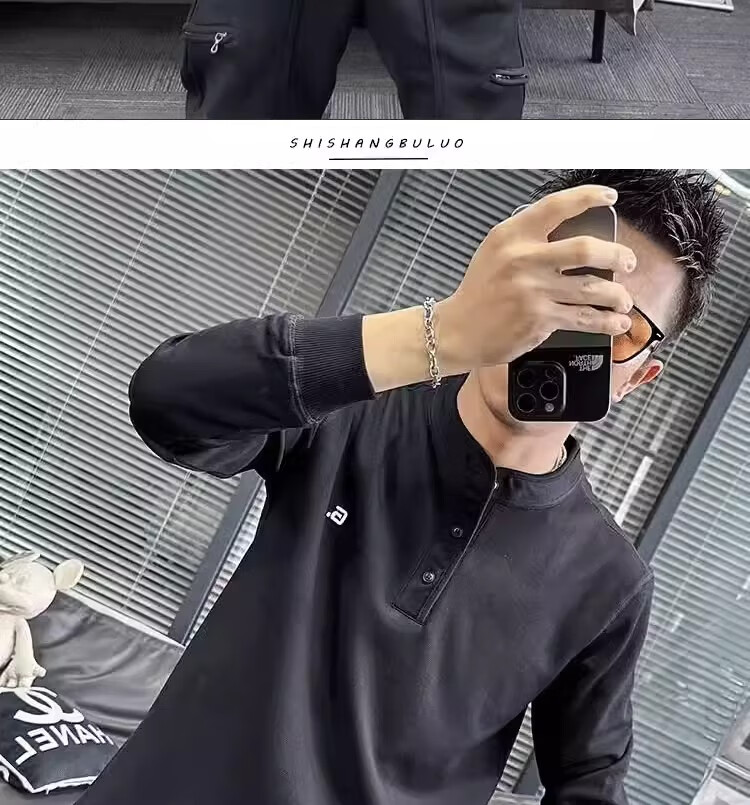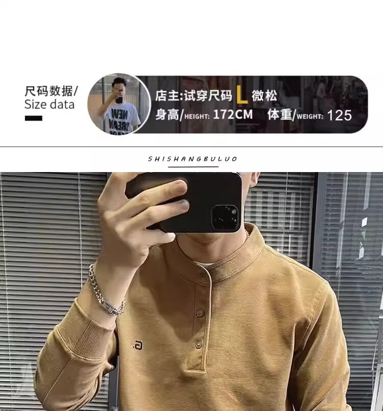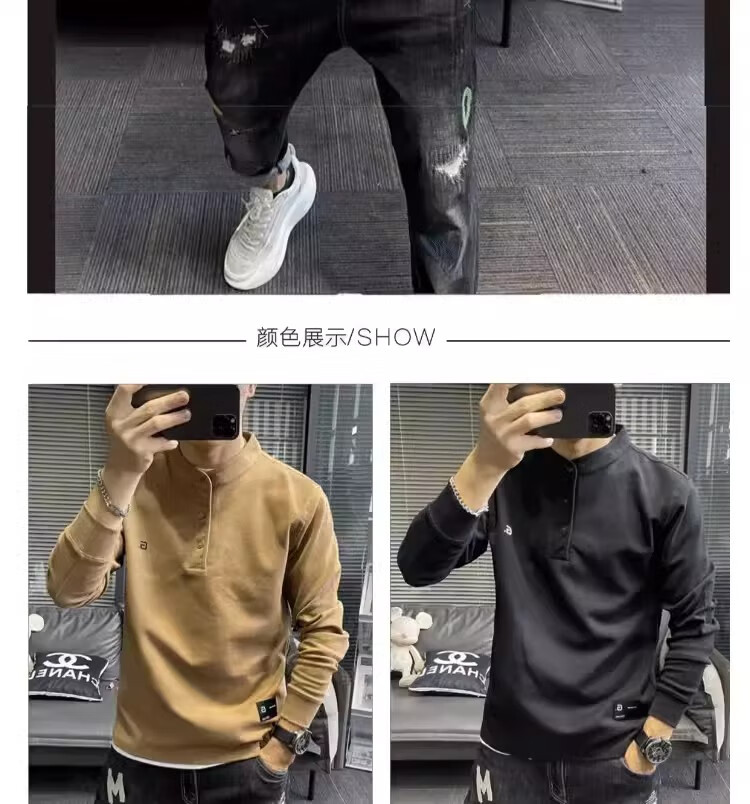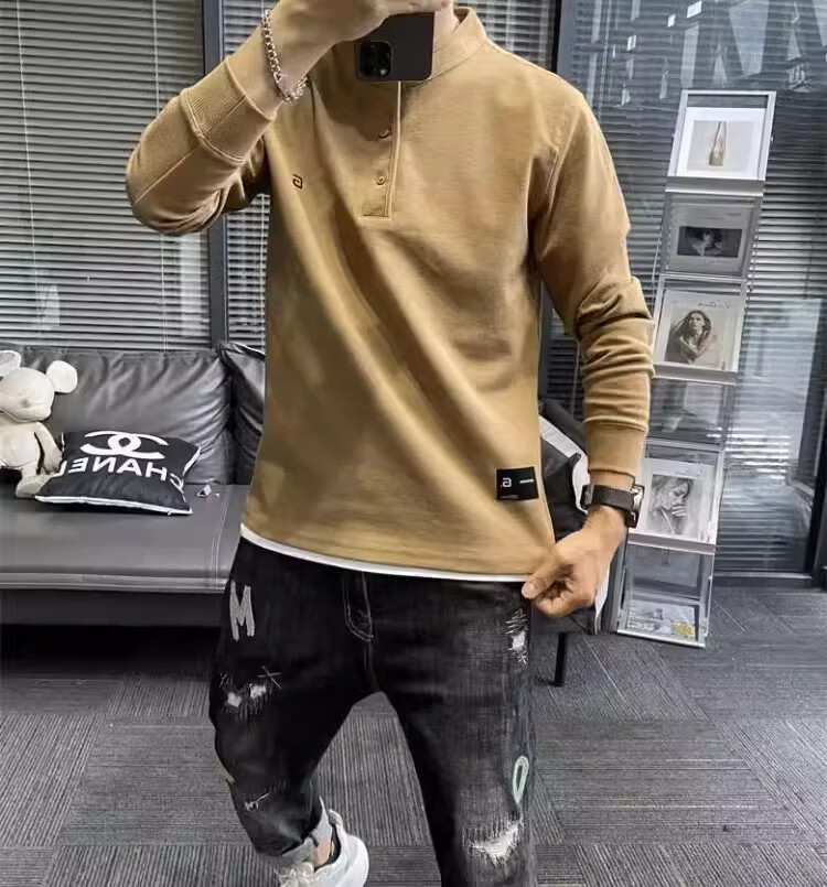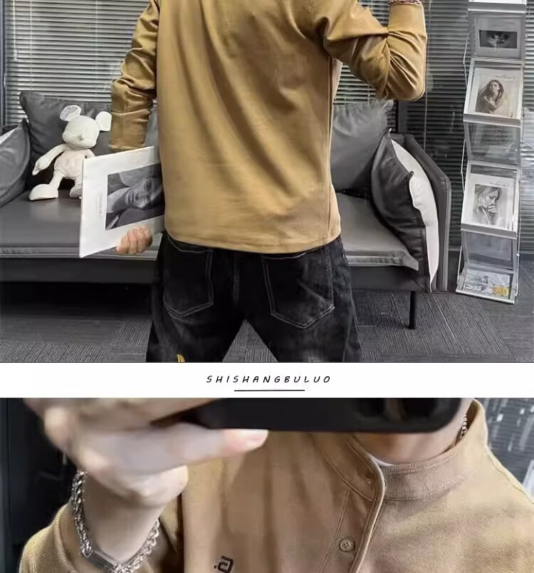 Kuraishi Kazuki trendy American Henry collar long-sleeved T-shirt for men 2025 new spring and autumn high-quality handsome casual bottoming sweatshirt mustard yellow XL