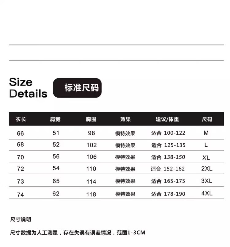 China (cm) 165 / 88-90 170 / 96-98 175 / 108-110 180 / 118-122 185 / 126-130