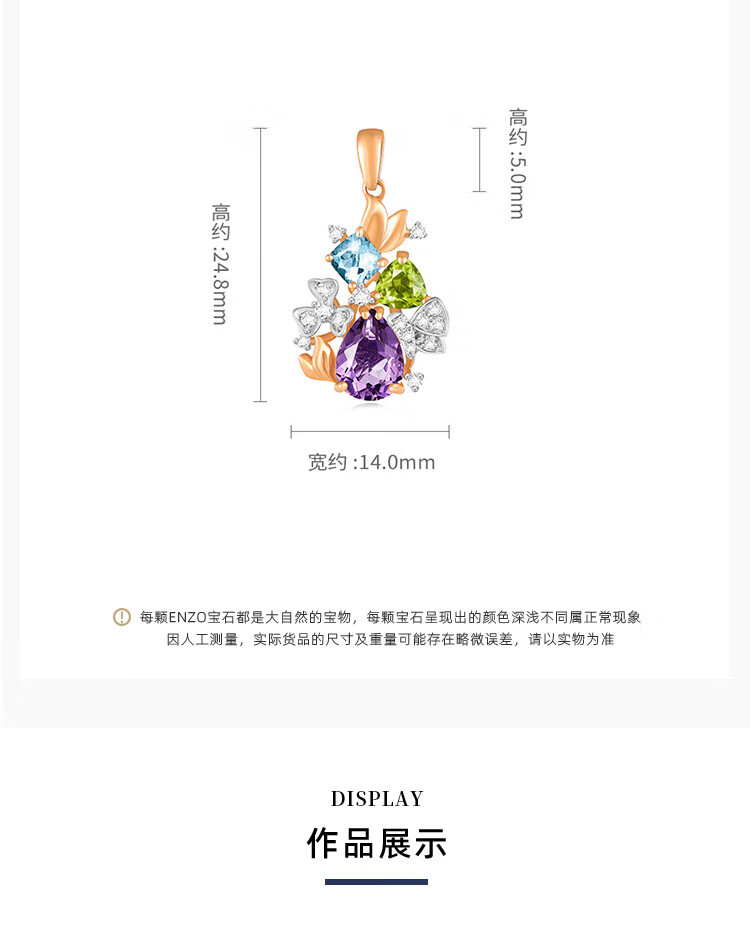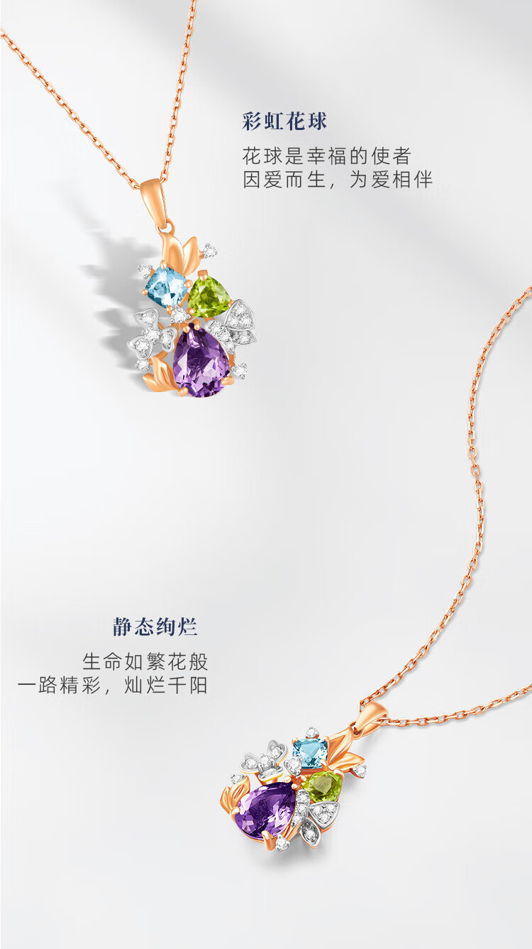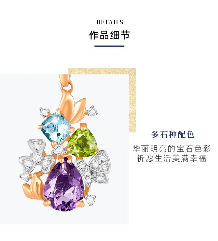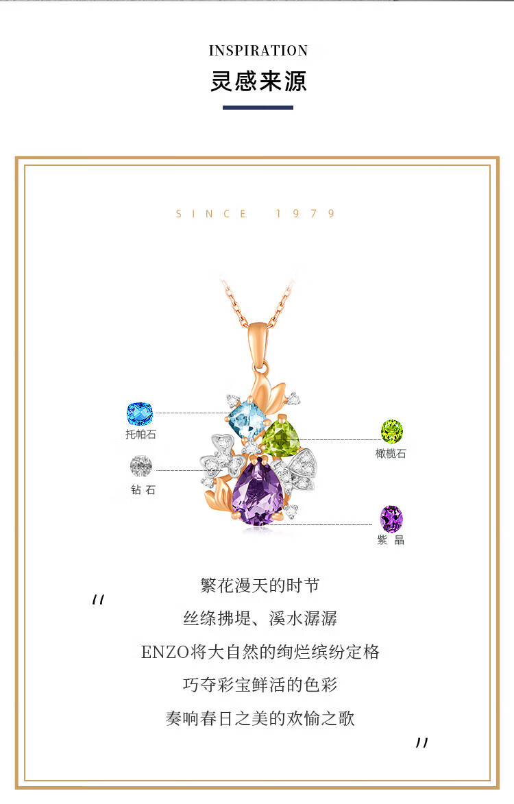 ENZO Garden Series 18K Gold Colorful Gemstone Pendant Silver Chain for Women EZV5807 Birthday Gift 1.5 Carat 3 Gemstones