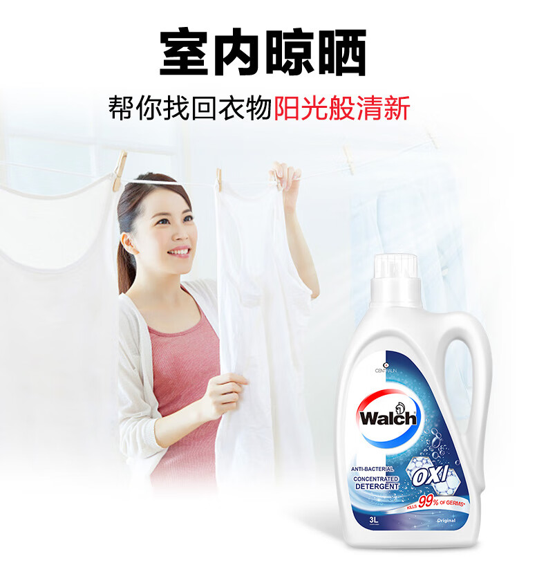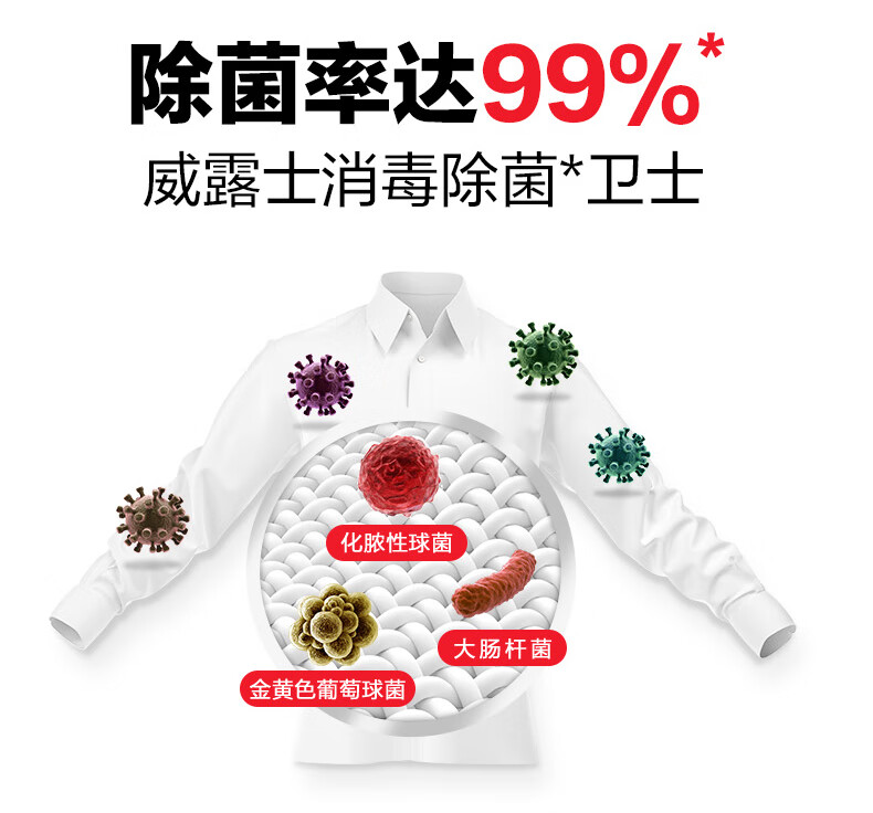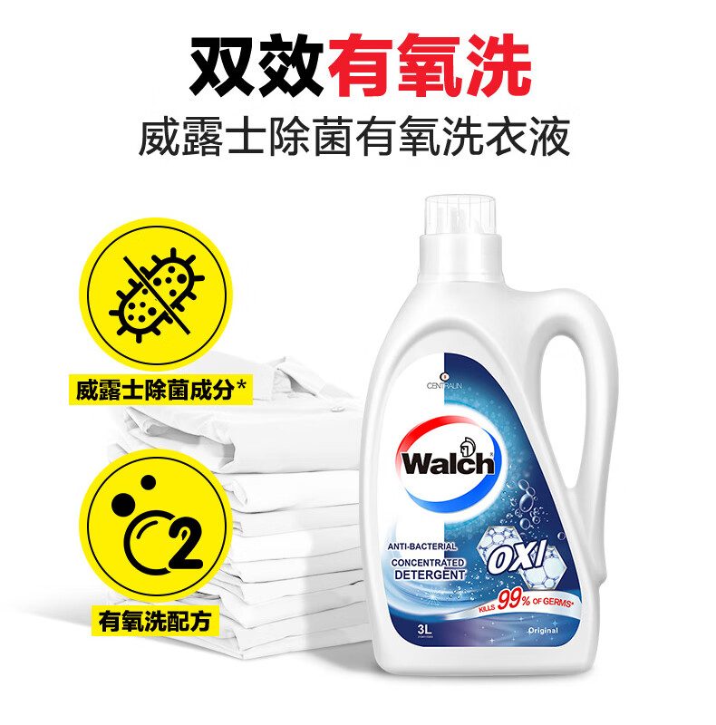 威露士除菌有氧洗衣液家用机洗 双效配方衣物除螨去污去渍 除菌率99.9% 瓶装3L*2