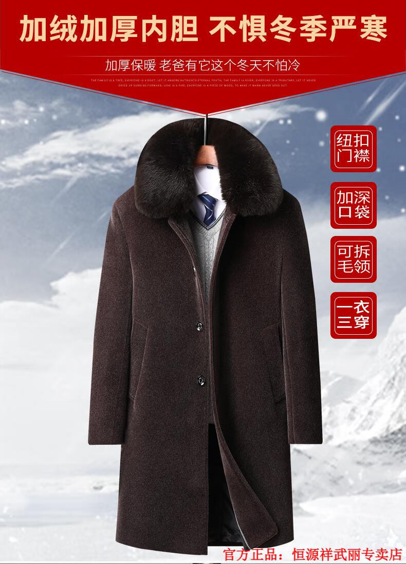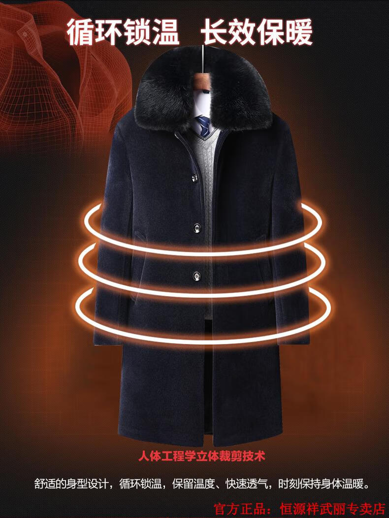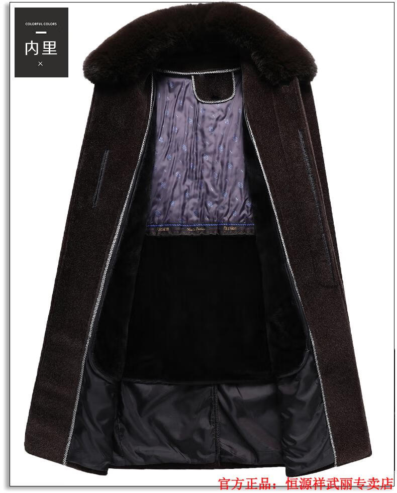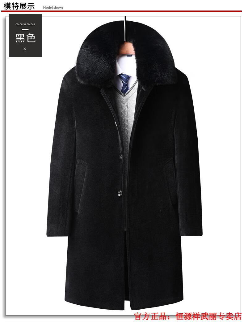 Hengyuanxiang autumn and winter middle-aged and elderly plus velvet mid-length sheep marmoset coat men's grandpa wool woolen coat dad jacket black (medium length) 175 (suitable for 100120Jin Jin equals 0.5 kg)