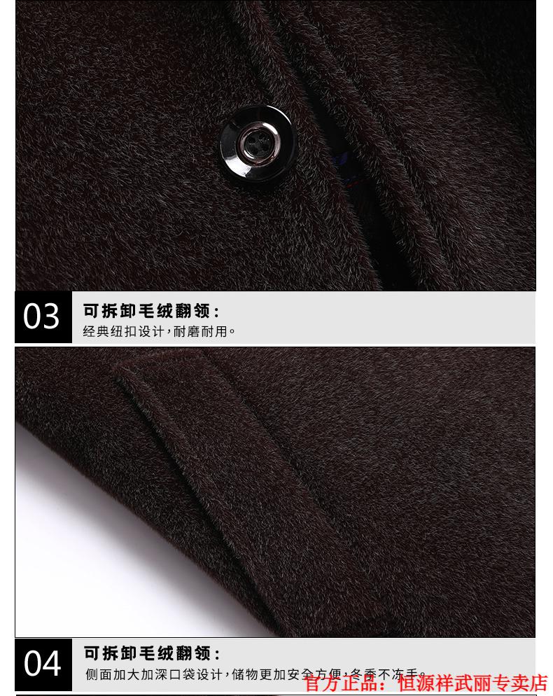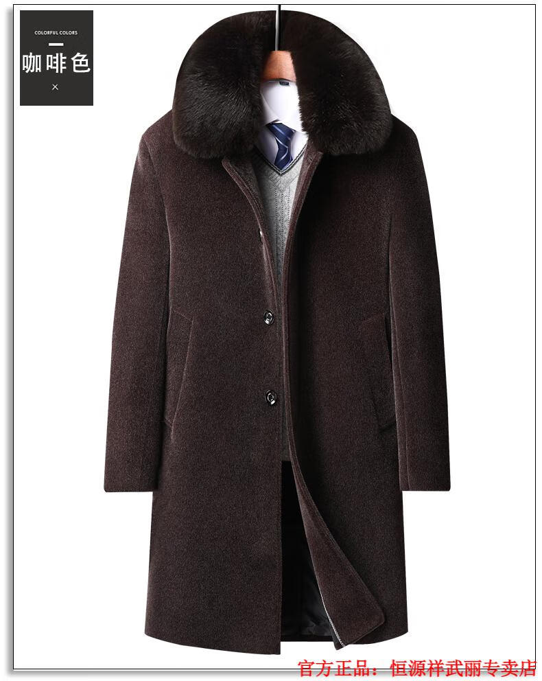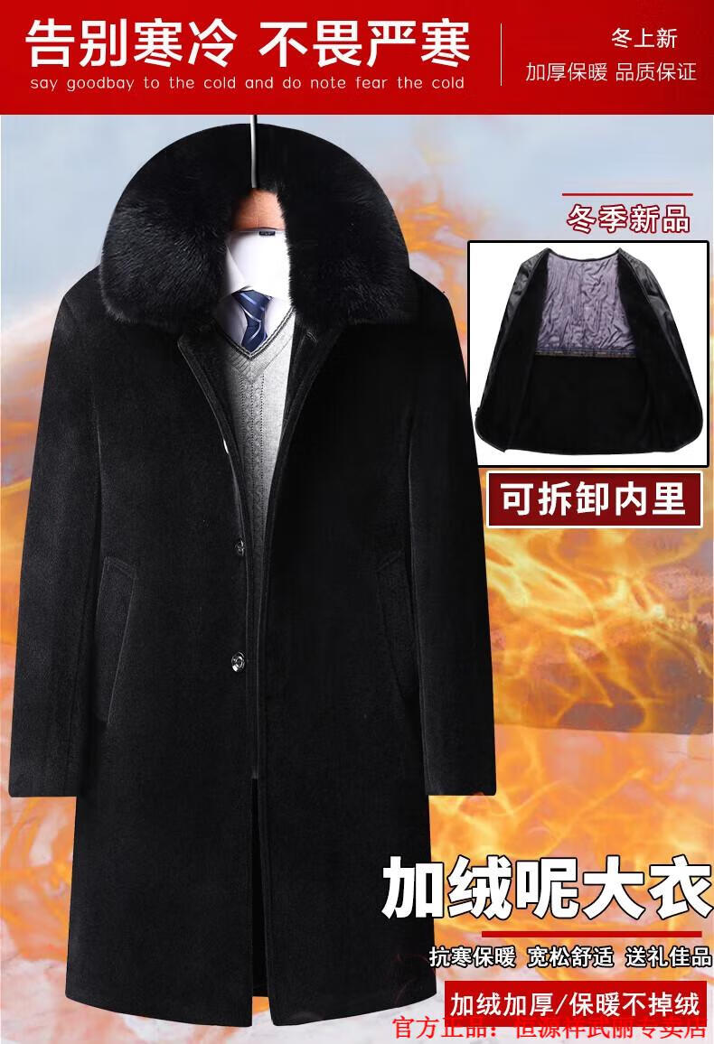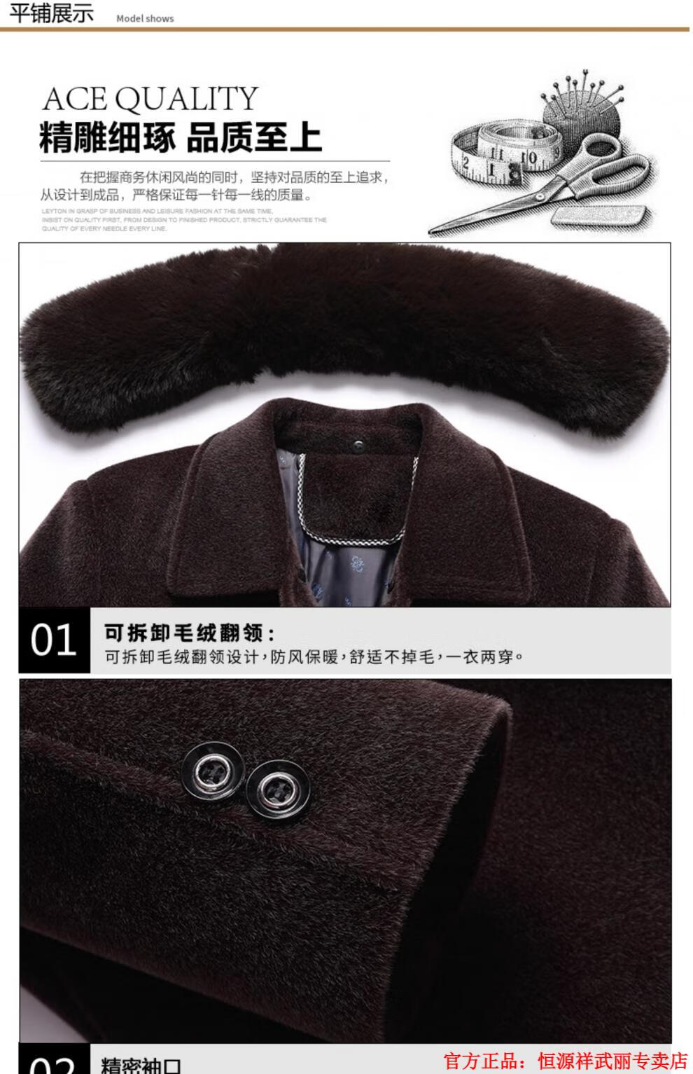 Hengyuanxiang autumn and winter middle-aged and elderly plus velvet mid-length sheep marmoset coat men's grandpa wool woolen coat dad jacket black (medium length) 175 (suitable for 100120Jin Jin equals 0.5 kg)