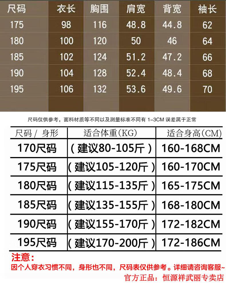 China (cm) 165 / 88-90 170 / 96-98 175 / 108-110 180 / 118-122 185 / 126-130