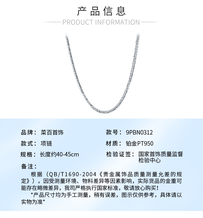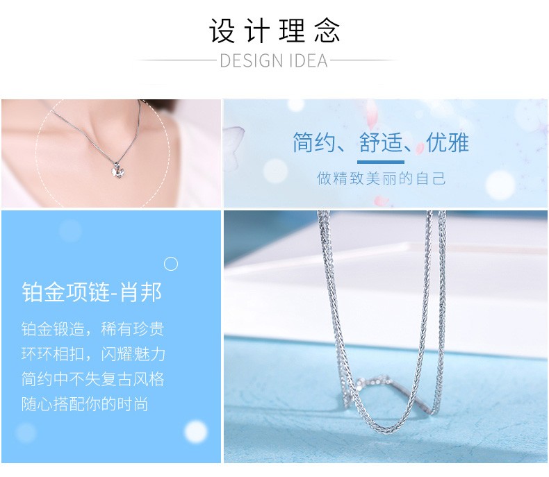 Caibai Jewelry Platinum Necklace Pt950 Fashion Women's Chopard Beauty Necklace Price BJ Platinum Necklace About 3.15g About 40cm
