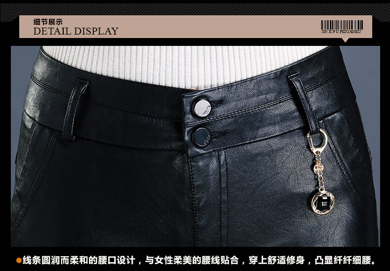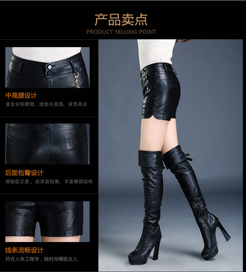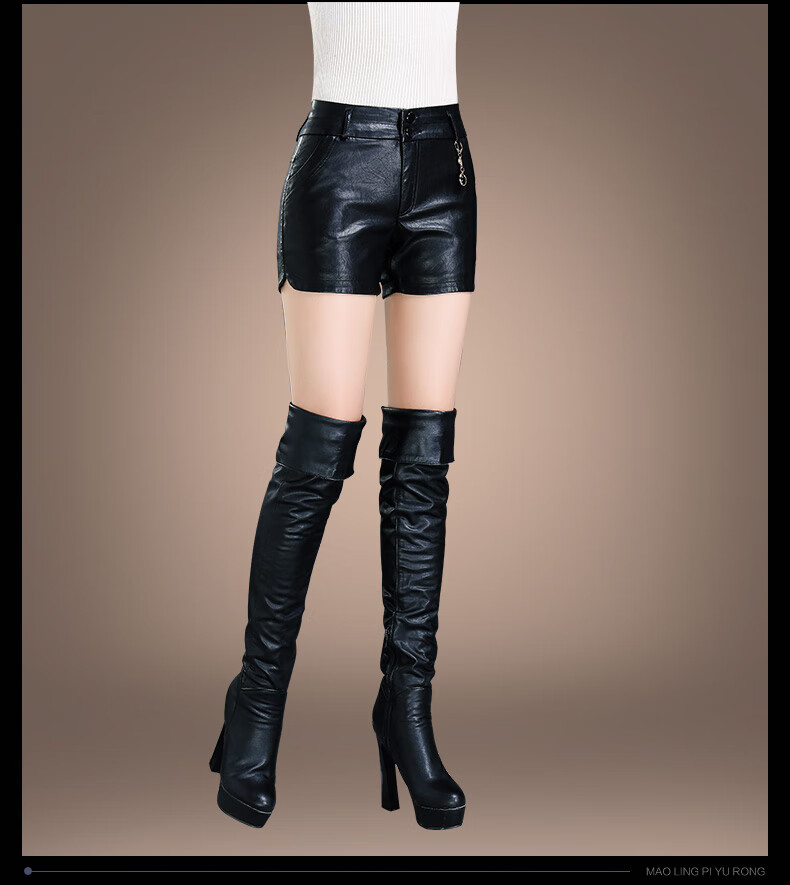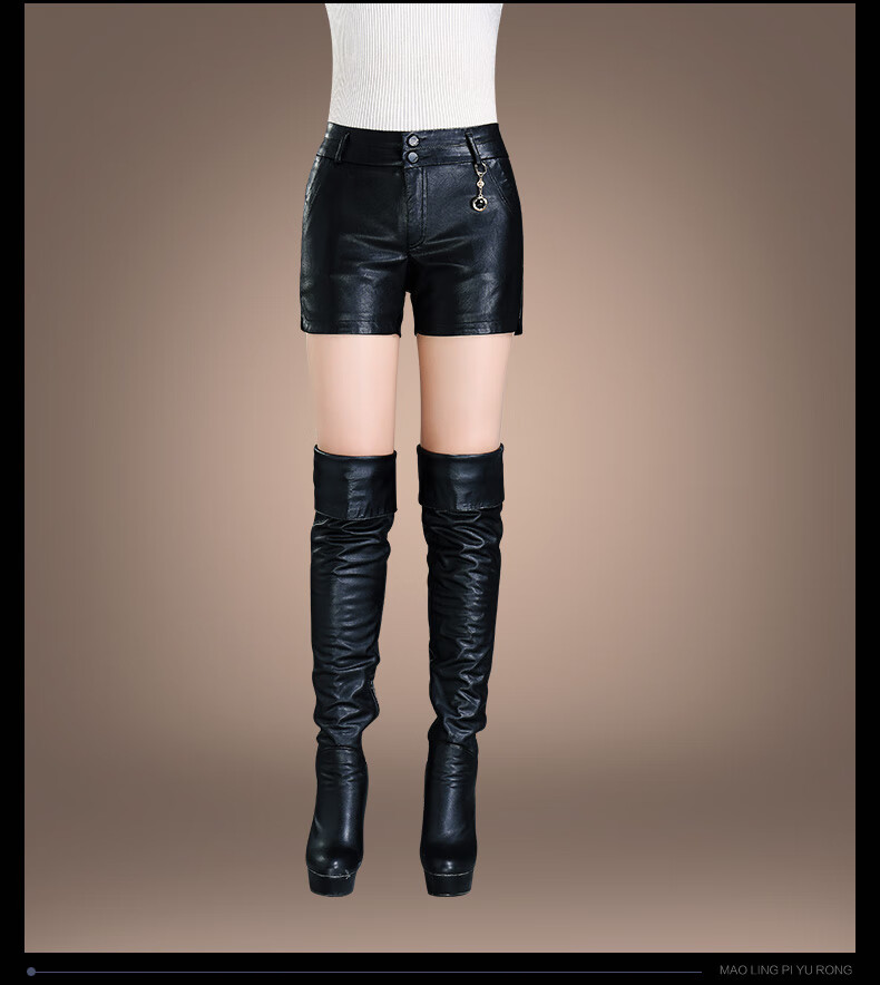 Pierre Cardin leather shorts for women spring new 2024 bottoming PU leather pants high waist slim fit loose slim autumn and winter outer boots black 31/2XL