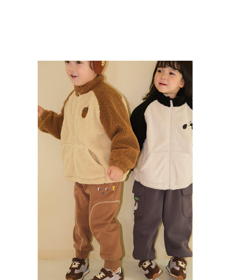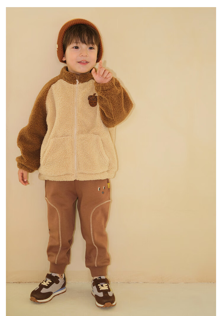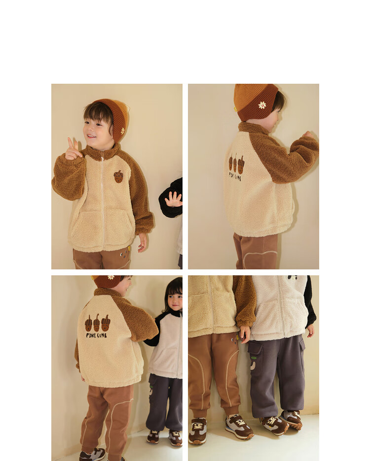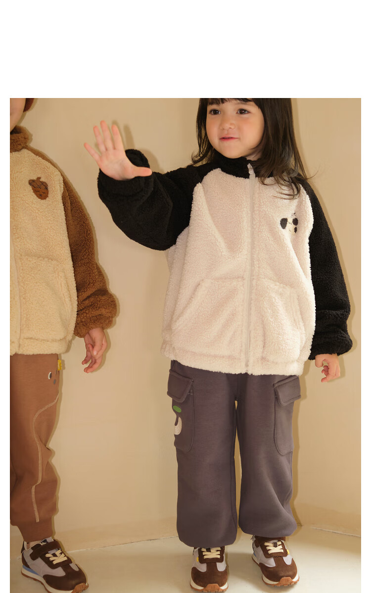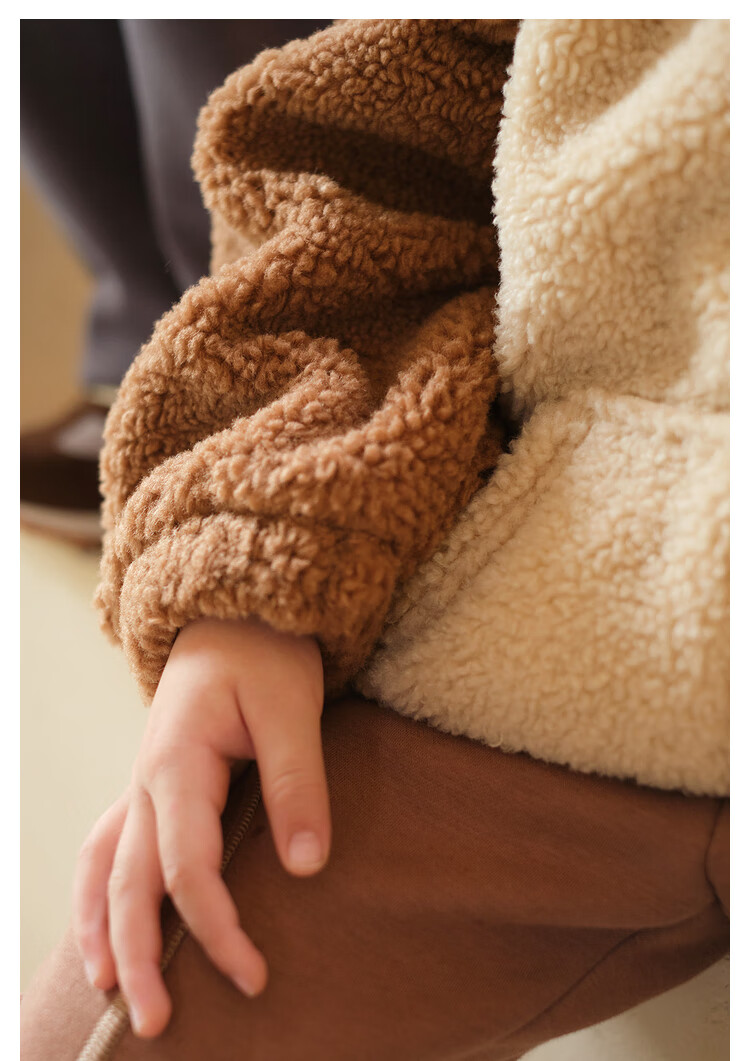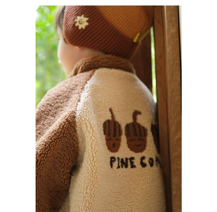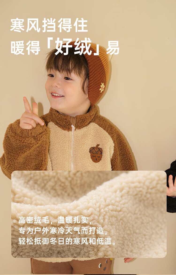 Papa crawling winter children's coat raglan sleeves for boys and girls plus velvet warm stand-up collar top, fashionable and cute, coffee brown 90 cm