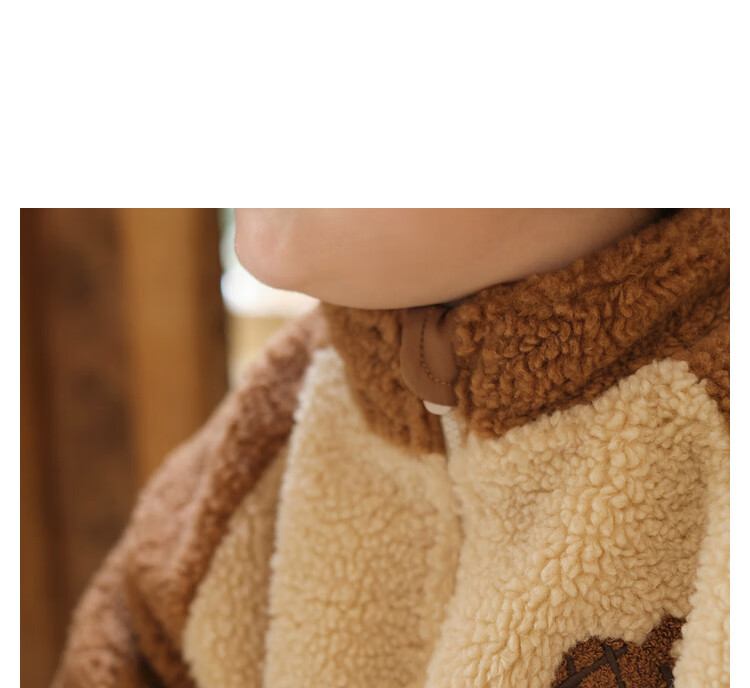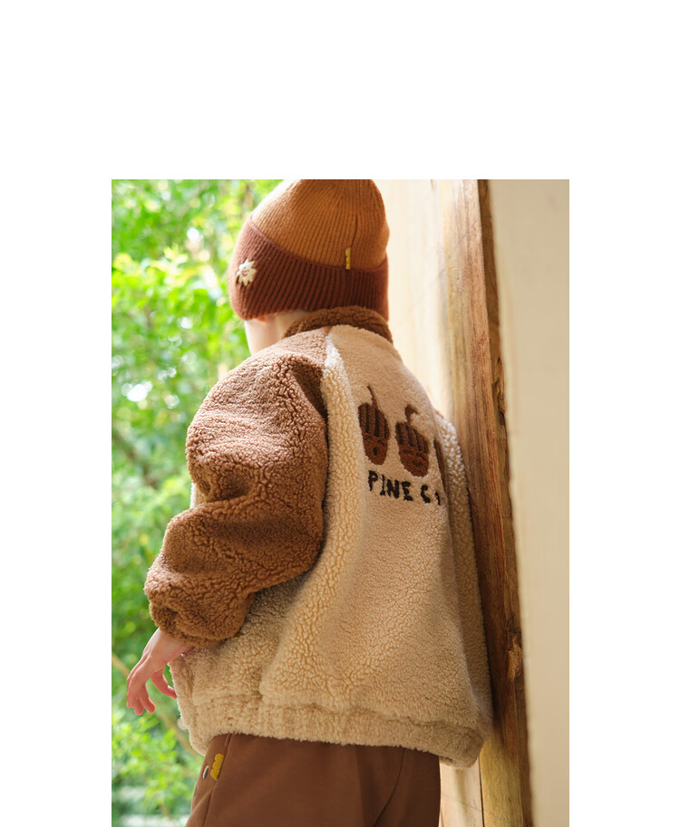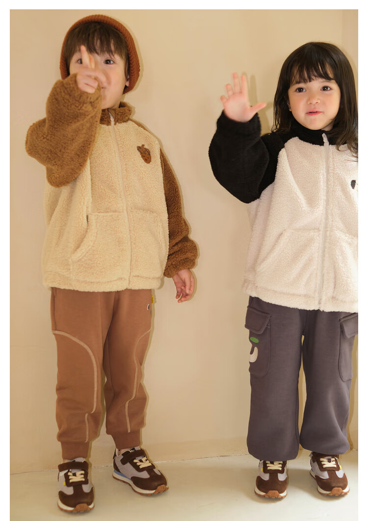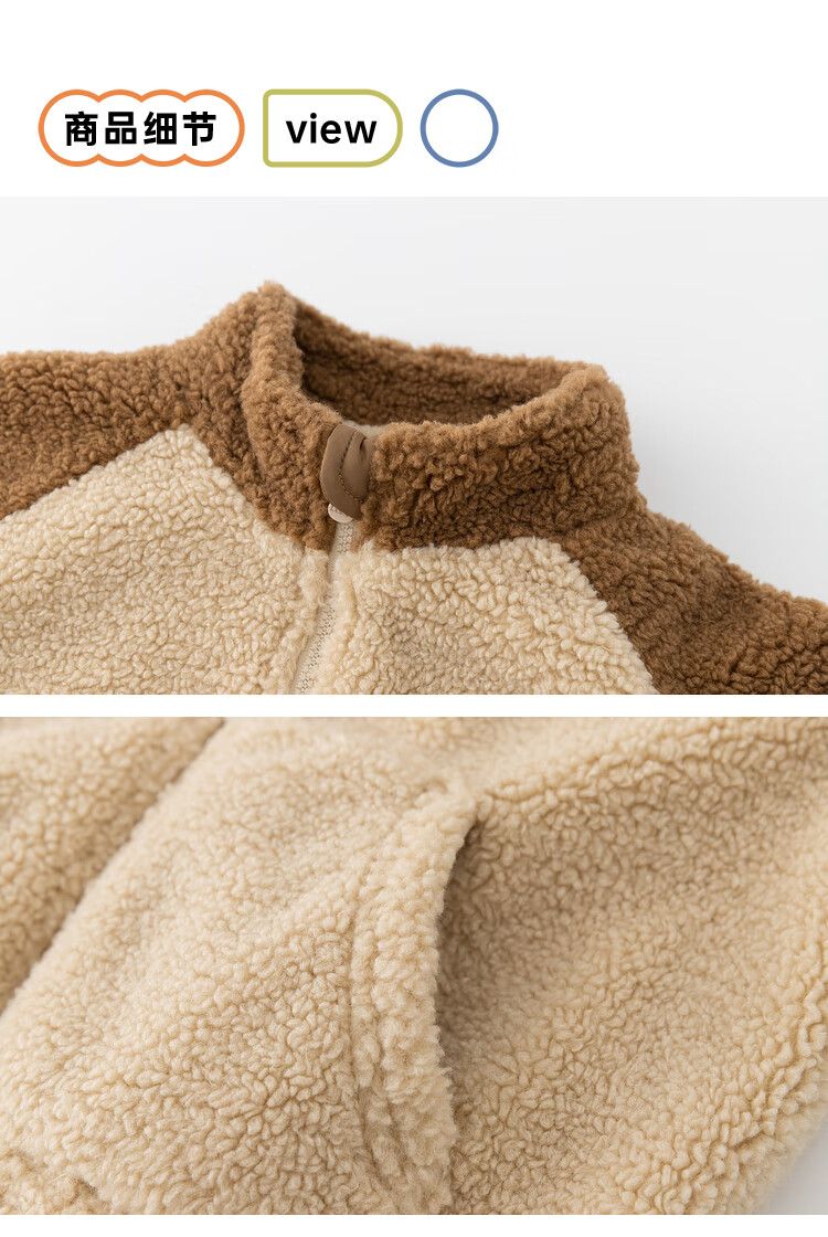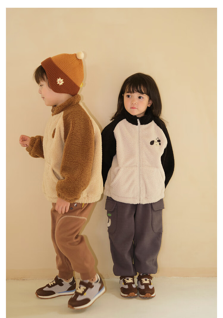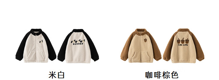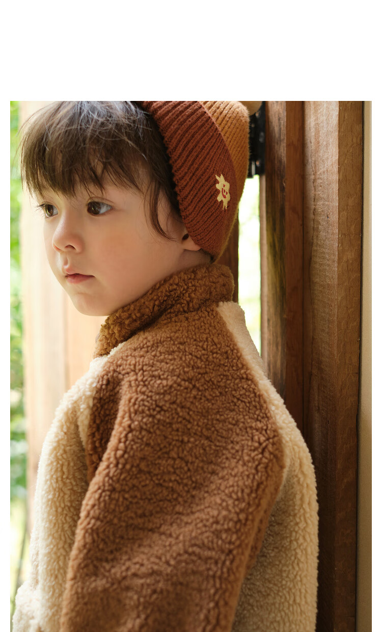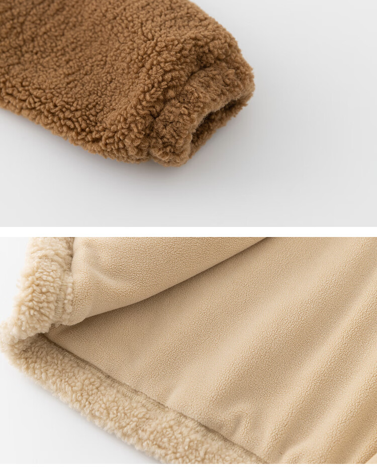 Papa crawling winter children's coat raglan sleeves for boys and girls plus velvet warm stand-up collar top, fashionable and cute, coffee brown 90 cm