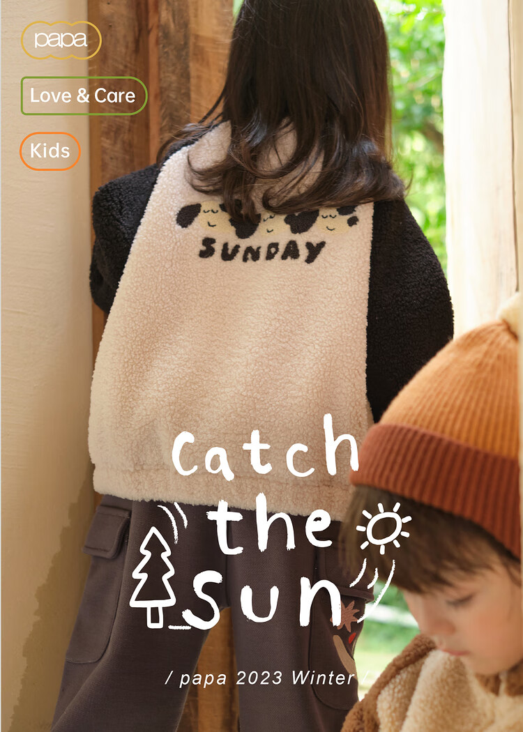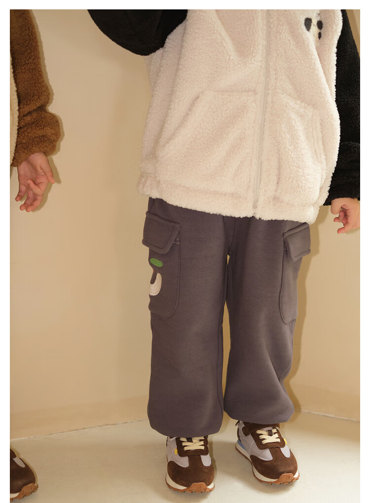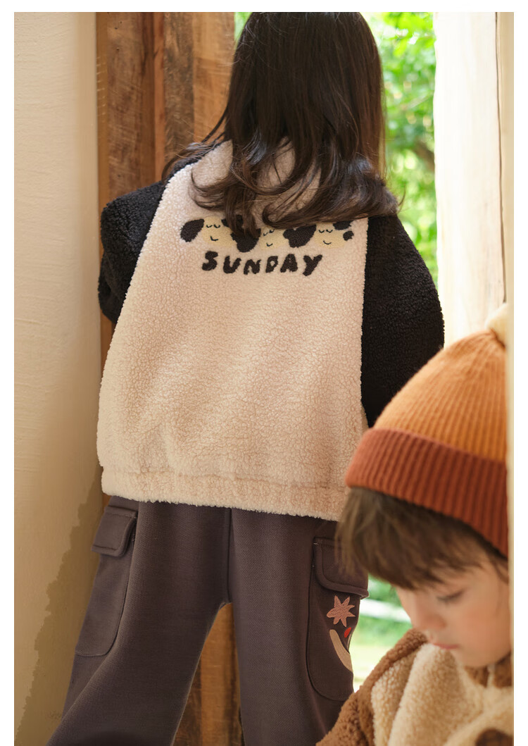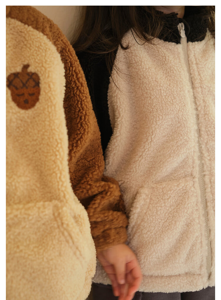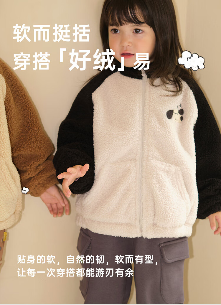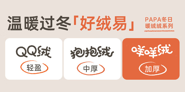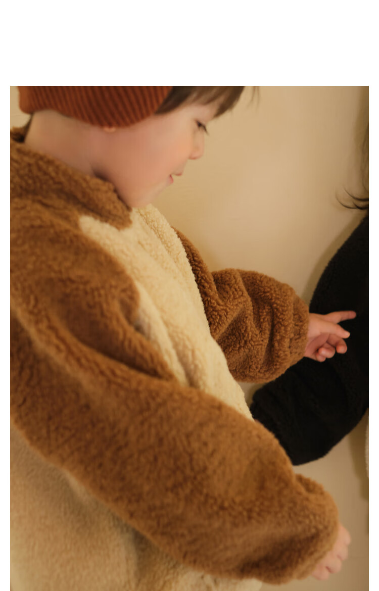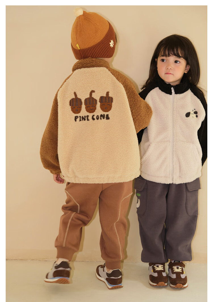 Papa crawling winter children's coat raglan sleeves for boys and girls plus velvet warm stand-up collar top, fashionable and cute, coffee brown 90 cm
