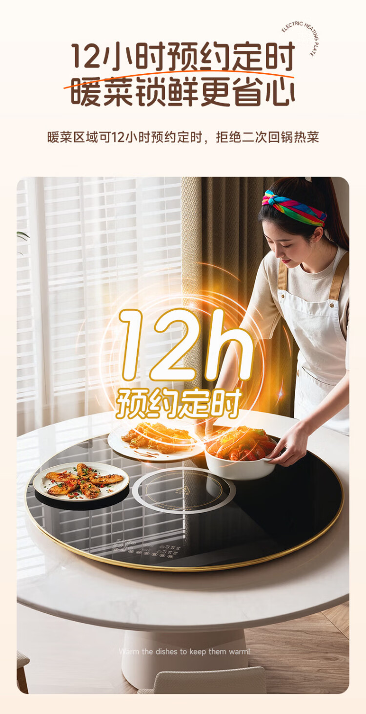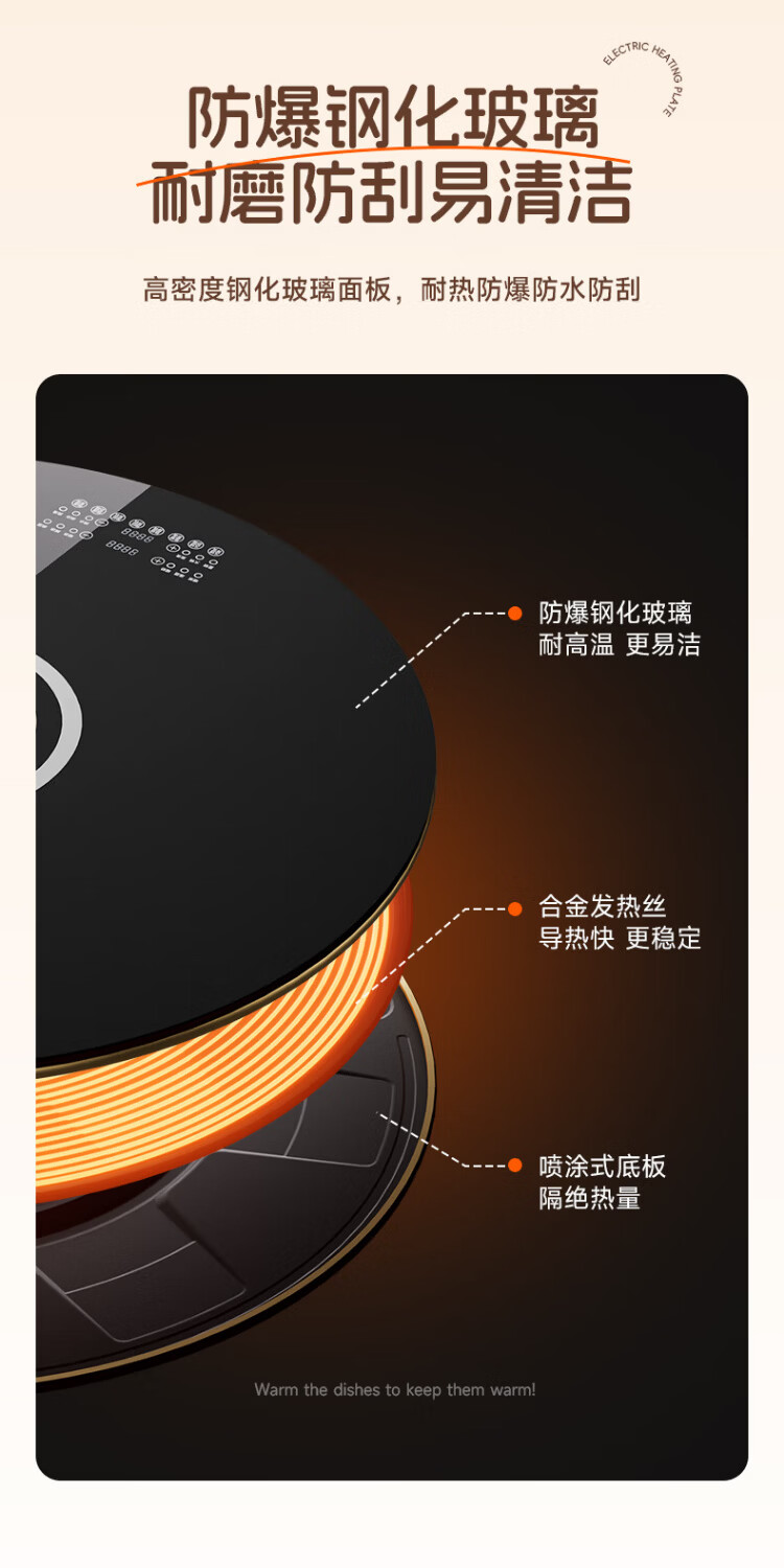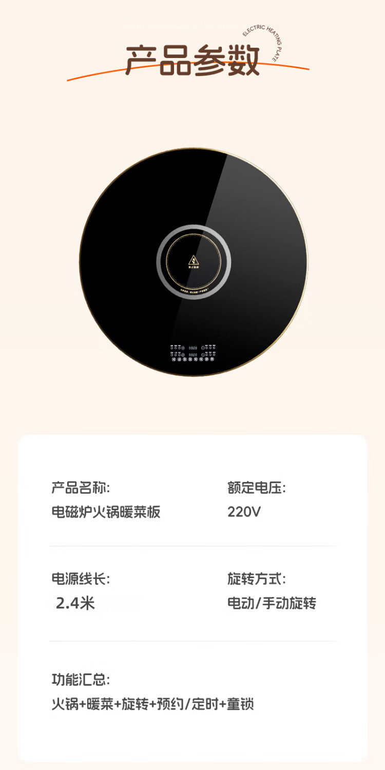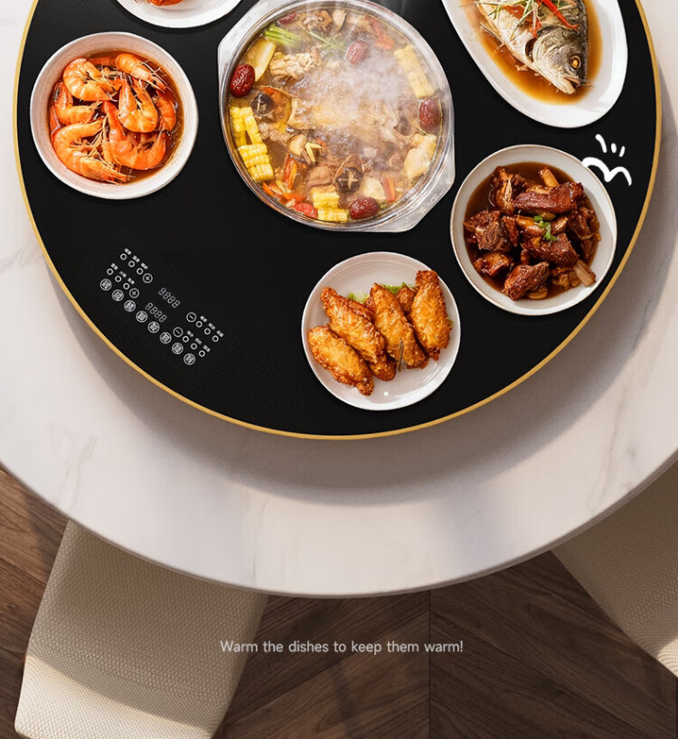 Dixianghaotaitai warm chopping board round hot chopping board insulation board household heating turntable meal heating plate table rotation heating fermentation thawing multifunctional artifact large capacity disc hot pot model 80CM Yahei automatic rotation丨 induction cooker