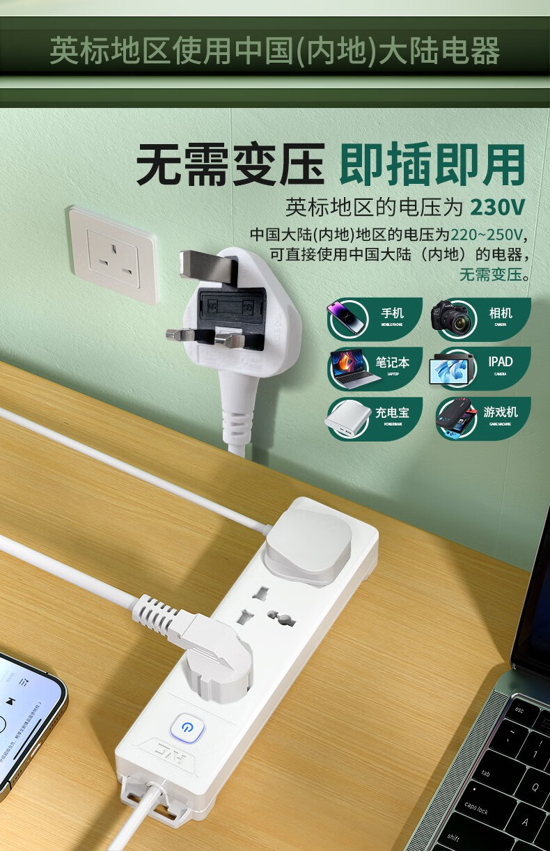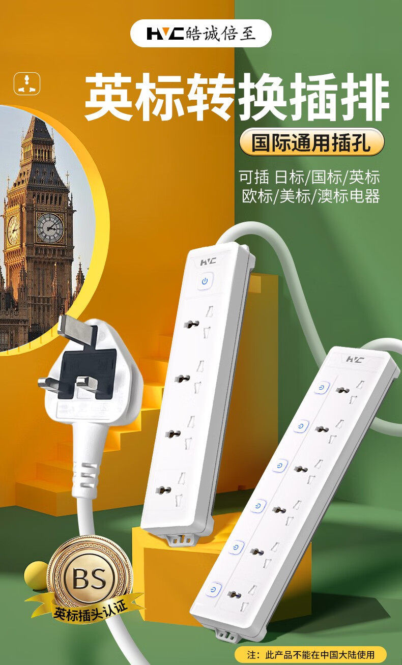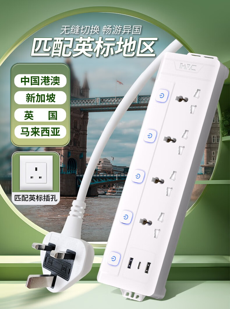 Haocheng times to British standard plug strip British standard plug Hong Kong version socket converter to the United Kingdom, Singapore, China, Hong Kong, international universal power adapter plug, divided into 4 sockets + 2u1c, ready for delivery on the same day, British standard plug
