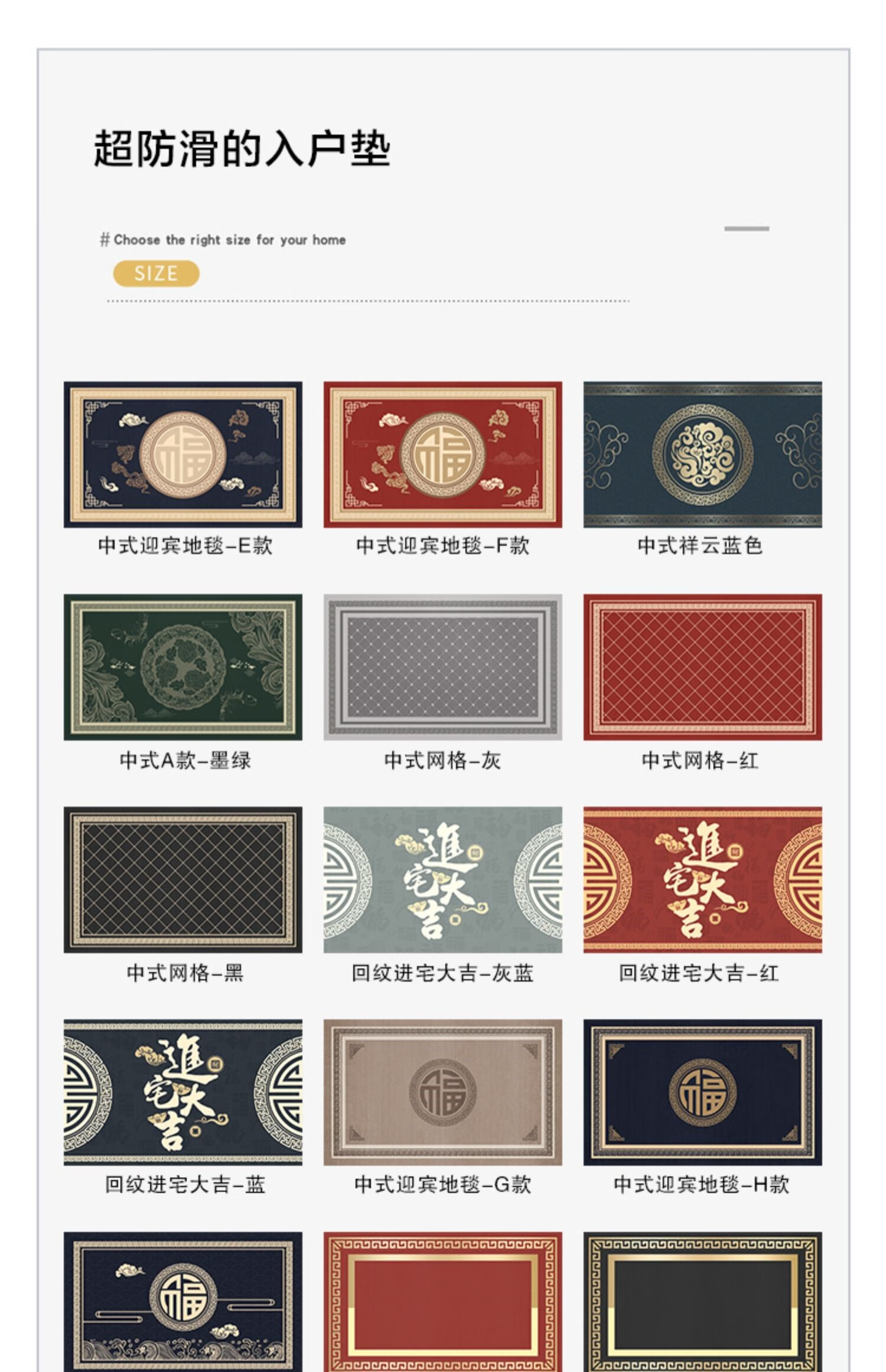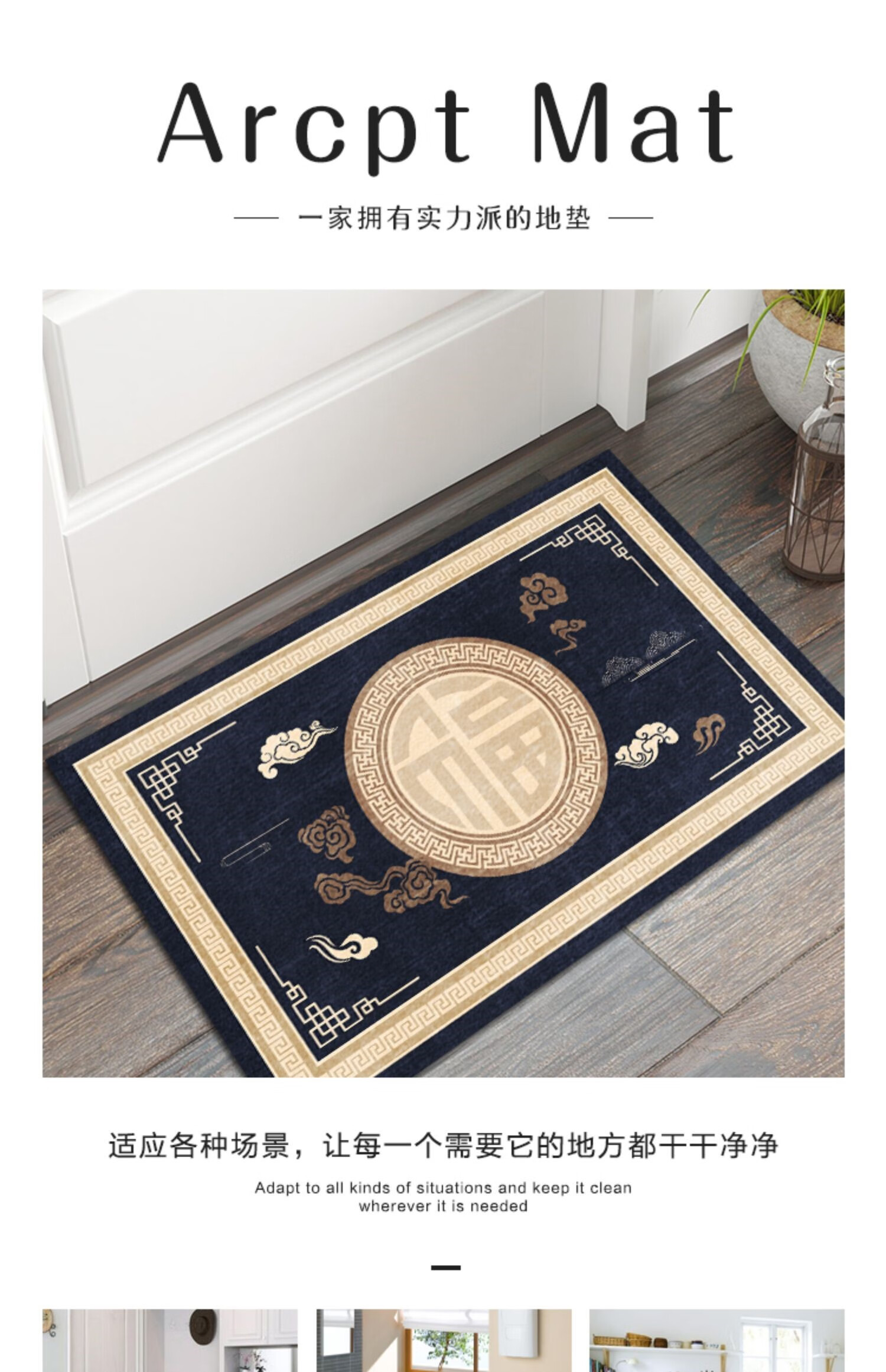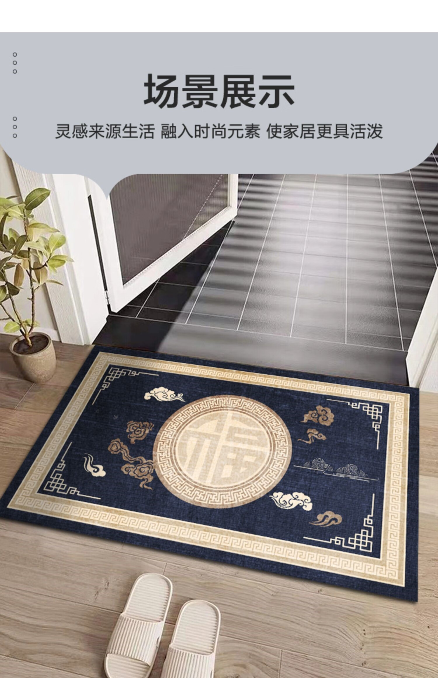 Hua Fei Hua Chinese style entrance door floor mat bathroom bathroom non-slip mat kitchen floor mat door entry home foot mat Chinese style A-dark green 100*160cm