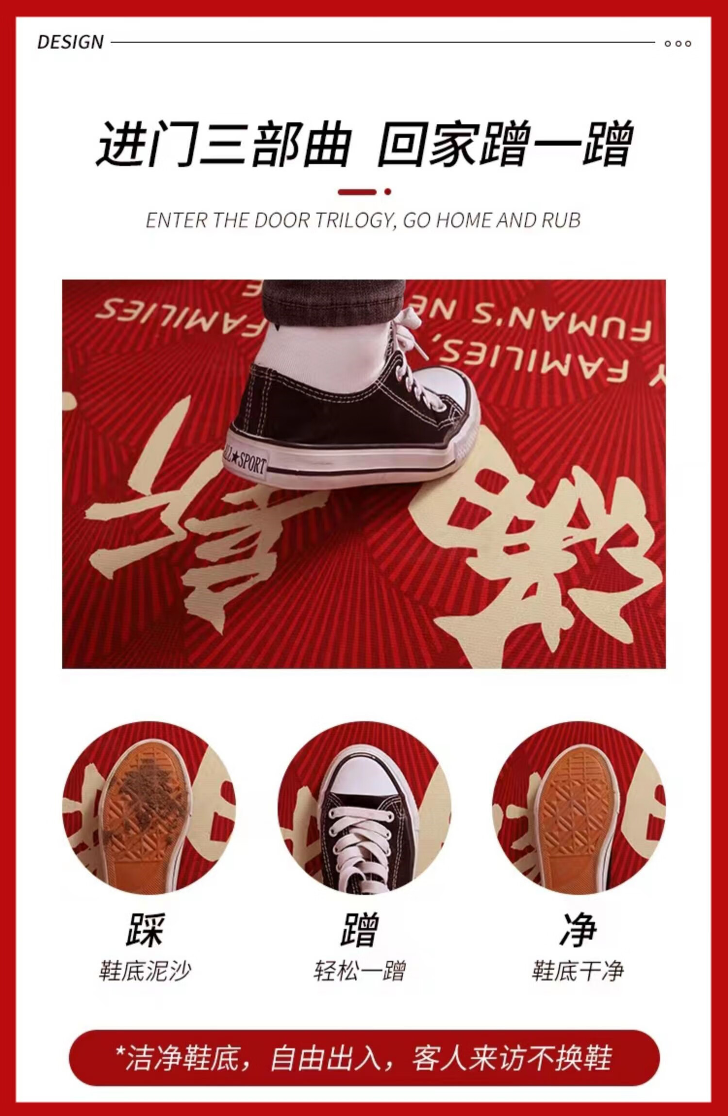 Hua Feihua entrance door floor mat red festive entrance door non-slip and stain-resistant foot mat home entrance door mat can be cut Nuanju-S horizontal version 140cm180cm