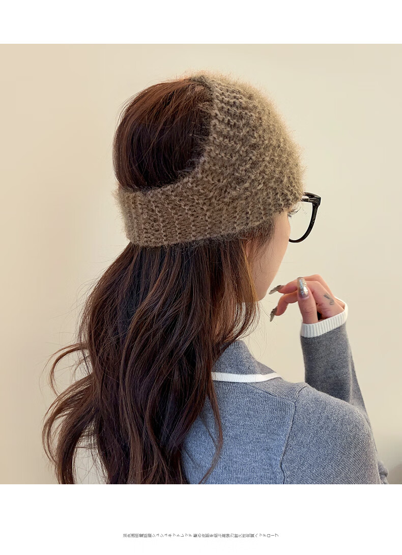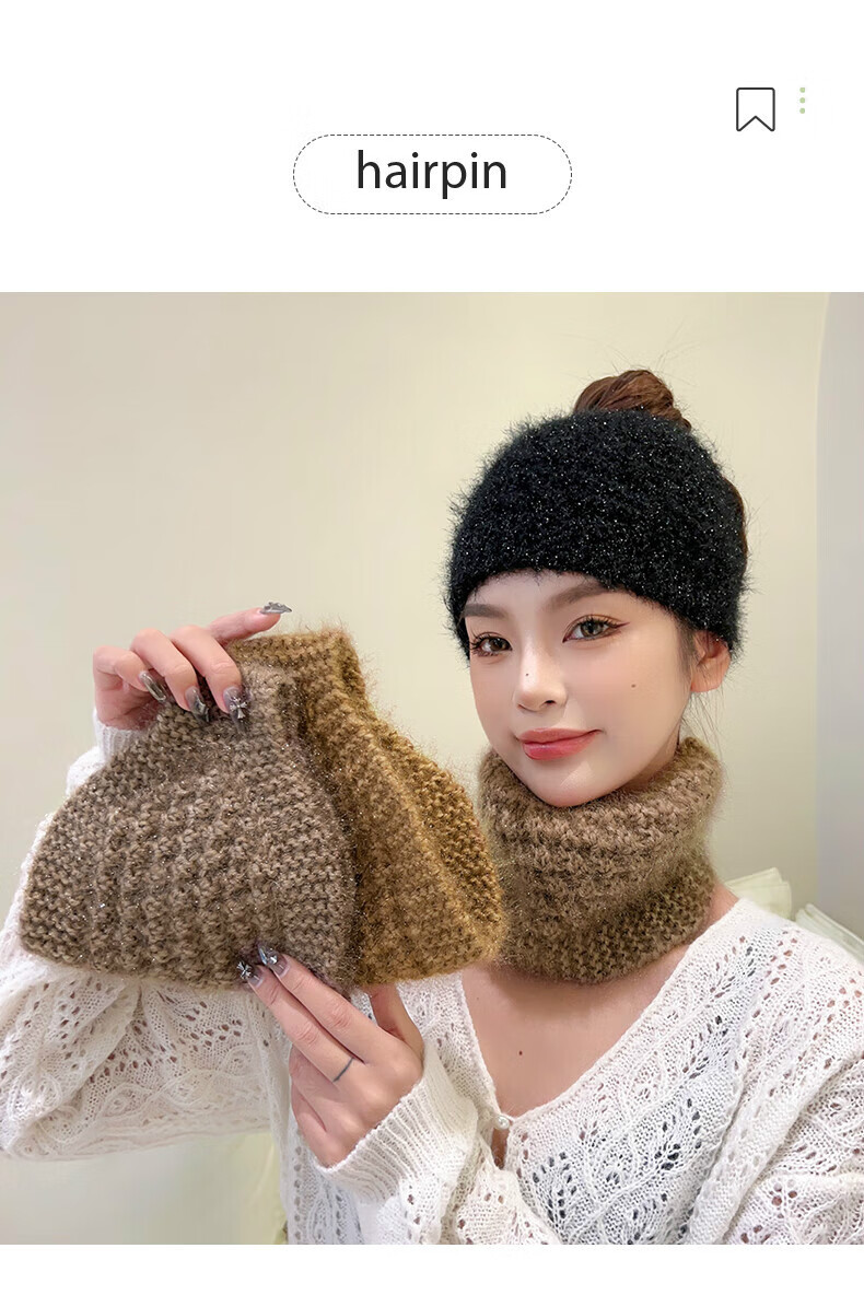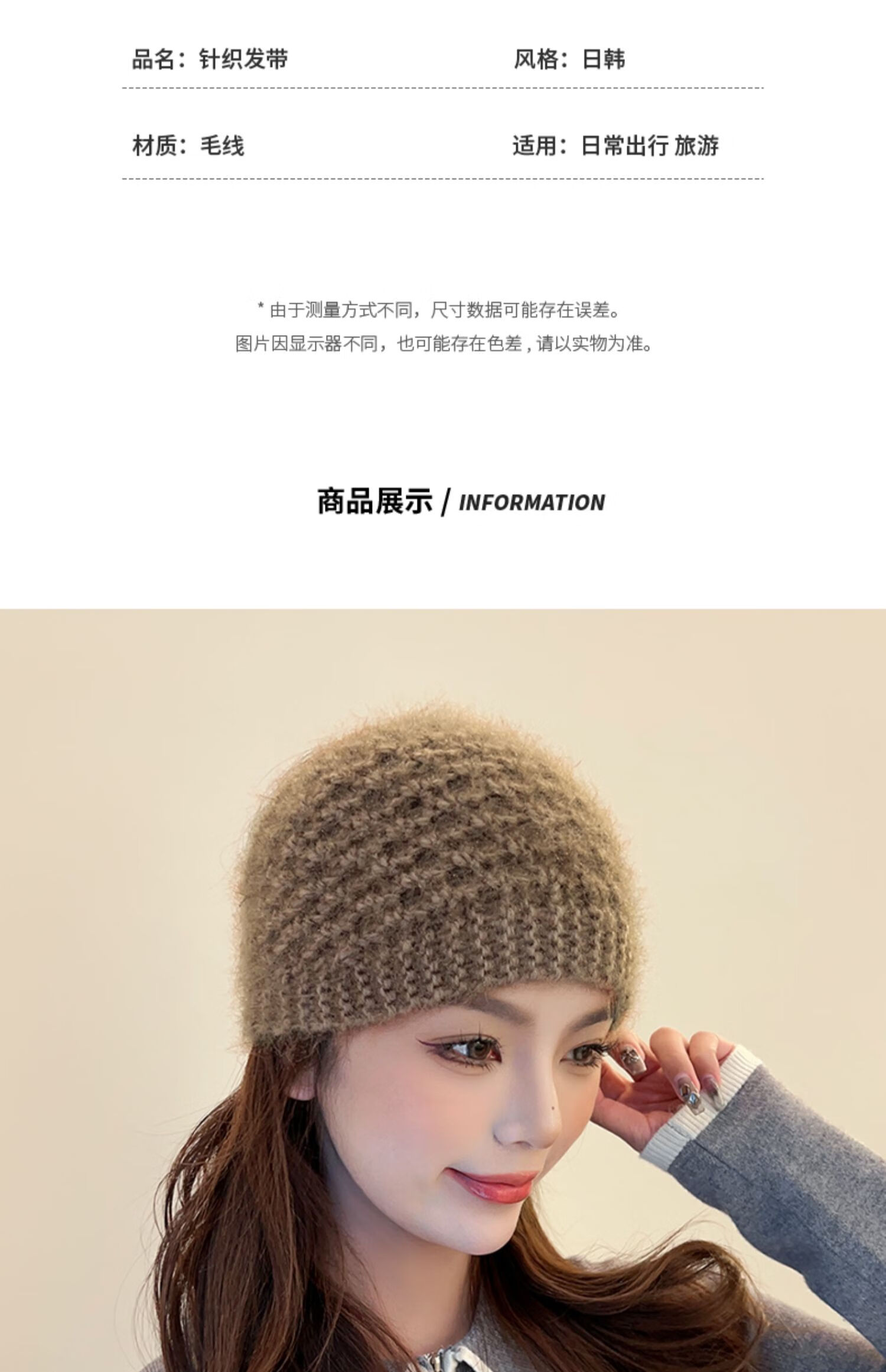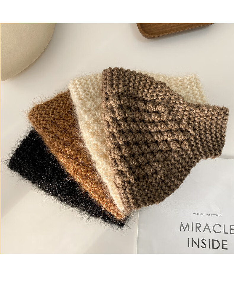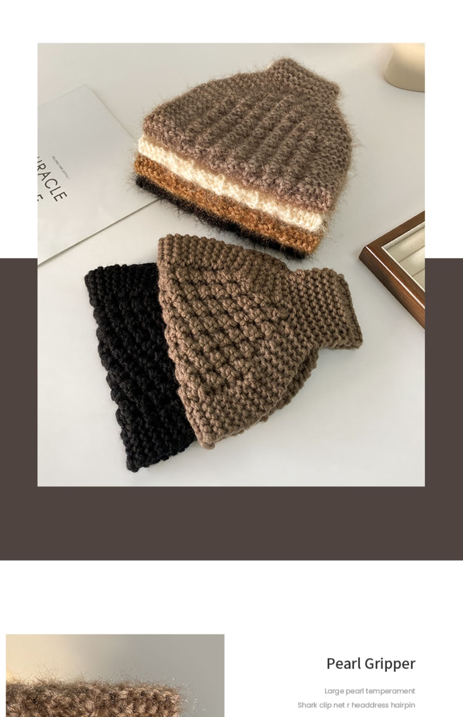 Mengjunchen confinement headband, postpartum headband, winter warm windproof headband, knitted wool headband, wide-brimmed headband for women to cover white hair, khaki pineapple style headband, versatile style