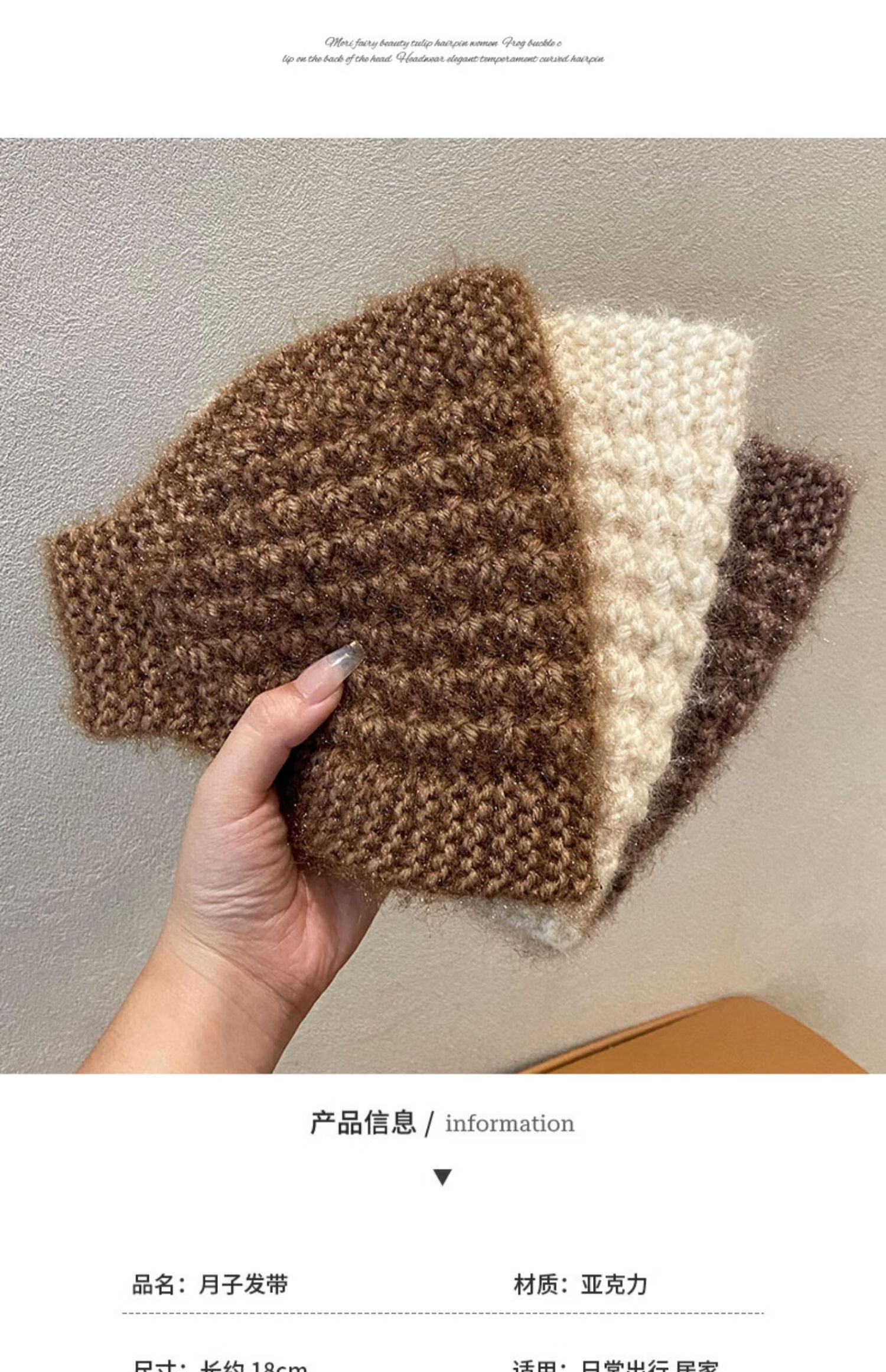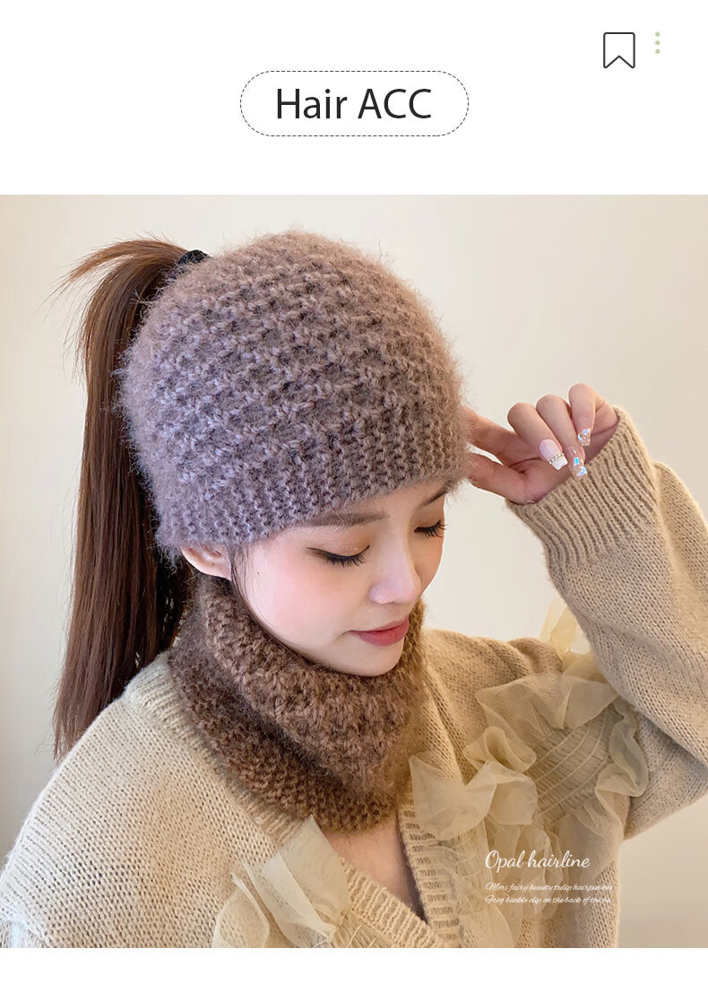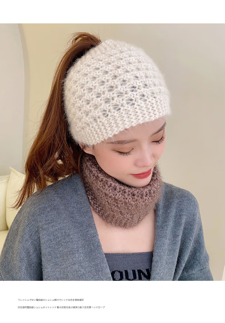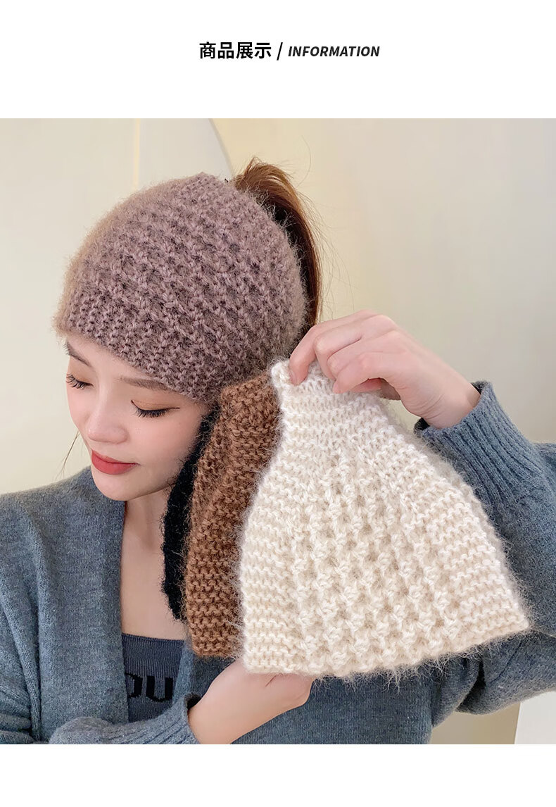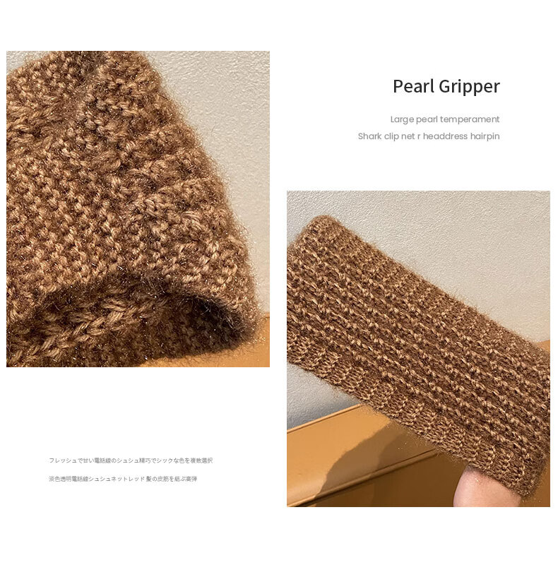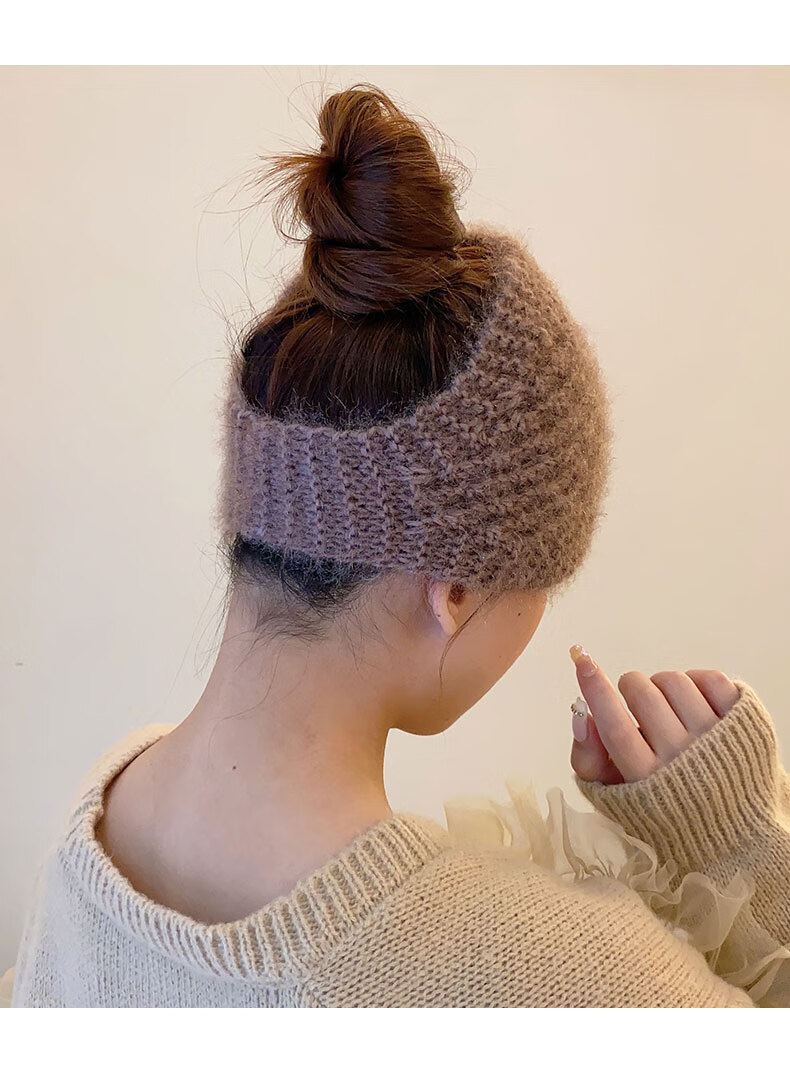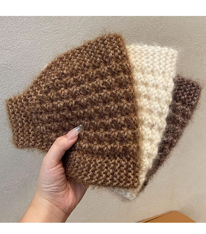 Rongxia gray hair headband cover knitted headband women's wide-brimmed headband winter scarf scarf headband plush knitted khaki