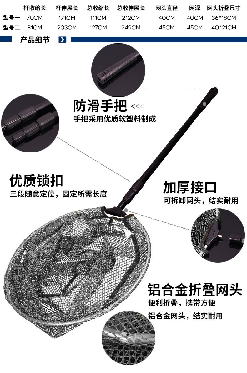 Guangwei (GW) aluminum alloy copy net shrinkable super hard folding competitive fishing gear fishing supplies 2.5M (net head color shipped randomly)