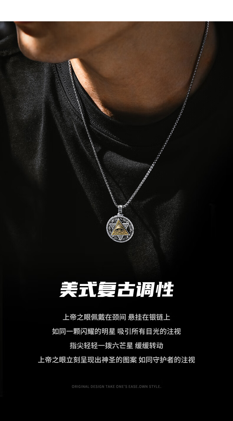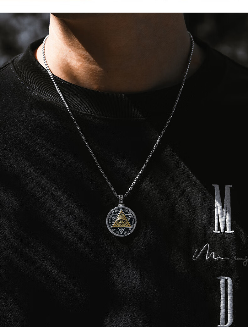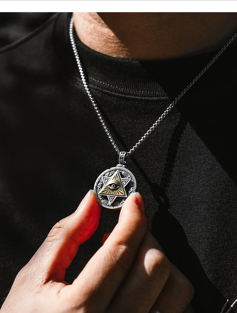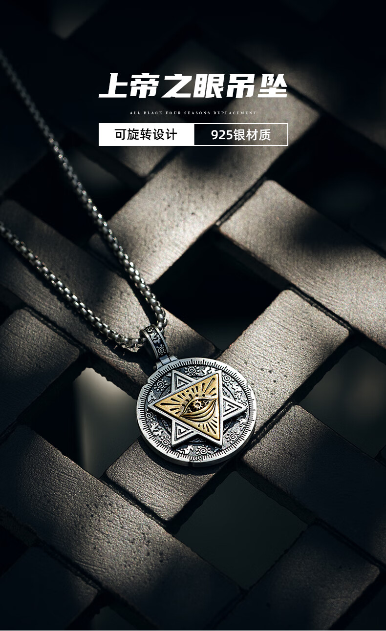 Mingyang Decorative Sea 925 Silver Horus Eye of God Necklace Men's Pendant Trendy Versatile Retro Original Rotatable Accessory Silver Pendant + Steel Chain (60CM)