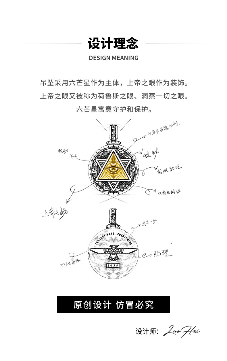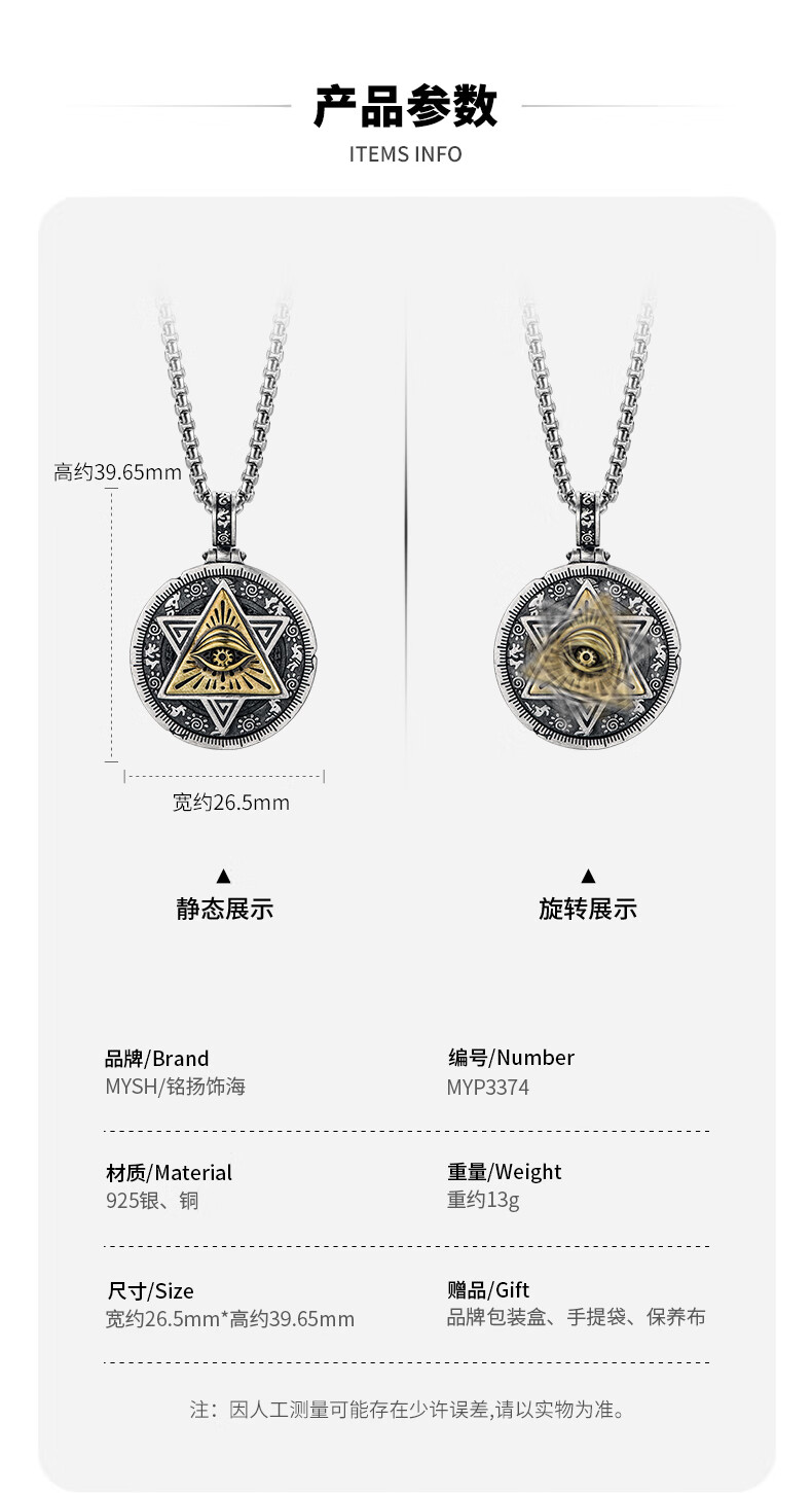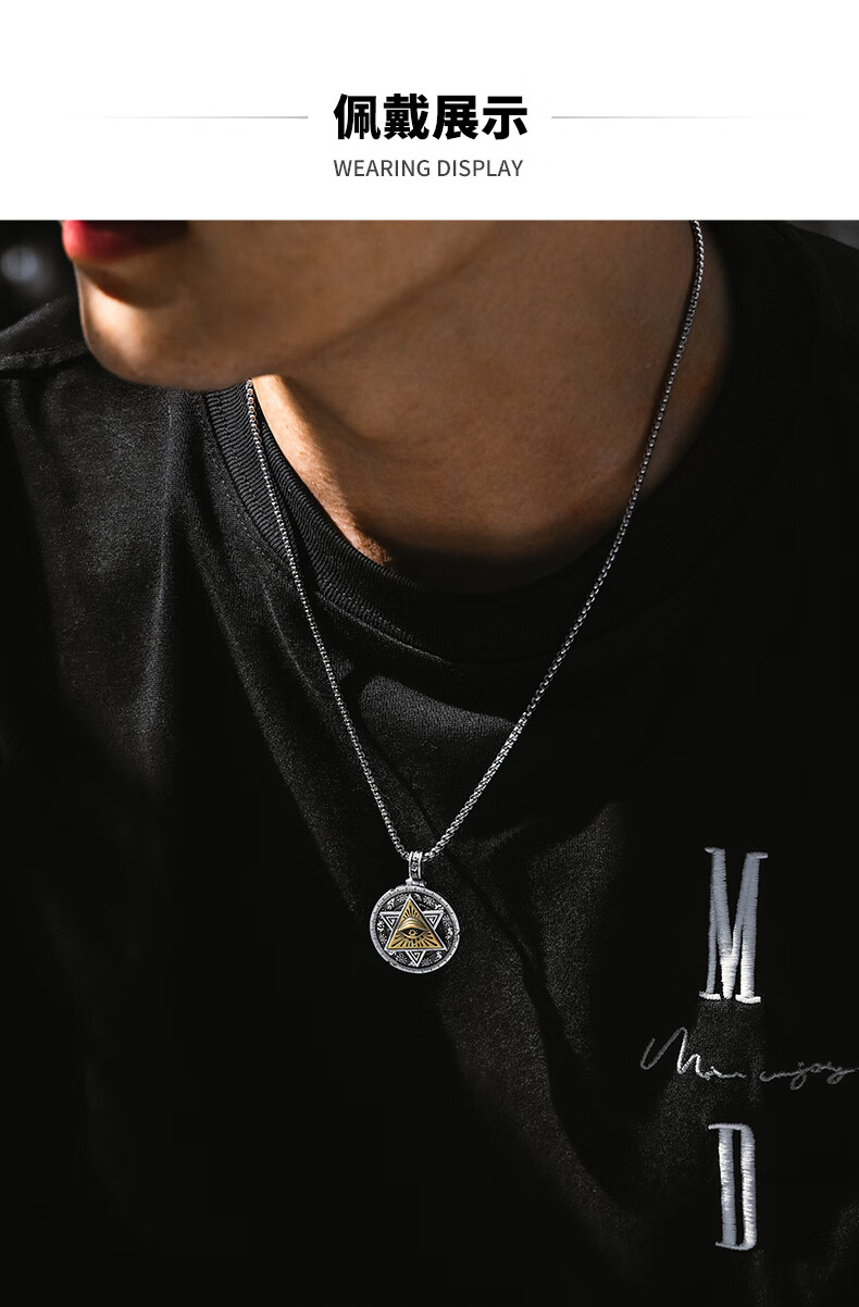 Mingyang Decorative Sea 925 Silver Horus Eye of God Necklace Men's Pendant Trendy Versatile Retro Original Rotatable Accessory Silver Pendant + Steel Chain (60CM)