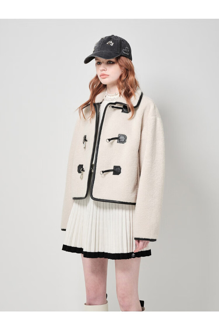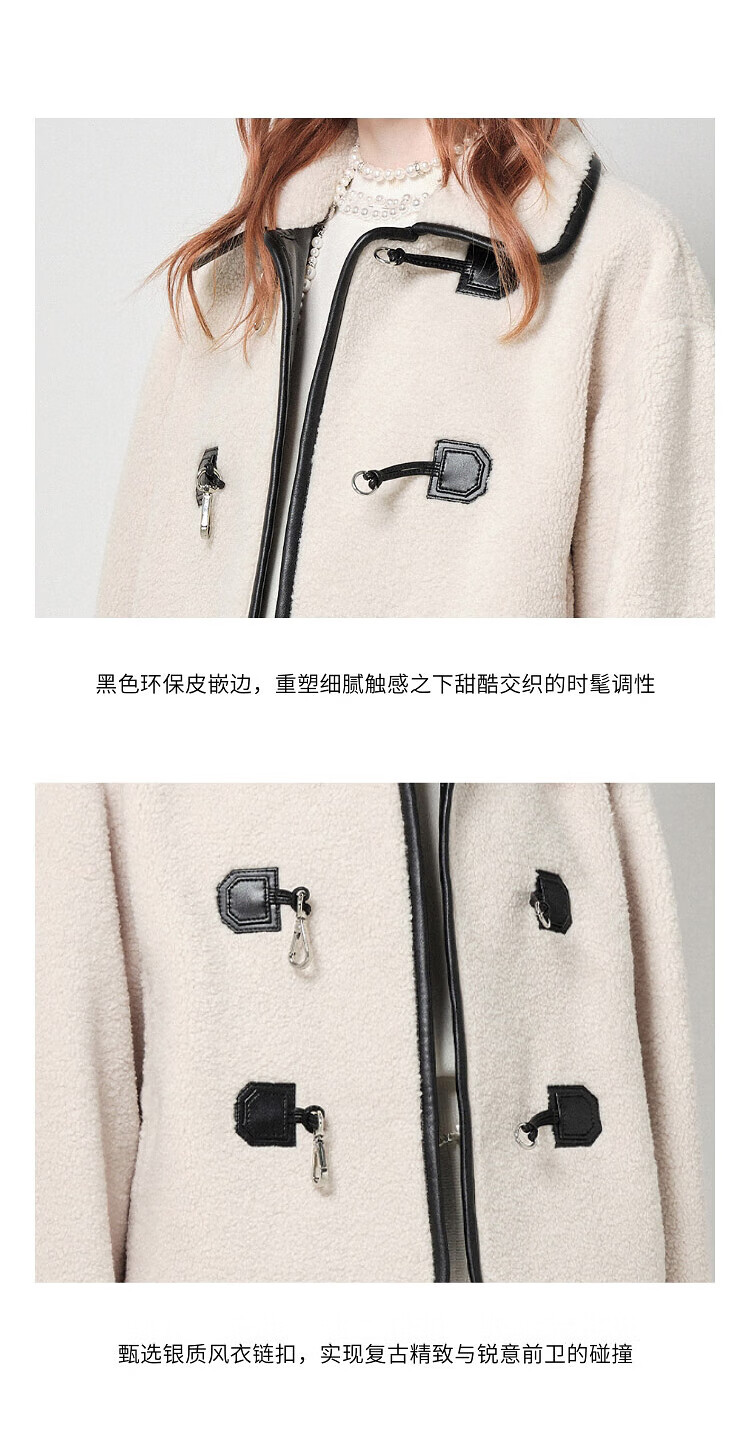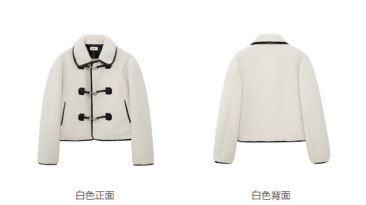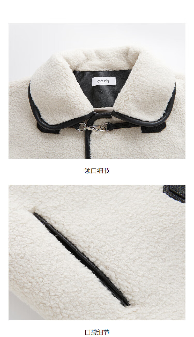 DZZIT short coat autumn and winter retro style silver windbreaker chain button for women white S