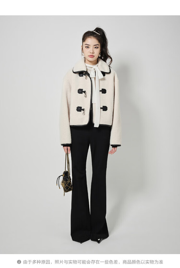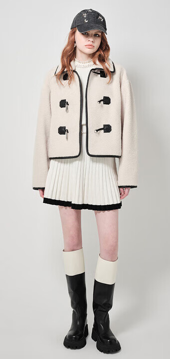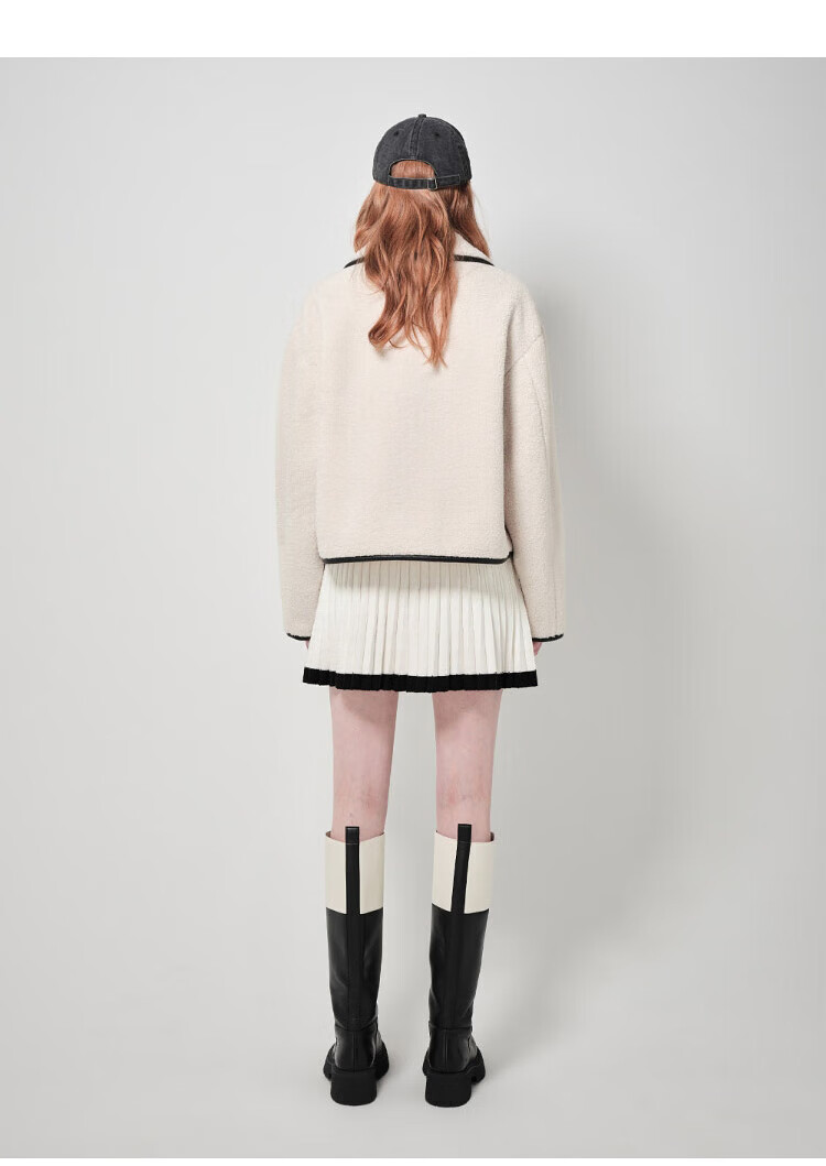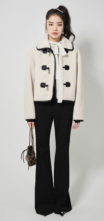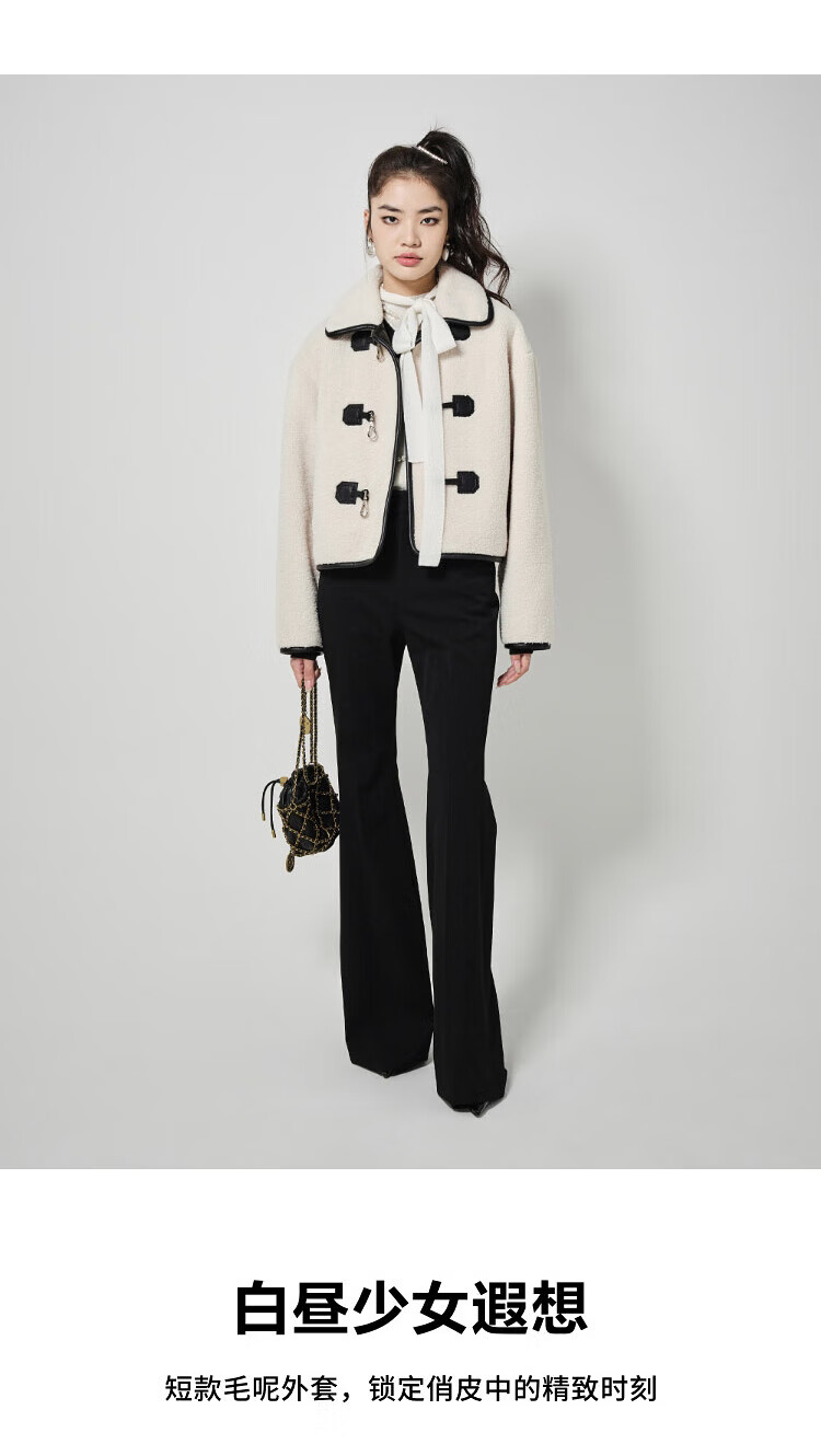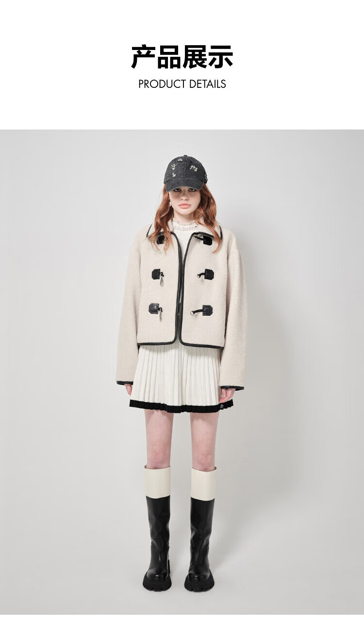 DZZIT short coat autumn and winter retro style silver windbreaker chain button for women white S