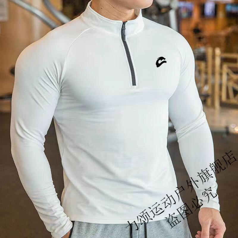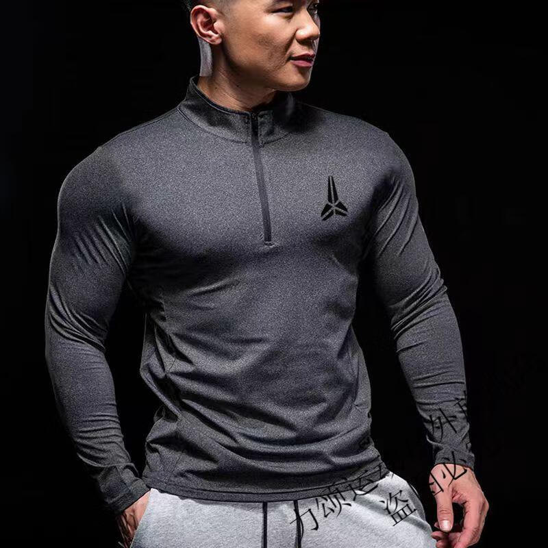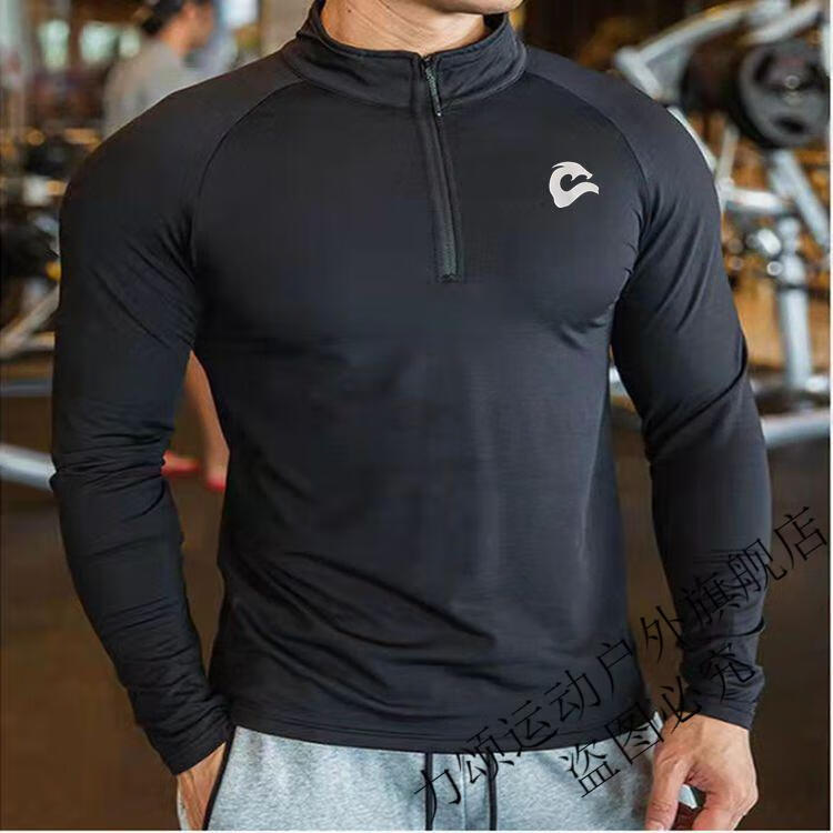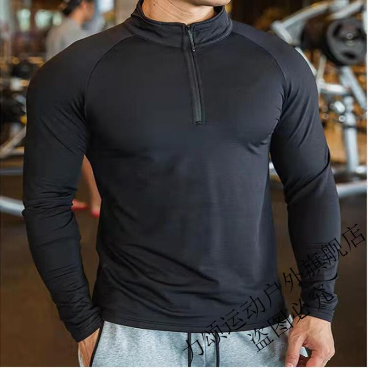 Chu Feng Sports Tights Men's Running Basketball Top Gym Quick-Drying Breathable Track and Field Competition High-Elastic Half-Zip Long Sleeve Black AD Zipper Long Sleeve M