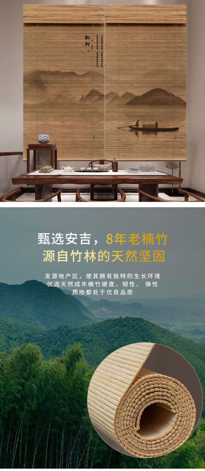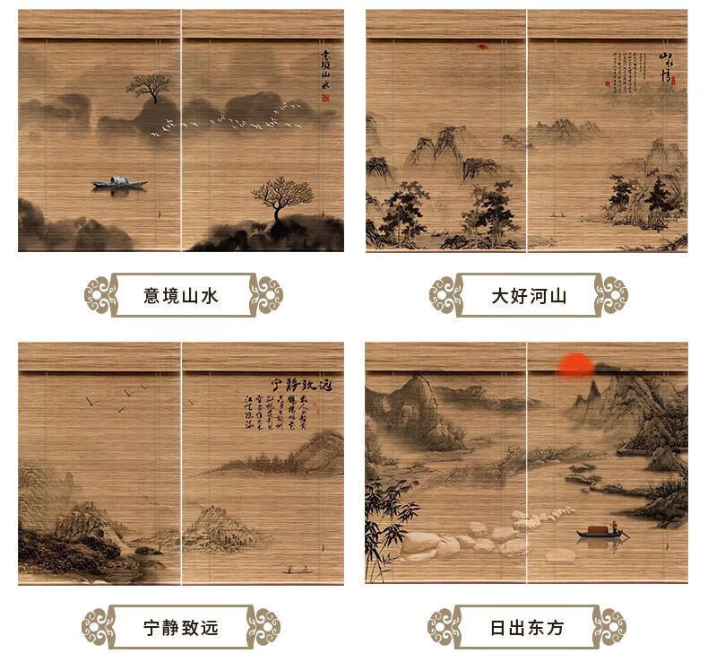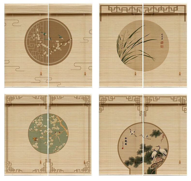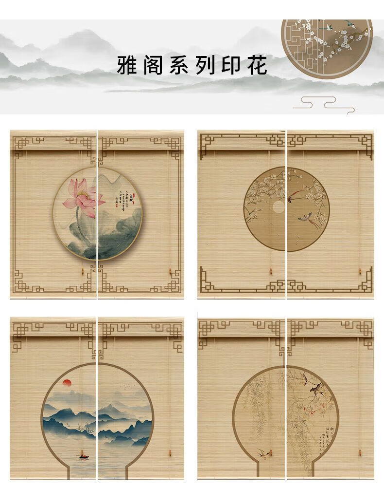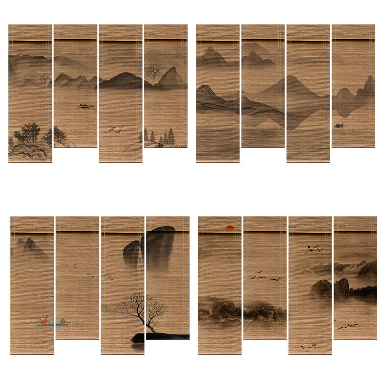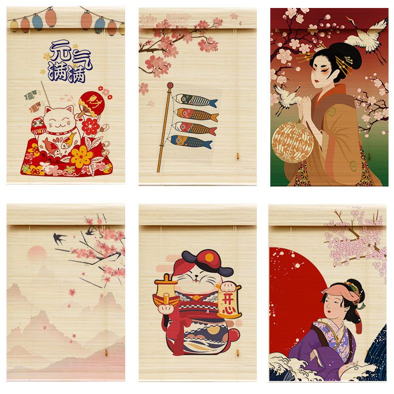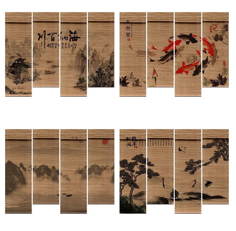 Shuxuan Printed Bamboo Curtain Roller Curtain Roll-pull New Chinese Style Tea Room Zen Door Curtain Sun Shade Partition Decorative Curtain Nine Fish 1m*1m