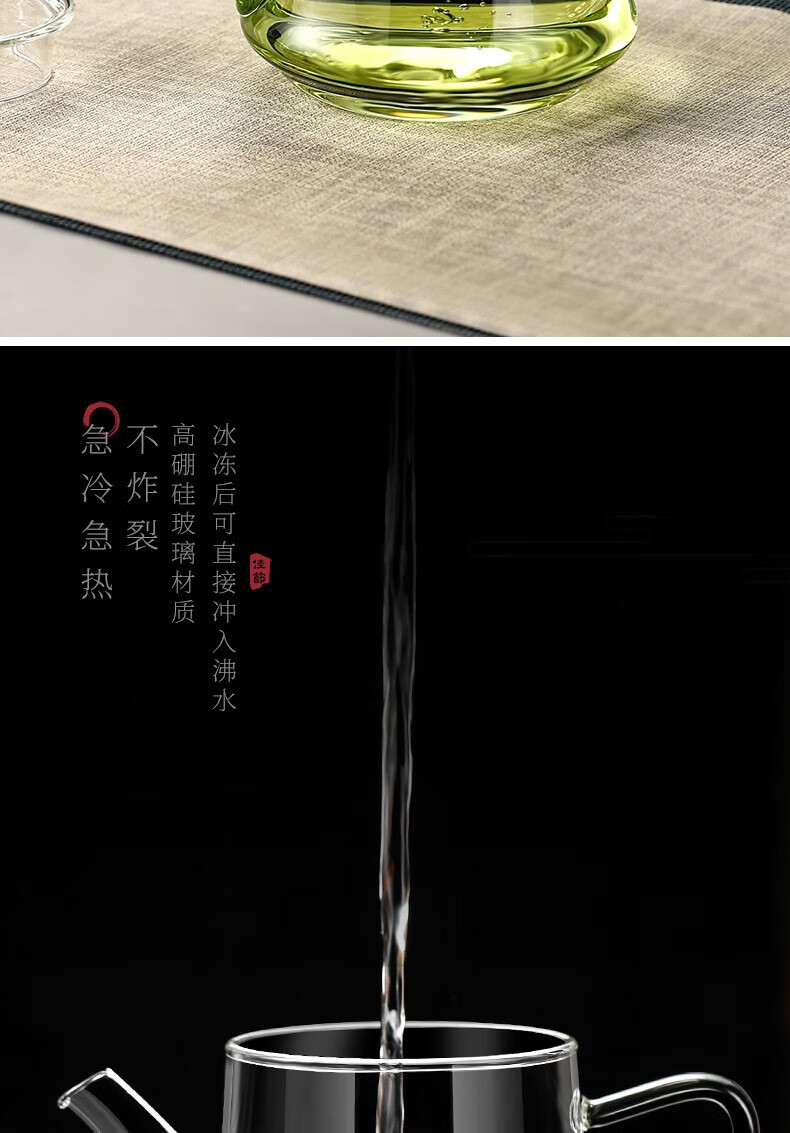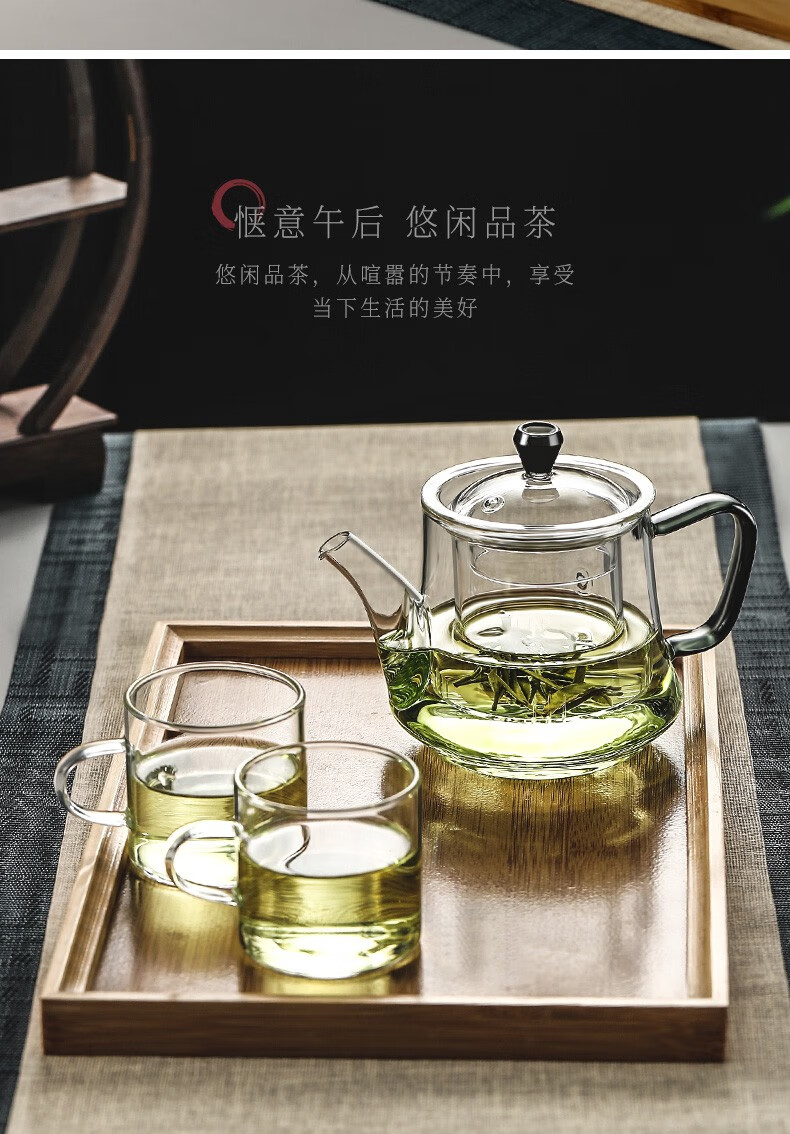 Heisou high borosilicate heat-resistant glass teapot household filter green handle teapot tea set thickened floral teapot 490ml Qingxin teapot 490ml + 2 cups