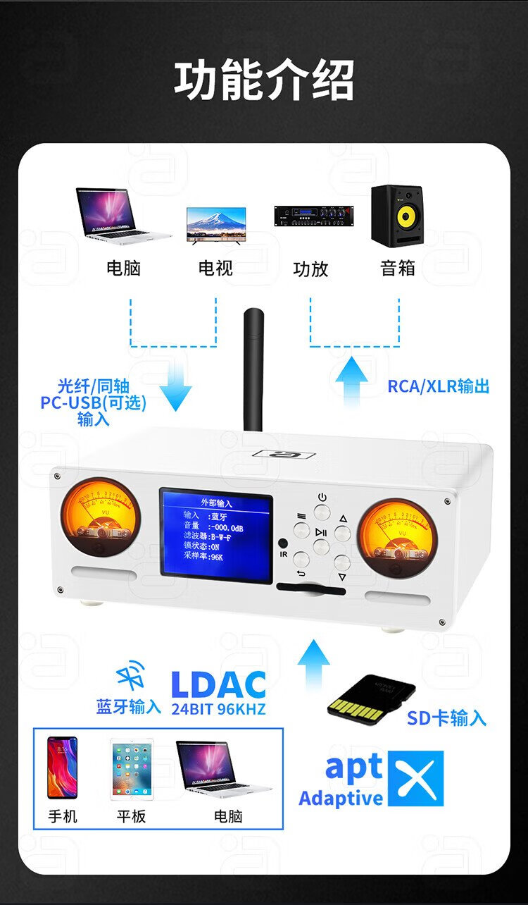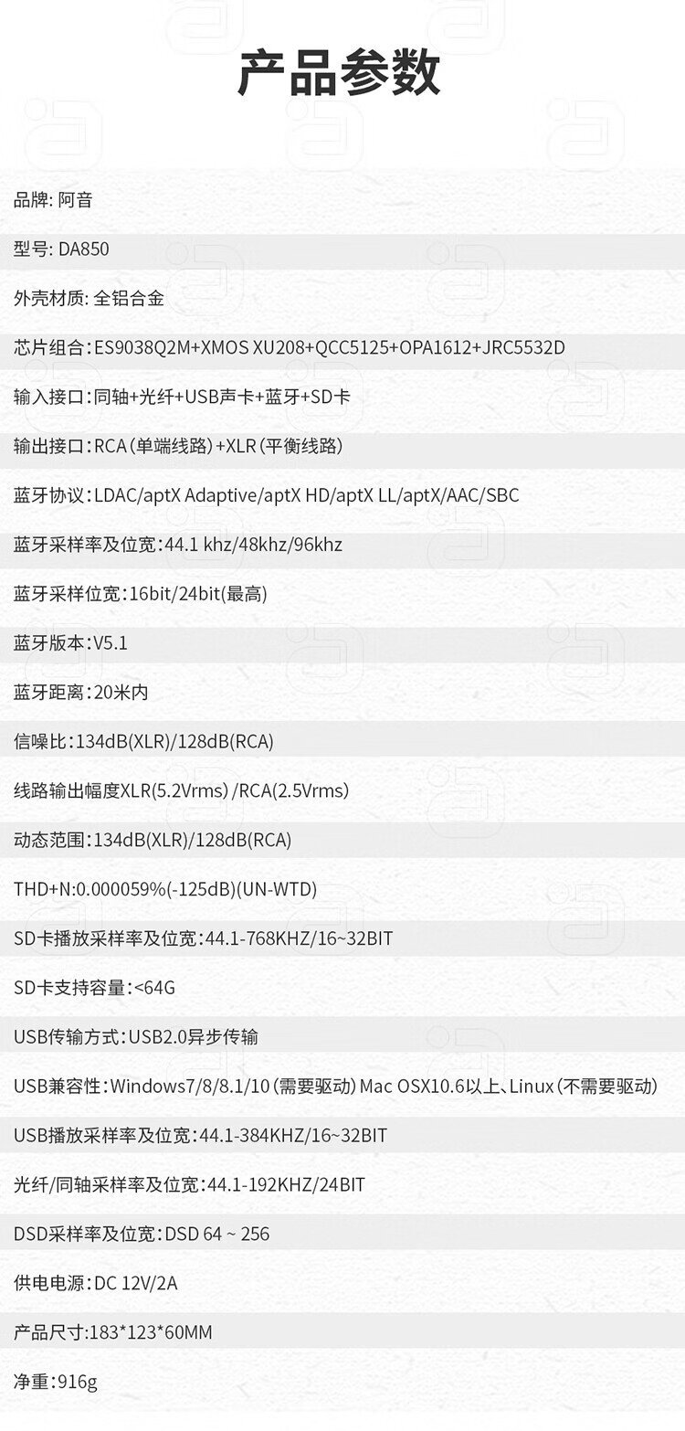 Ayin digital decoding player hifi fever-grade LDAC lossless Bluetooth receiver dac desktop computer external sound card DSD audio amplifier white DA850U (professional sound card version + XMOS chip)