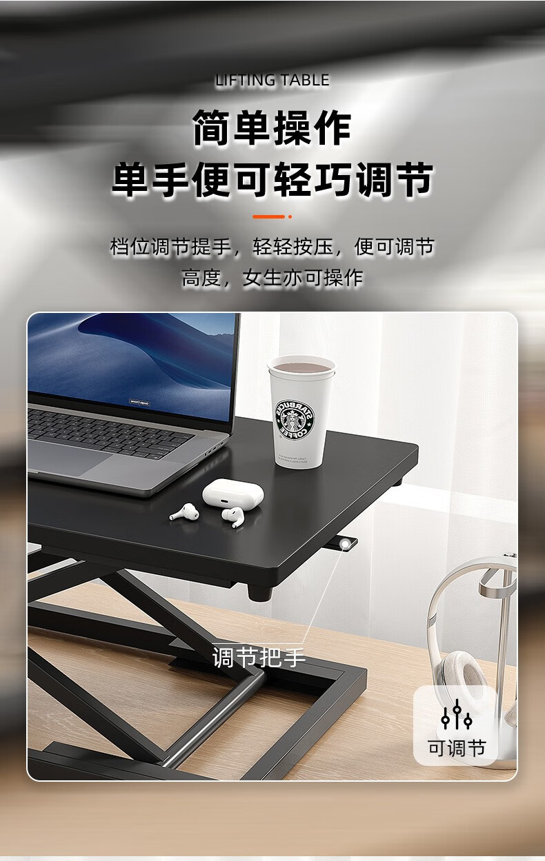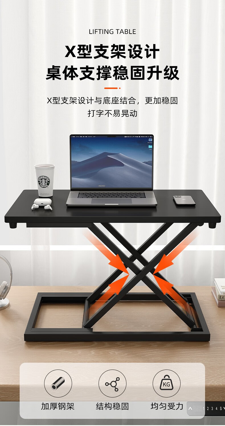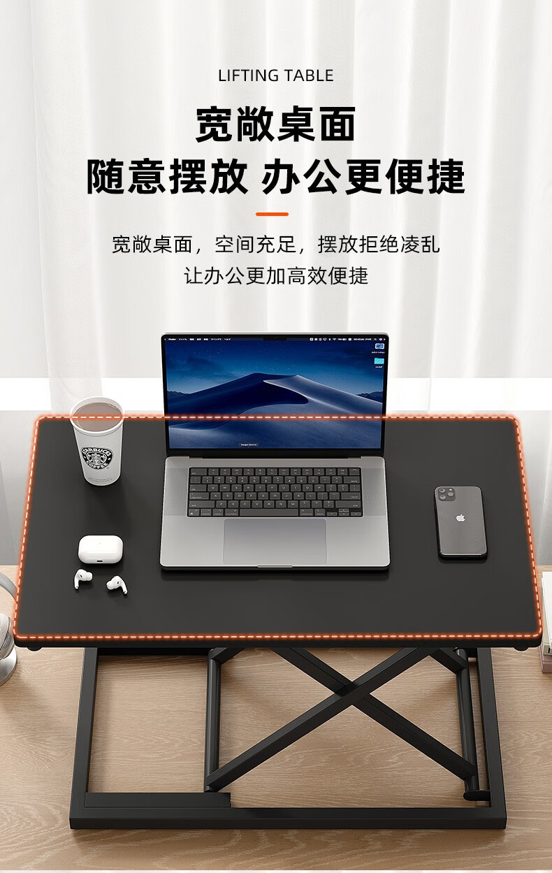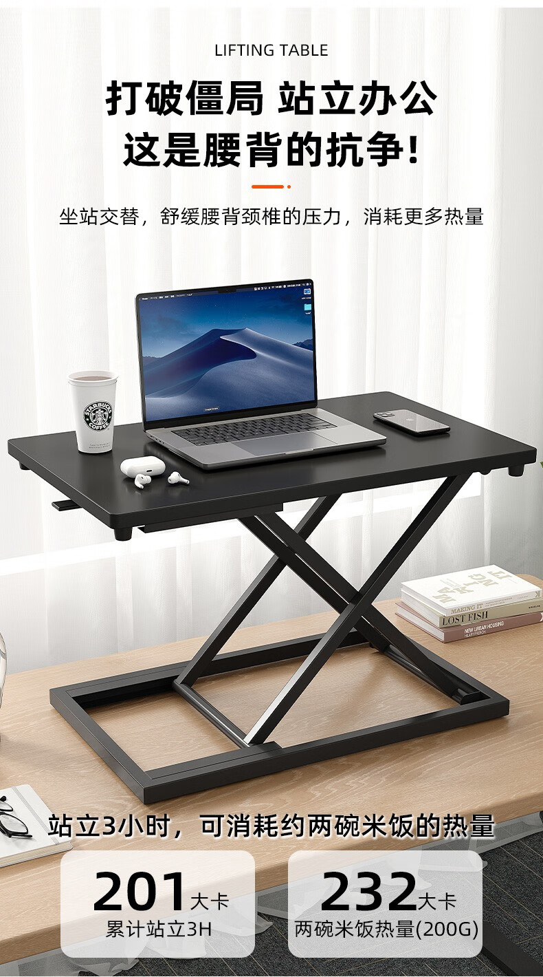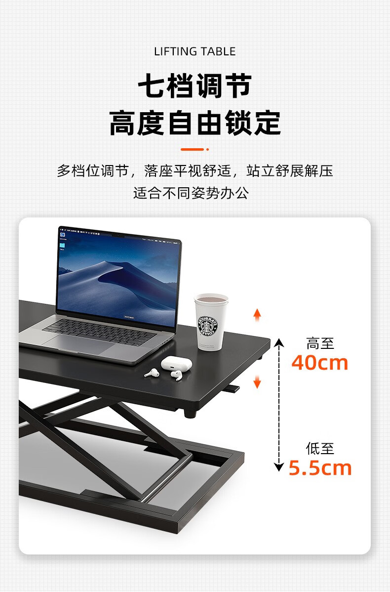 Zhen Yanxuan Lift Computer Desk Lift Table Vertical Office Desk Work Table Monitor Lift Bracket Desktop Work Table Seven-speed Manual Adjustment Obsidian Black 60CM