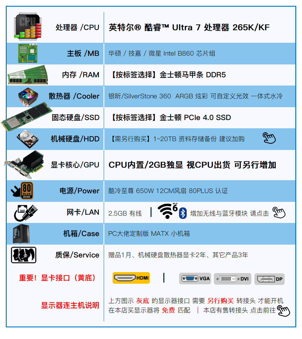PC boss Intel Core Ultra 7 265K 20-core DDR5 memory high-frequency program scientific computing deep learning desktop computer host DIY assembly machine 48GB DDR5 memory + 1TB SSD high-frequency high-speed program computing deep learning