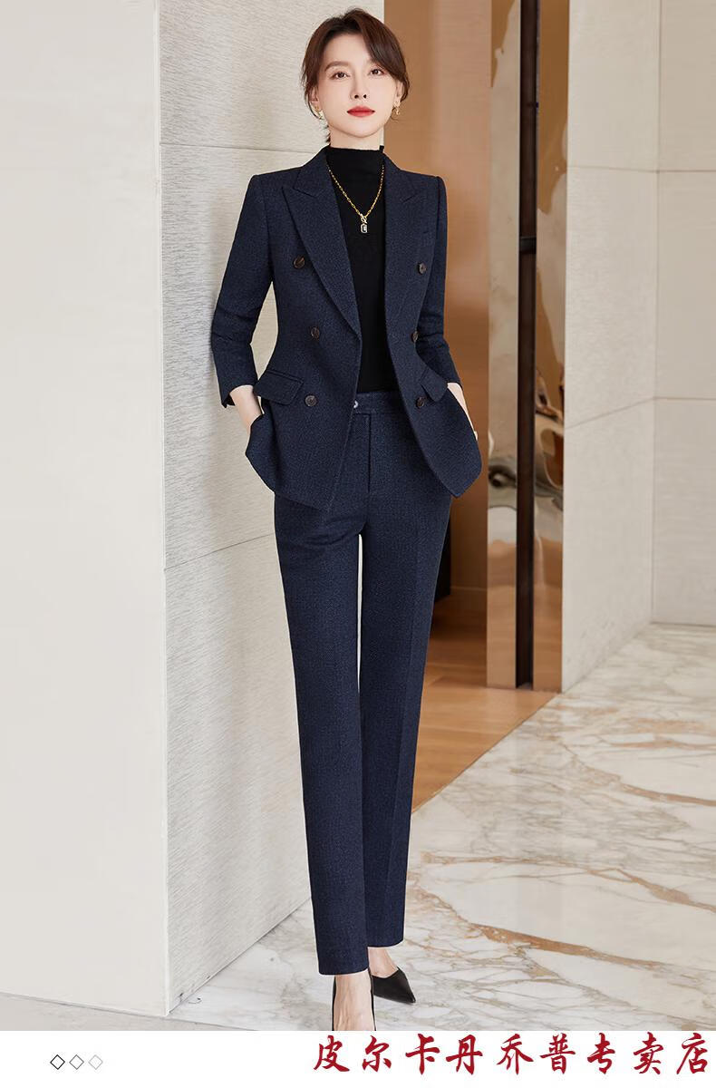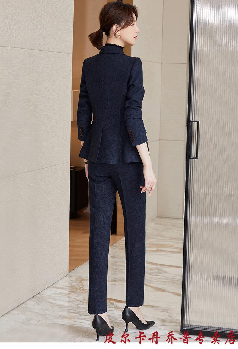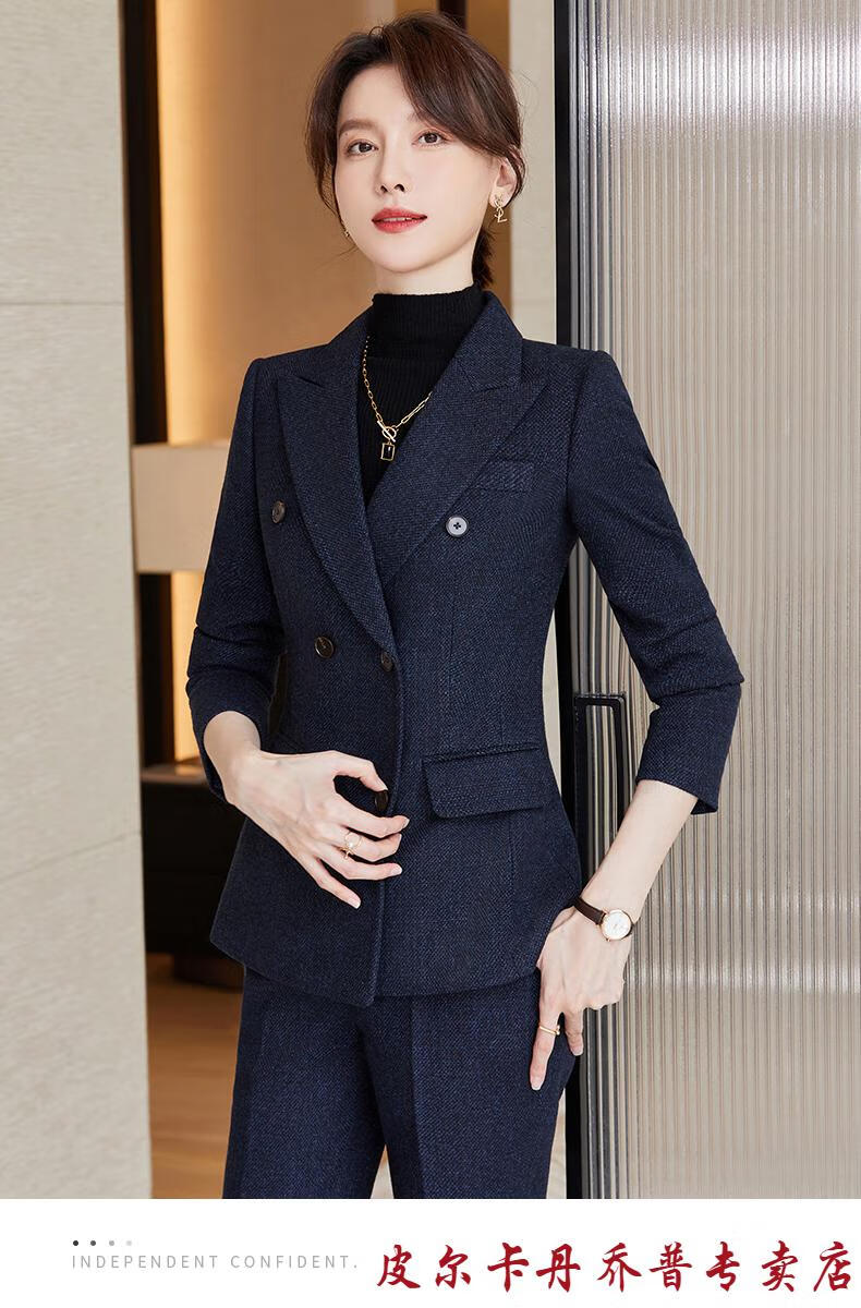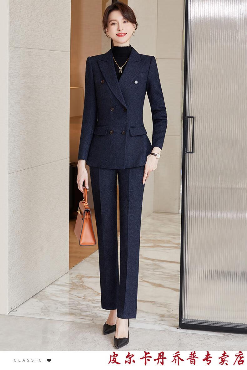 Pierre Cardin premium blazer women's autumn and winter style commuting professional suit slim woolen suit workplace business formal wear navy blue suit + pants M