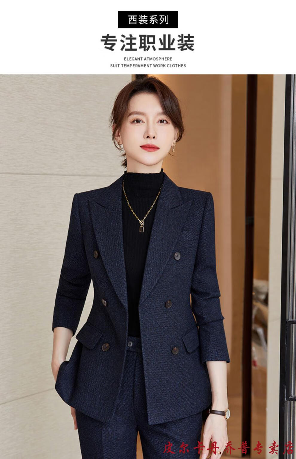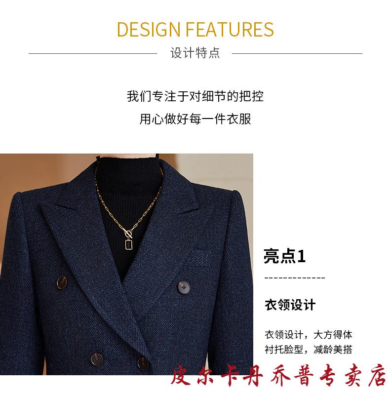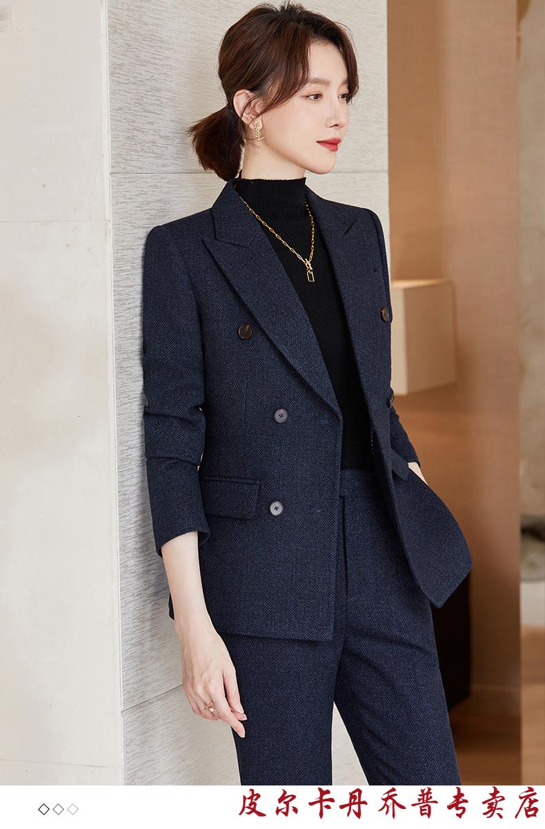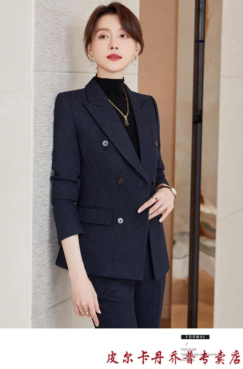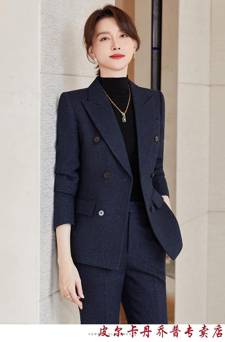 Pierre Cardin premium blazer women's autumn and winter style commuting professional suit slim woolen suit workplace business formal wear navy blue suit + pants M