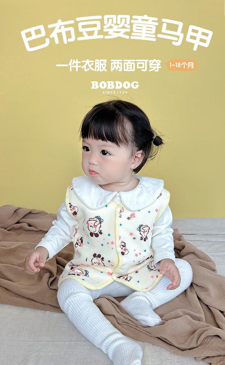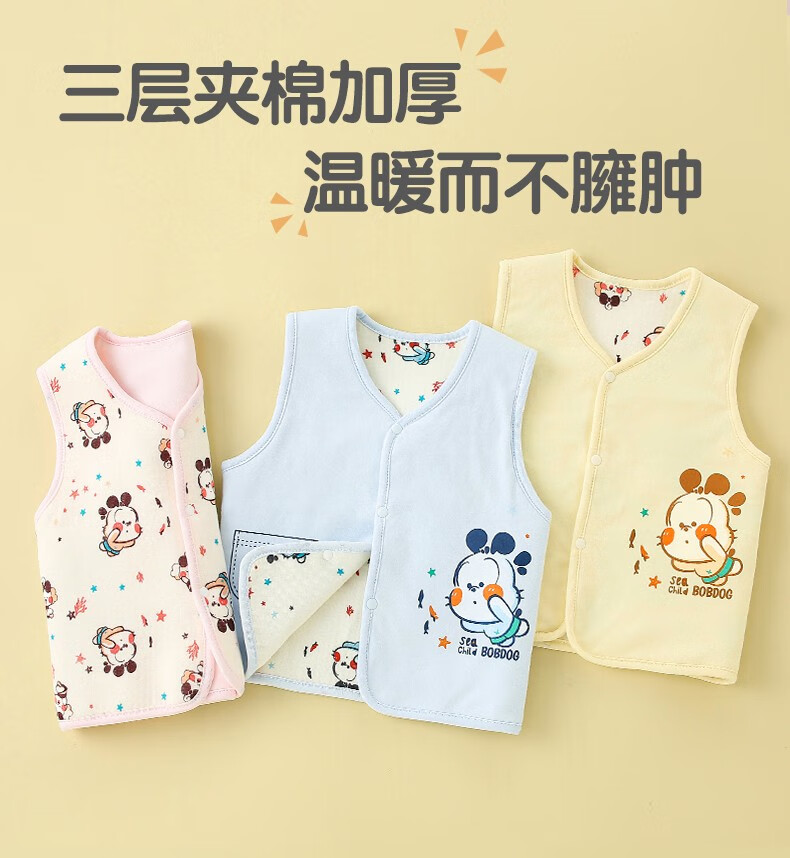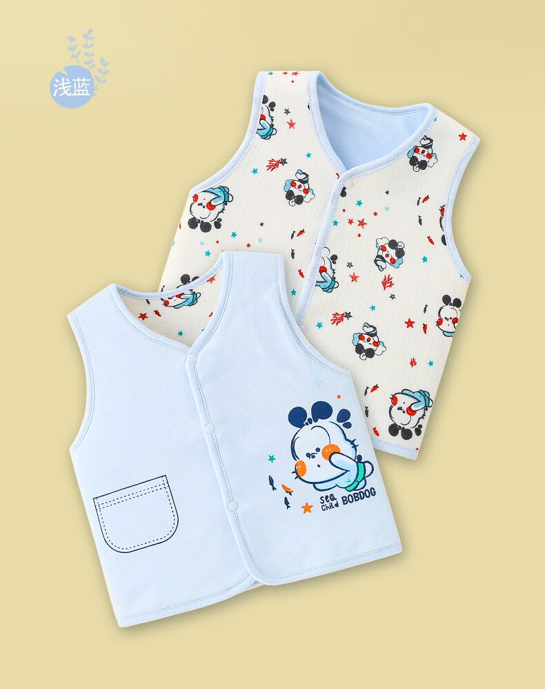 Babudou Infant Vest Spring and Autumn Vest Baby Reversible Newborn Children's Vest Men's and Women's Jacket Pure Cotton Waistcoat Blue 90 (18-24 months)