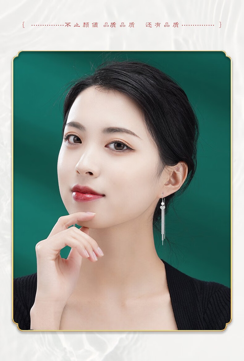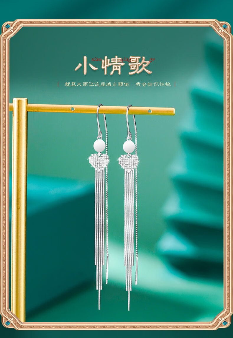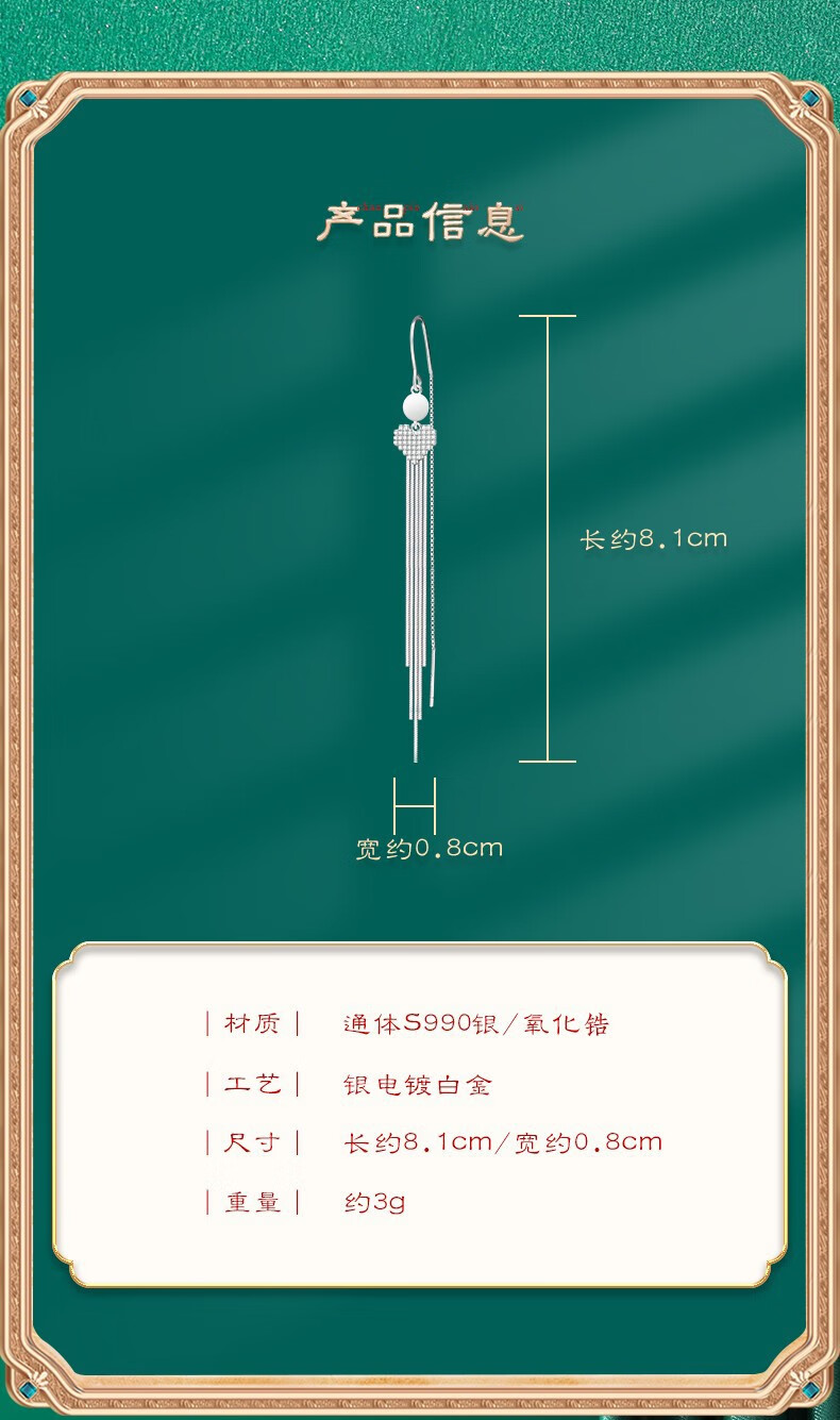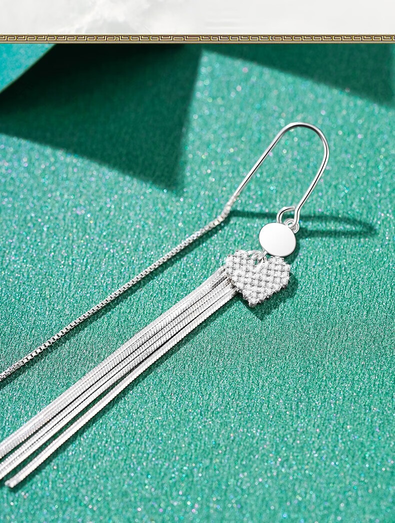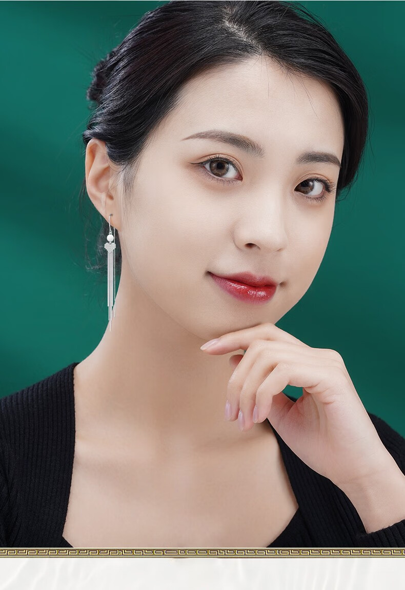 Zhixun 990 sterling silver earrings for women, long tassel earrings, high-end, sweet and elegant ear wire birthday gift, 99 pure silver, one pair